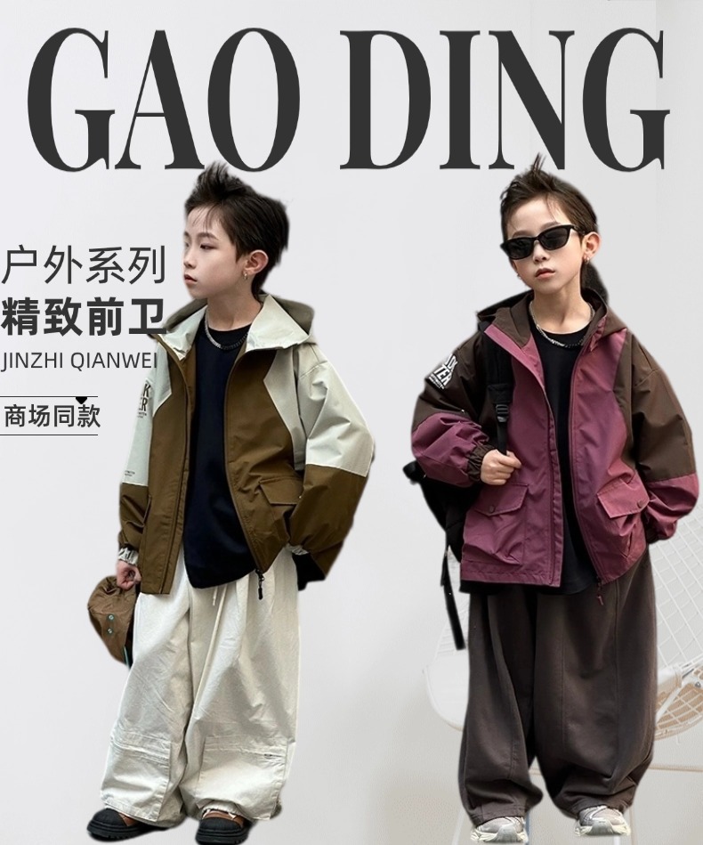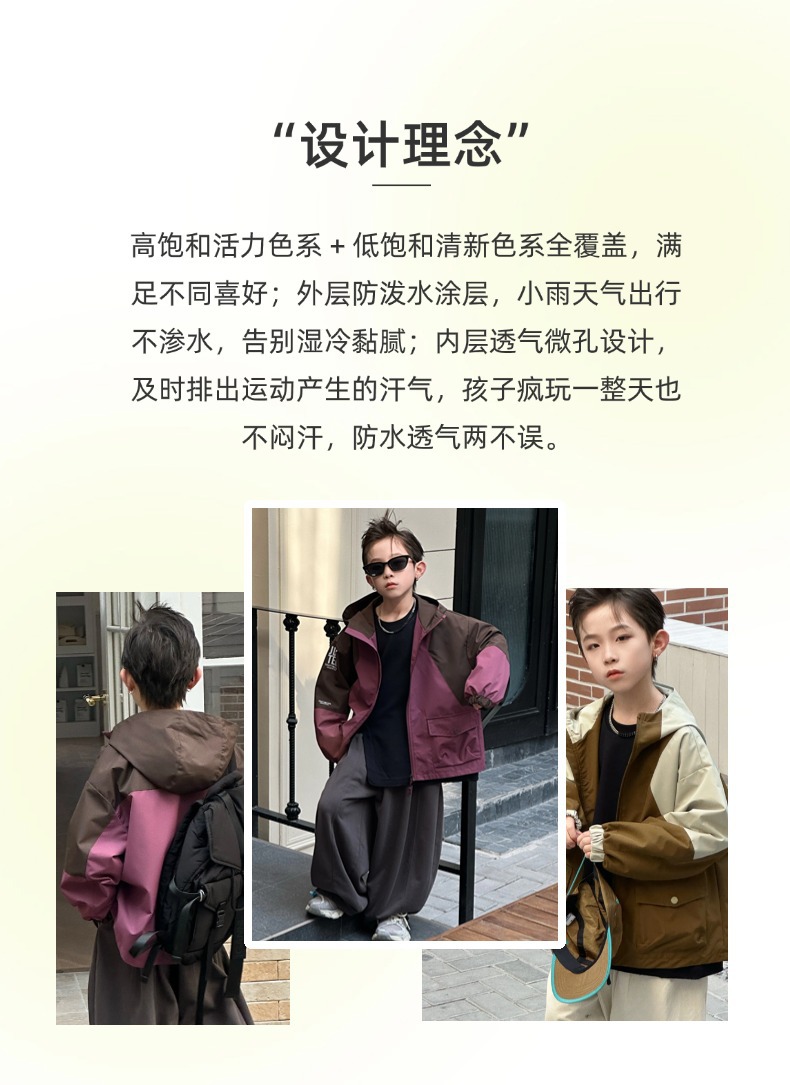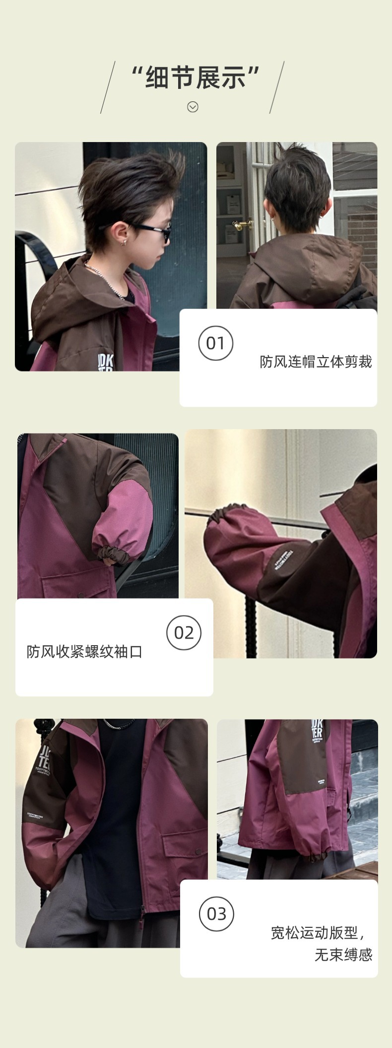 소년 봄 재킷 2025 아동 의류 봄 새로운 후드 윈드 브레이커 중형 및 대형 어린이 방수 야외 컬러 블록 재킷