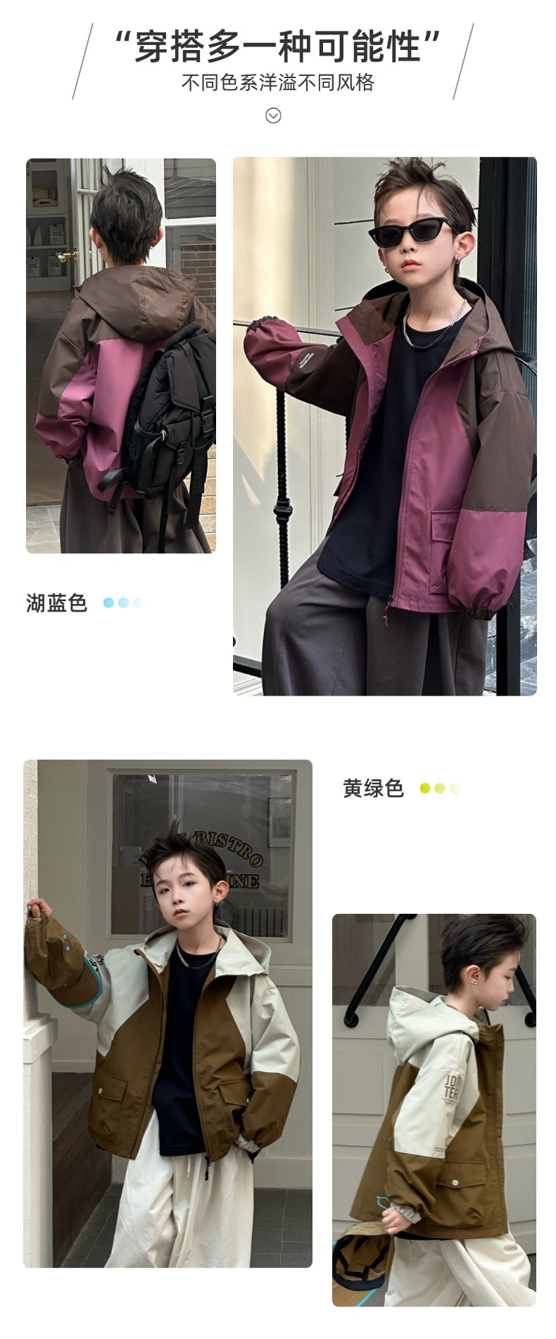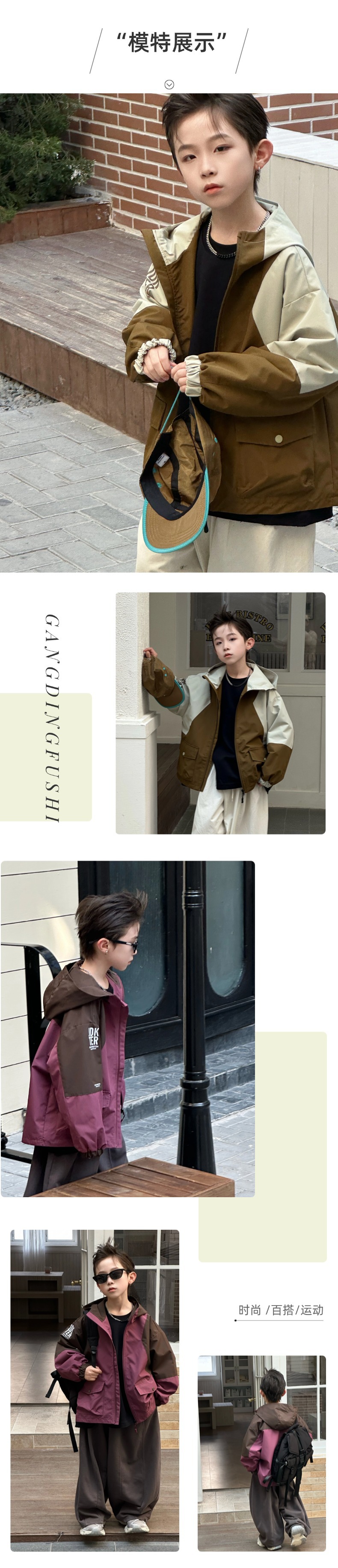 소년 봄 재킷 2025 아동 의류 봄 새로운 후드 윈드 브레이커 중형 및 대형 어린이 방수 야외 컬러 블록 재킷스토어 가기
