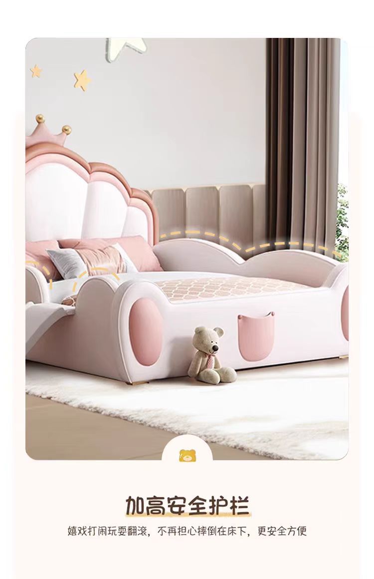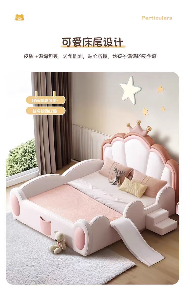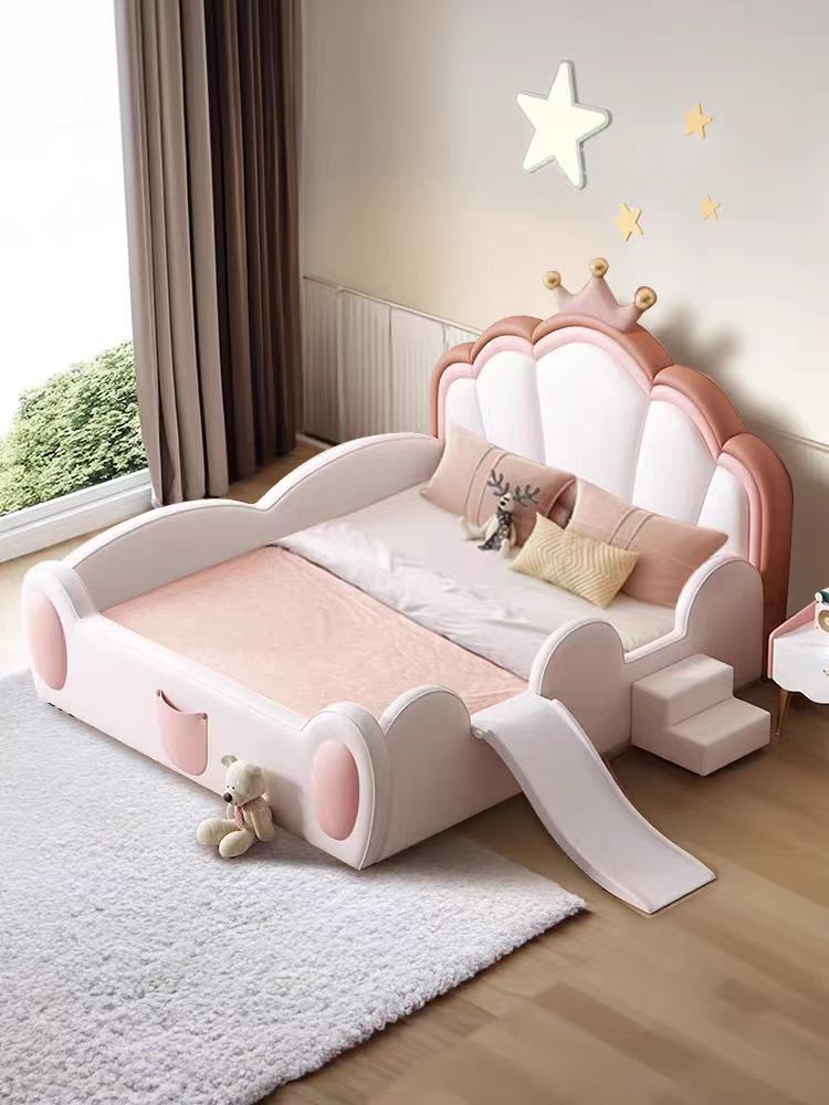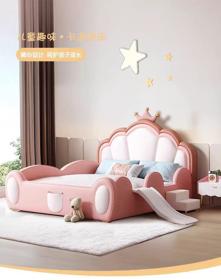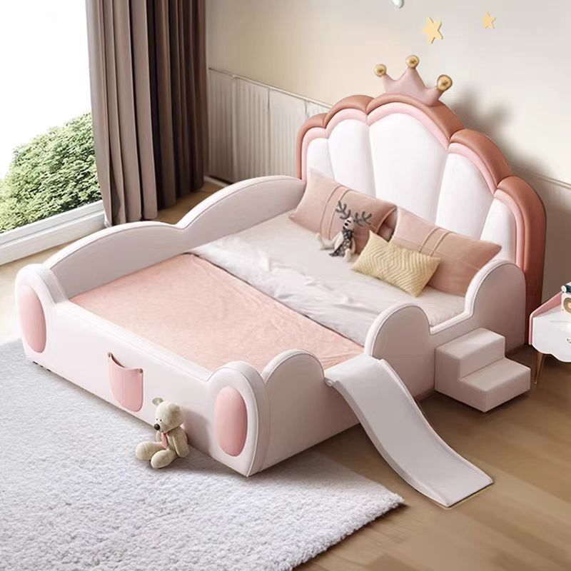 어린이 침대 소녀 공주 침대 울타리 크라운 핑크 환경 친화적 인 가죽 침대를 갖춘 간단한 소녀 슬라이드 침대