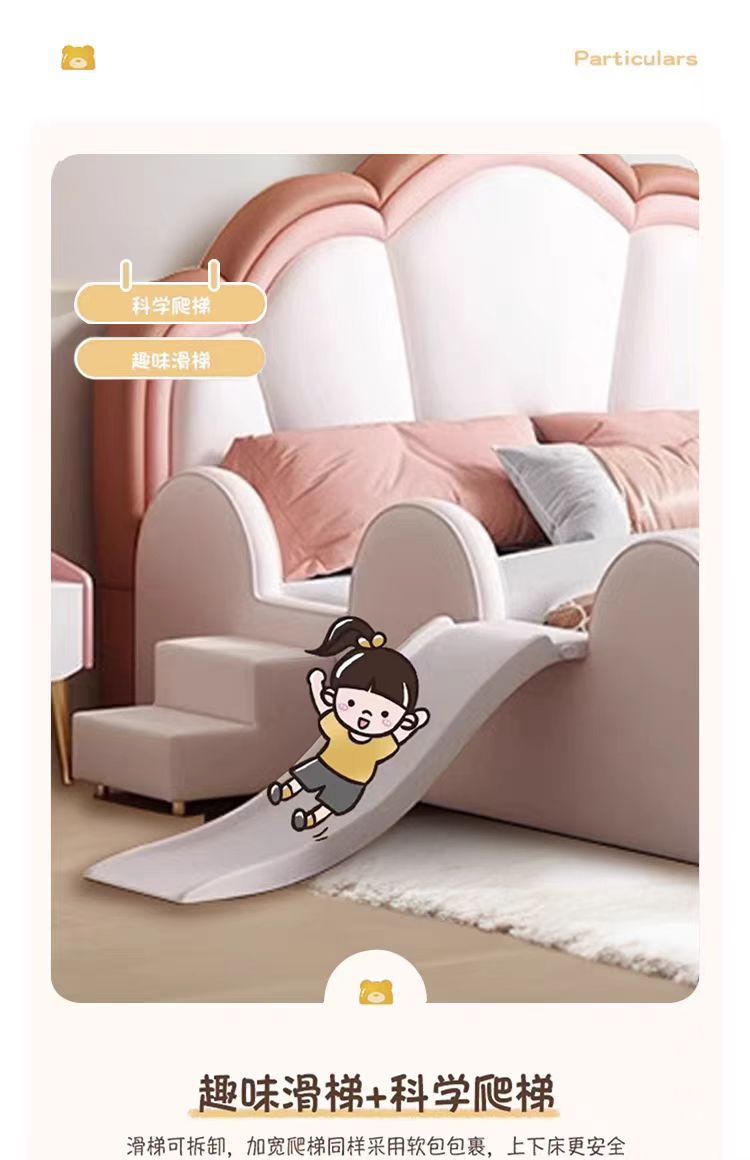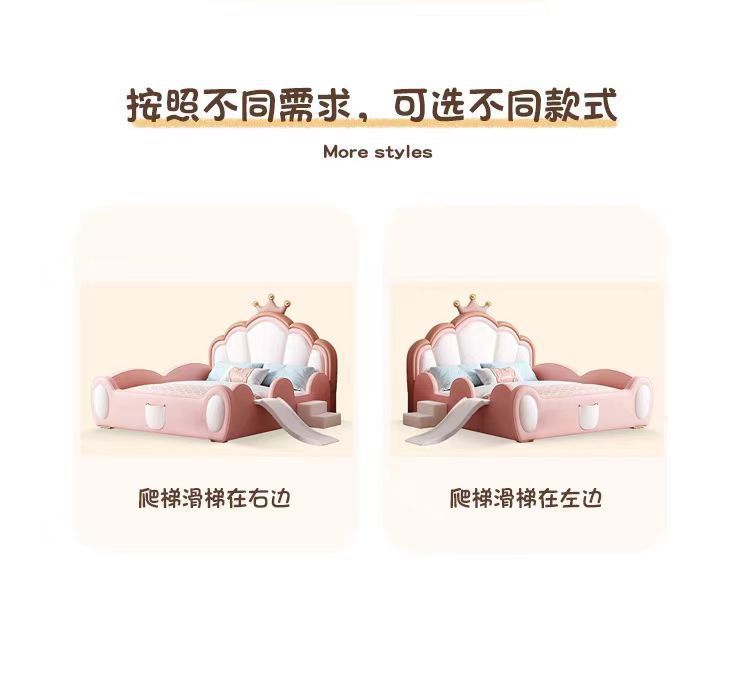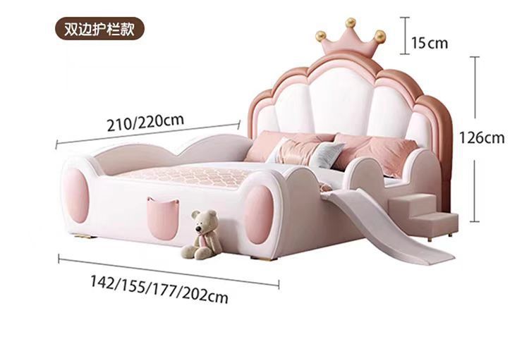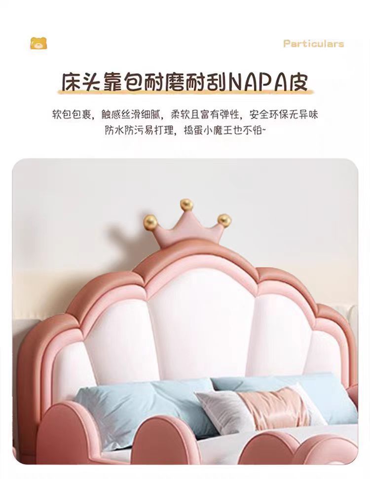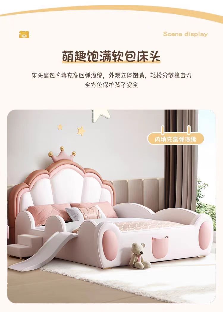 어린이 침대 소녀 공주 침대 울타리 크라운 핑크 환경 친화적 인 가죽 침대를 갖춘 간단한 소녀 슬라이드 침대