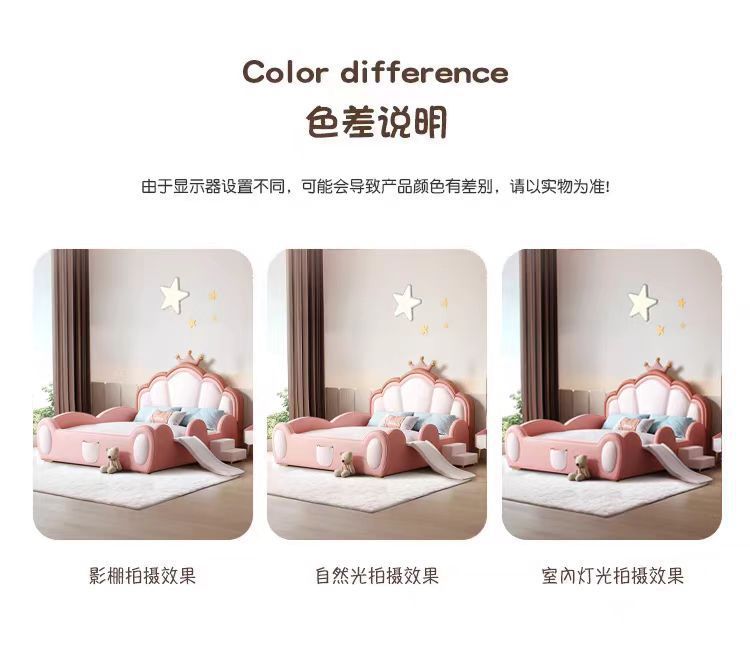 어린이 침대 소녀 공주 침대 울타리 크라운 핑크 환경 친화적 인 가죽 침대를 갖춘 간단한 소녀 슬라이드 침대스토어 가기