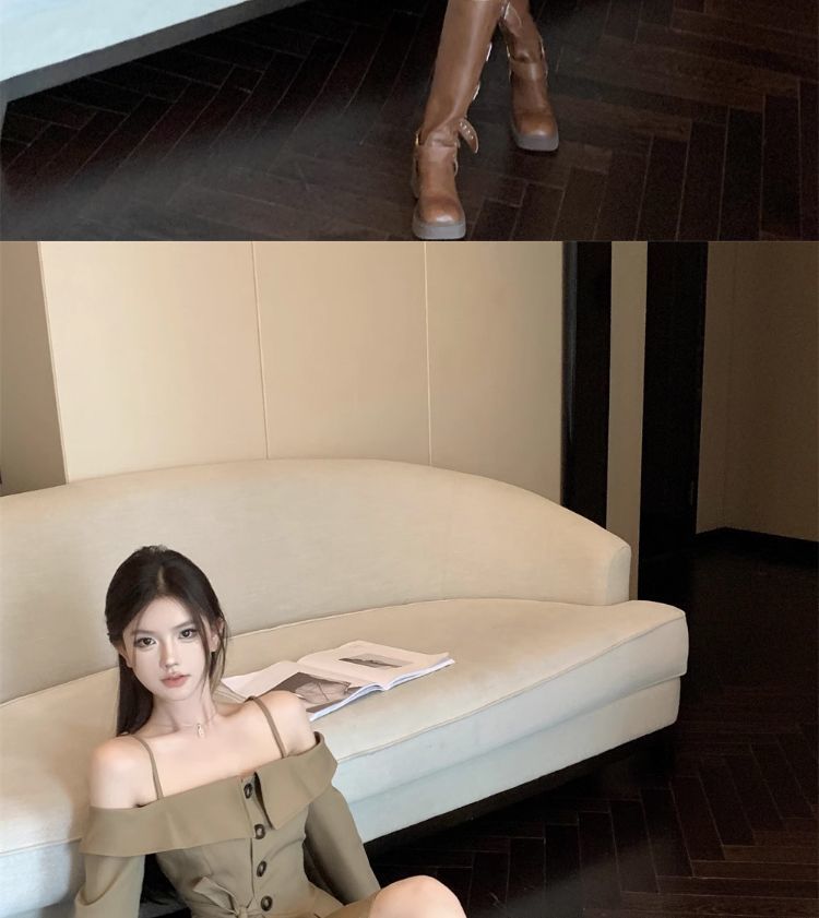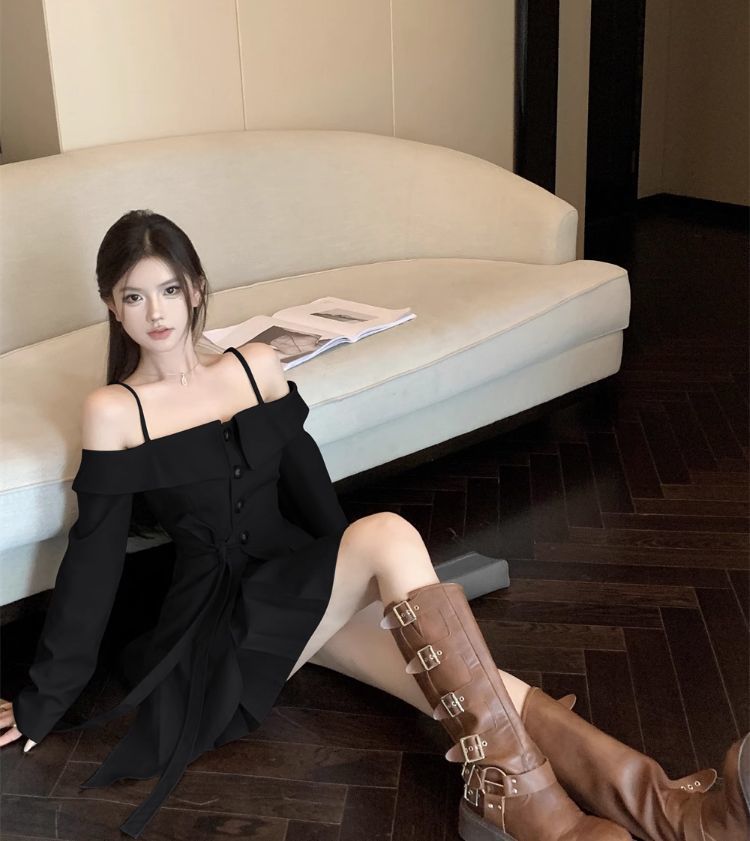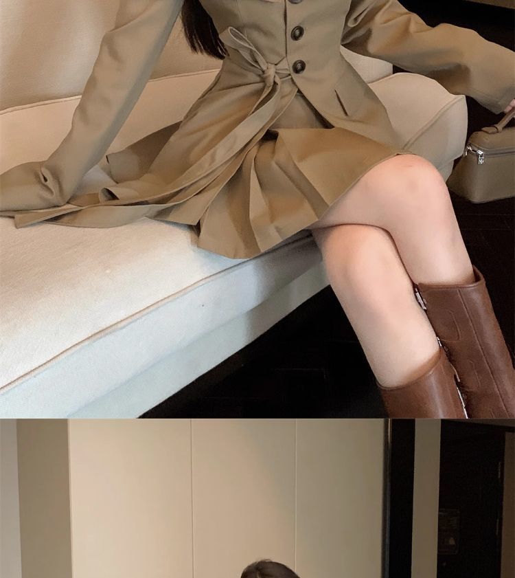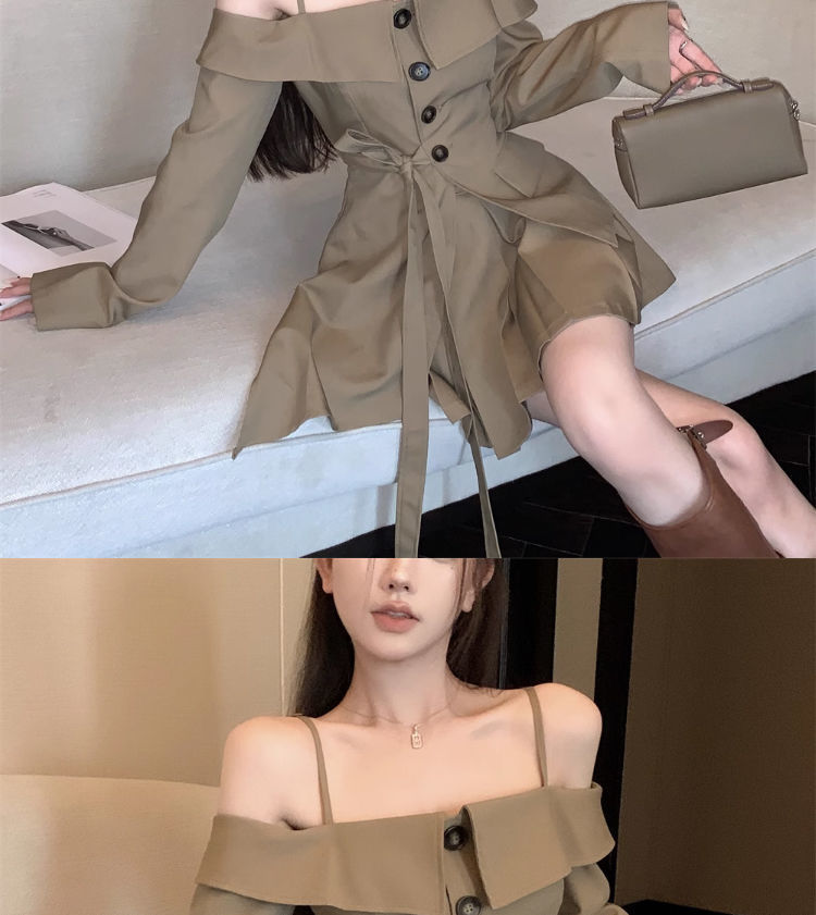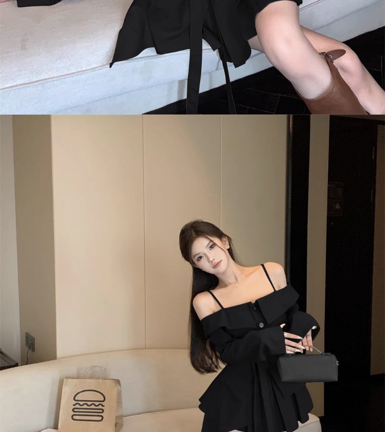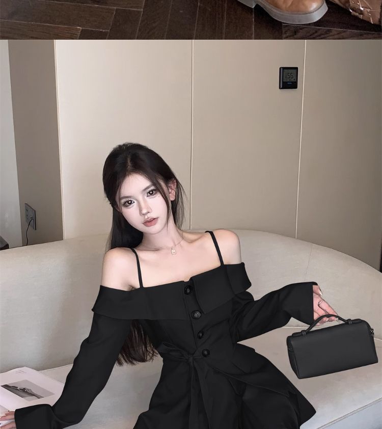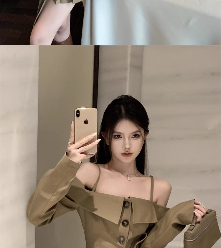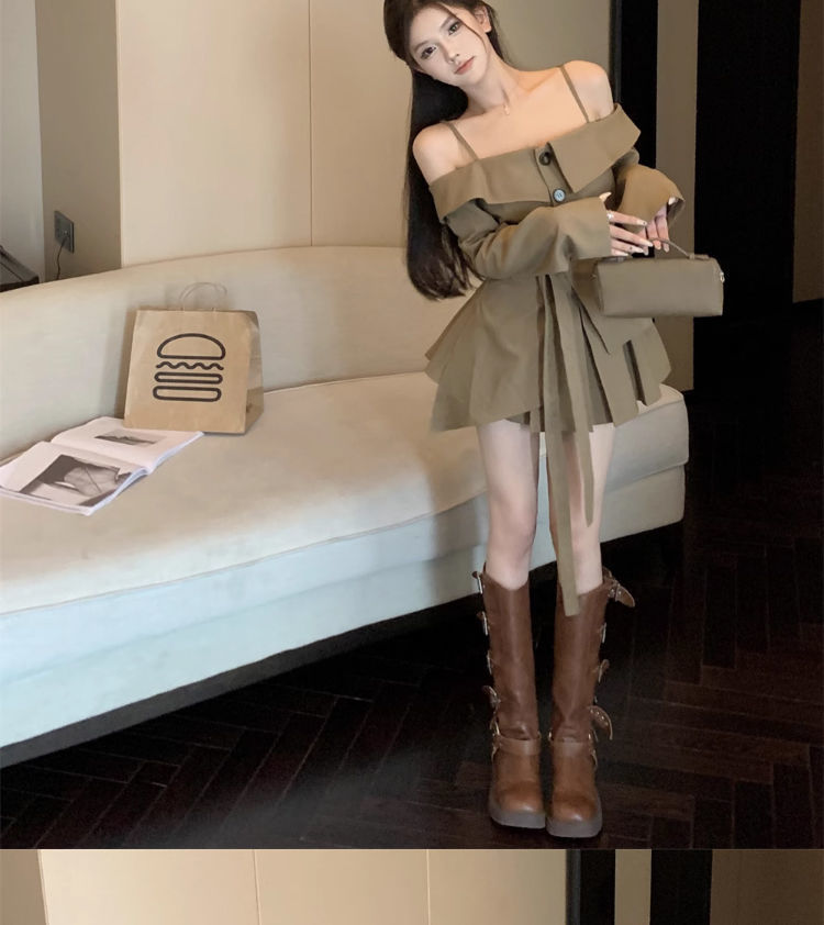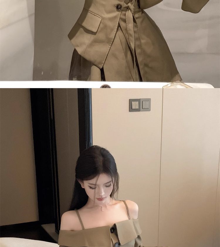 우아한 오프 숄더 불규칙한 긴팔 세트 재킷 여성의 봄과 가을 2025 새로운 주름 치마 투피스 세트스토어 가기
