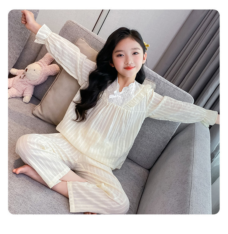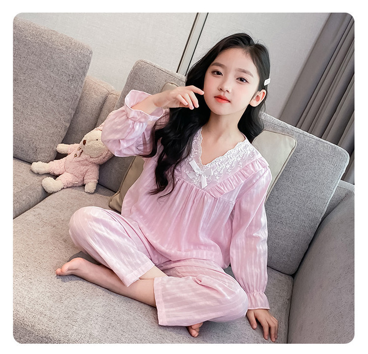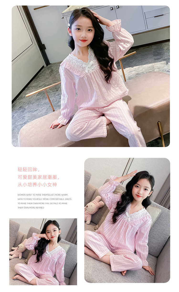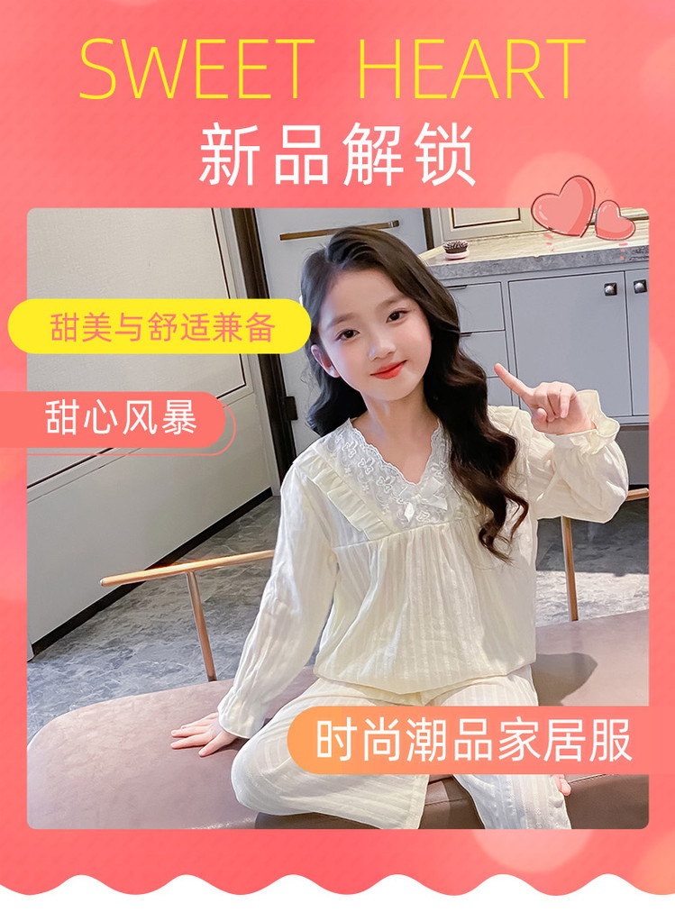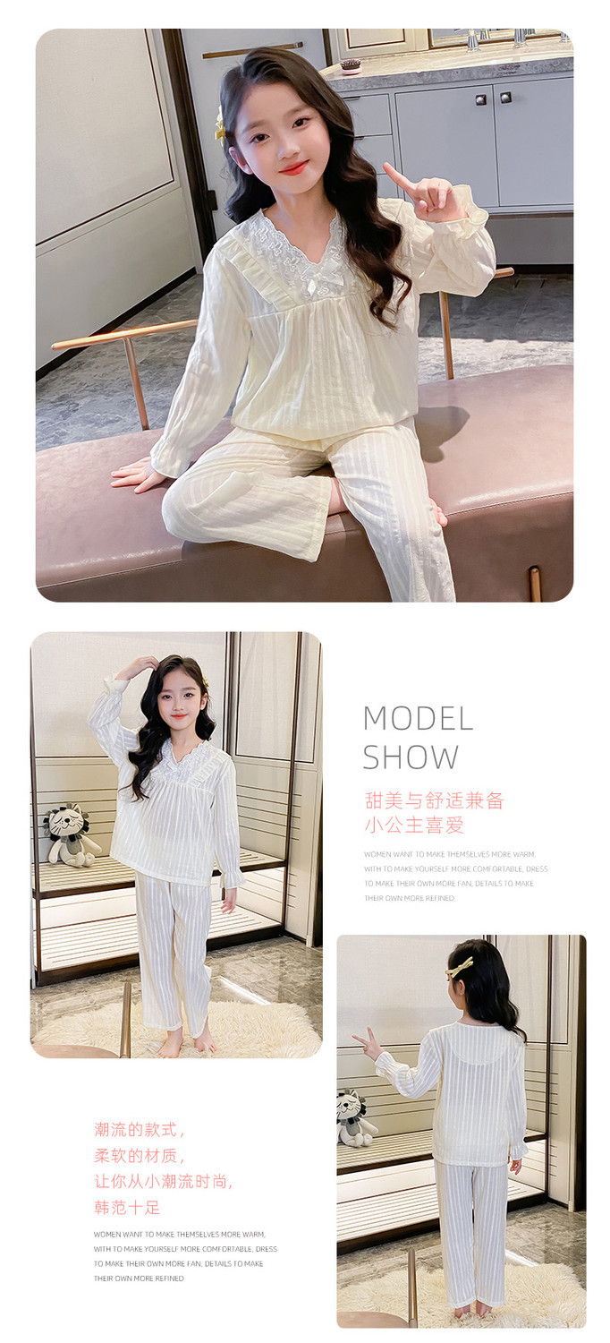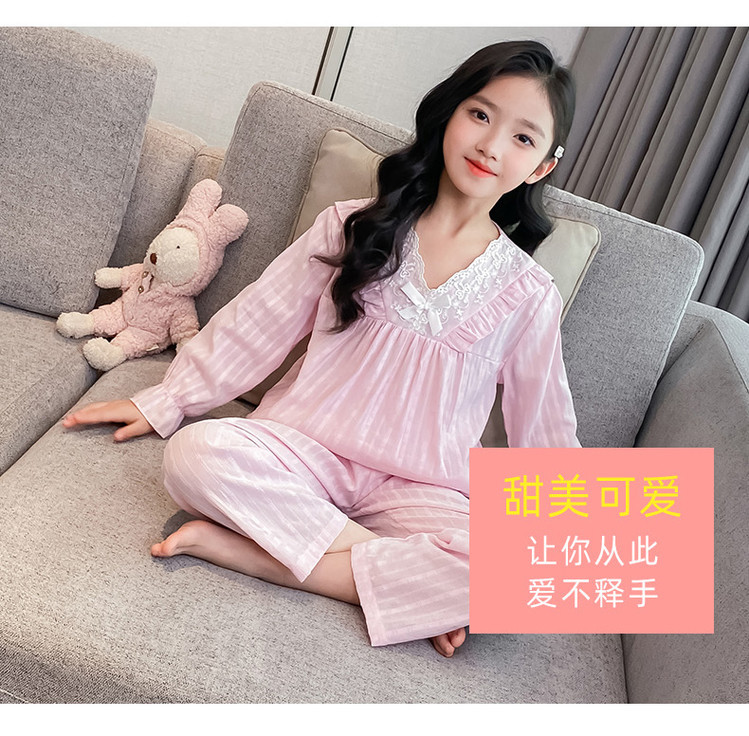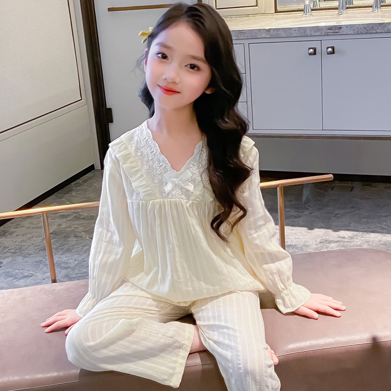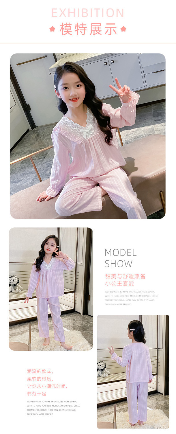 2025 새로운 소녀 잠옷 봄과 가을면 공주 스타일 긴 소매 얇은 아이들의 집 옷은 밖에서 입을 수 있습니다