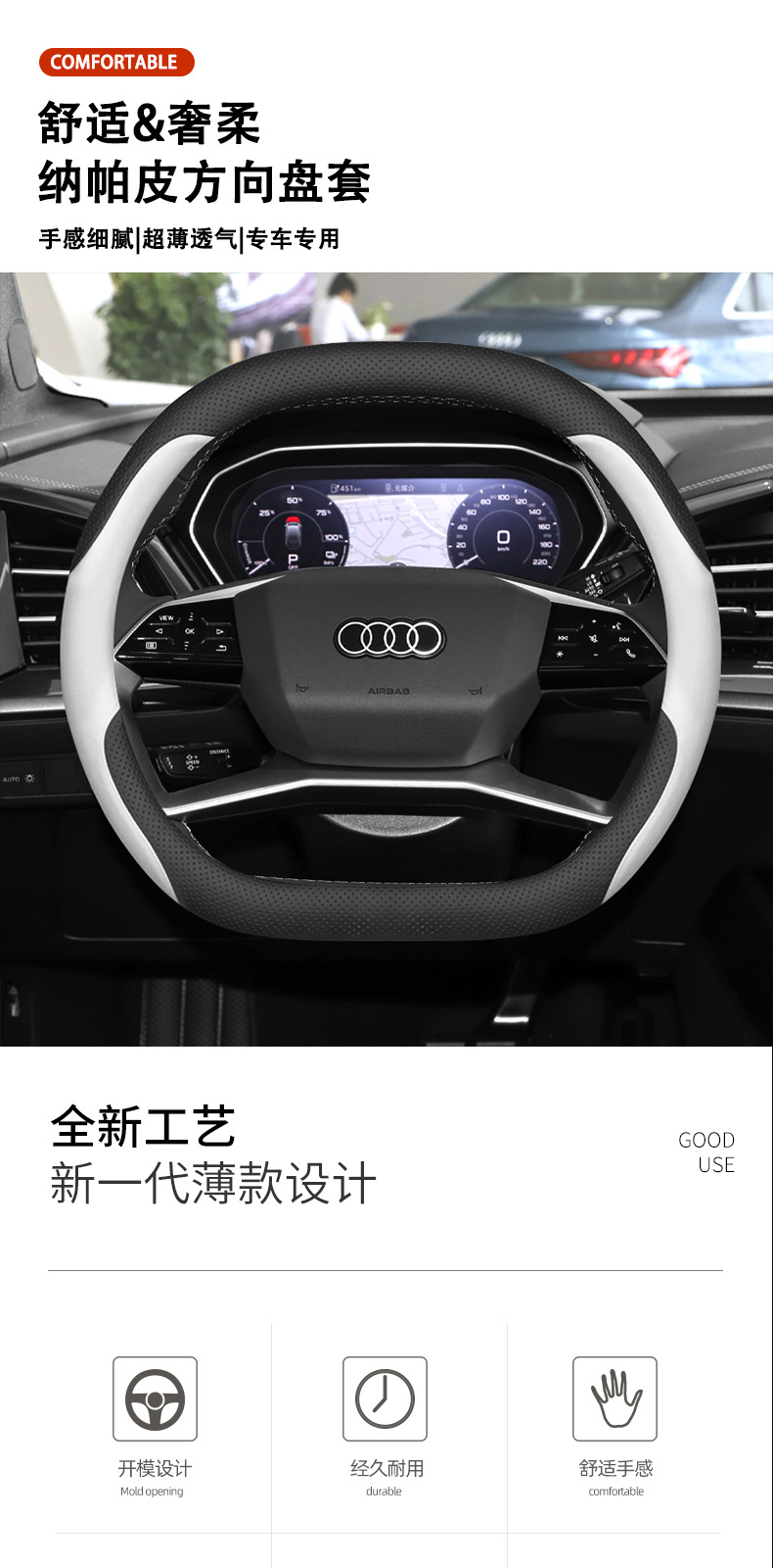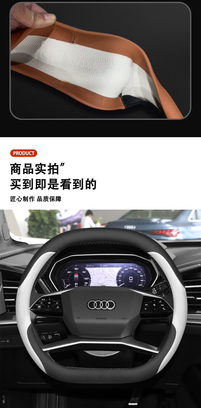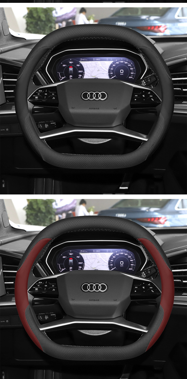 아우디 q4etron 스티어링 휠 커버 2024 Q4 자동차 핸들 커버 23 자동차 인테리어 장식 제품에 적용스토어 가기