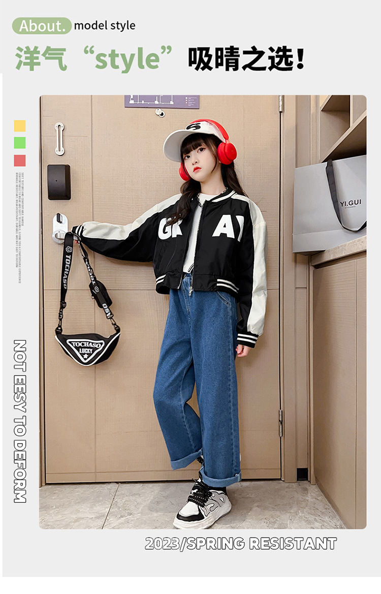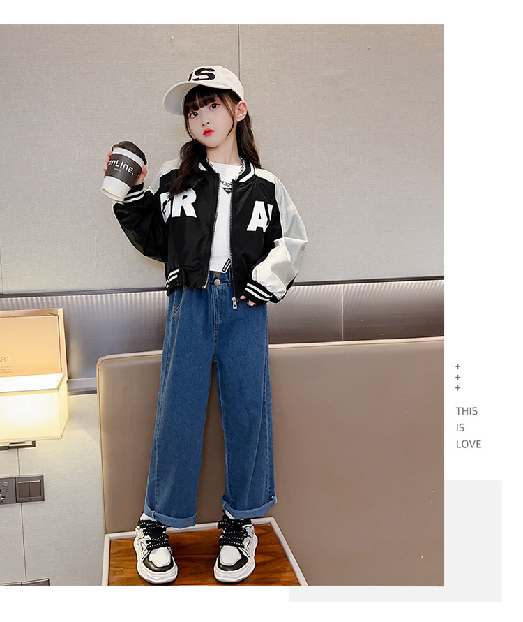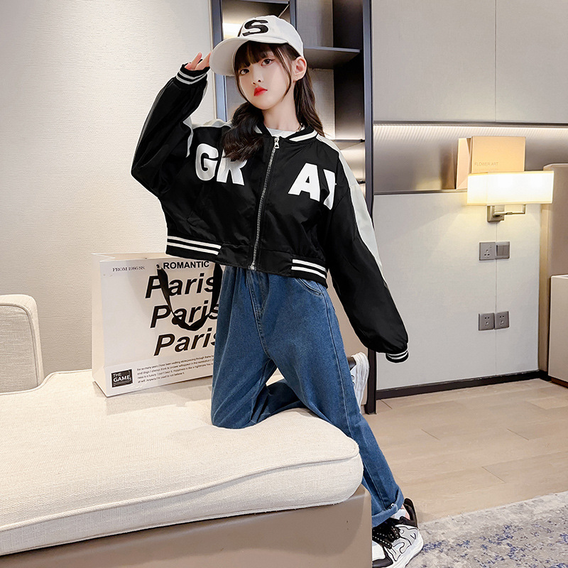 소녀 편지 야구 세트 코트 봄 2025 새로운 서양식 어린이 짧은 한국 스타일 소녀 자켓 탑스토어 가기
