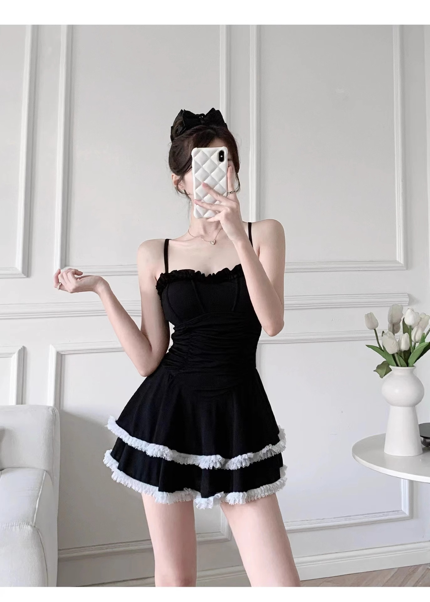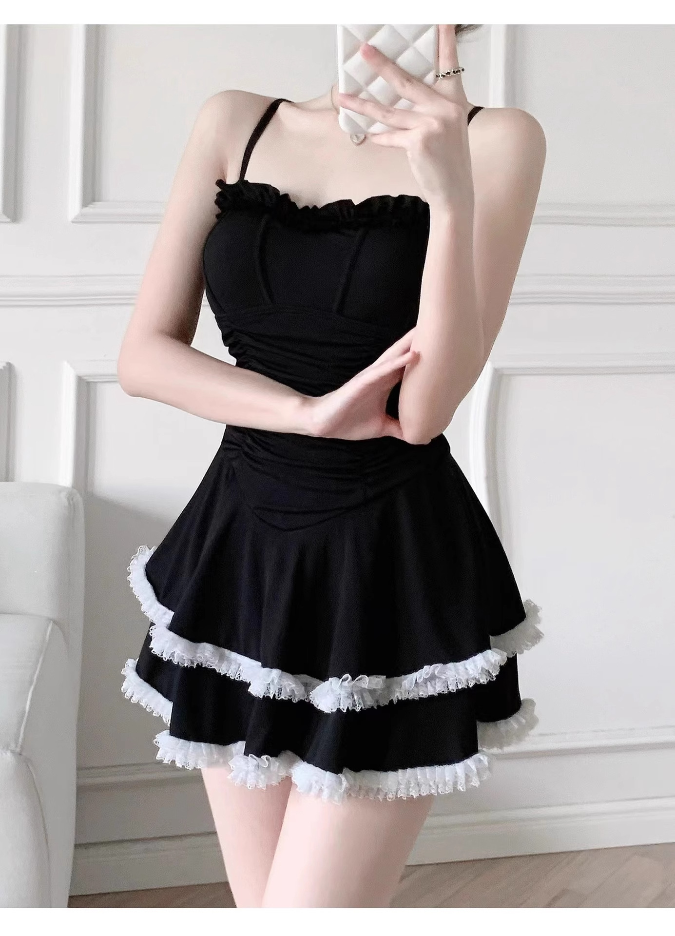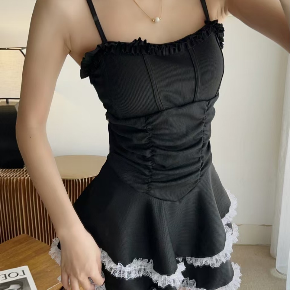 결합 된 수영복 여성 2025 새로운 폭발 보수적 인 고급 순수 욕망 바람 슬리밍 블랙 섹시 슬링스토어 가기