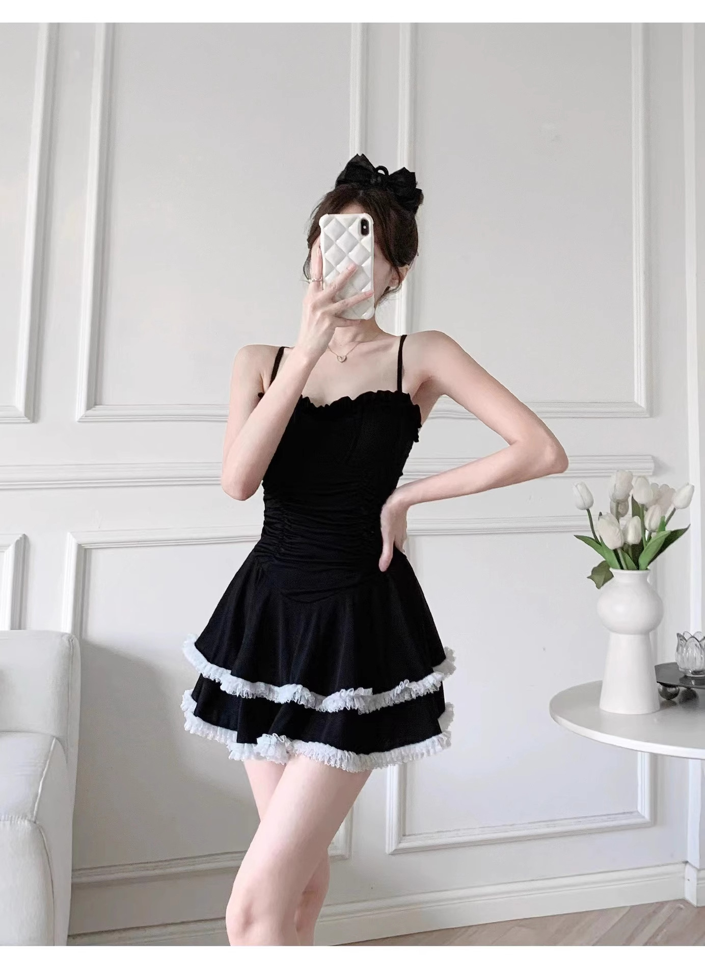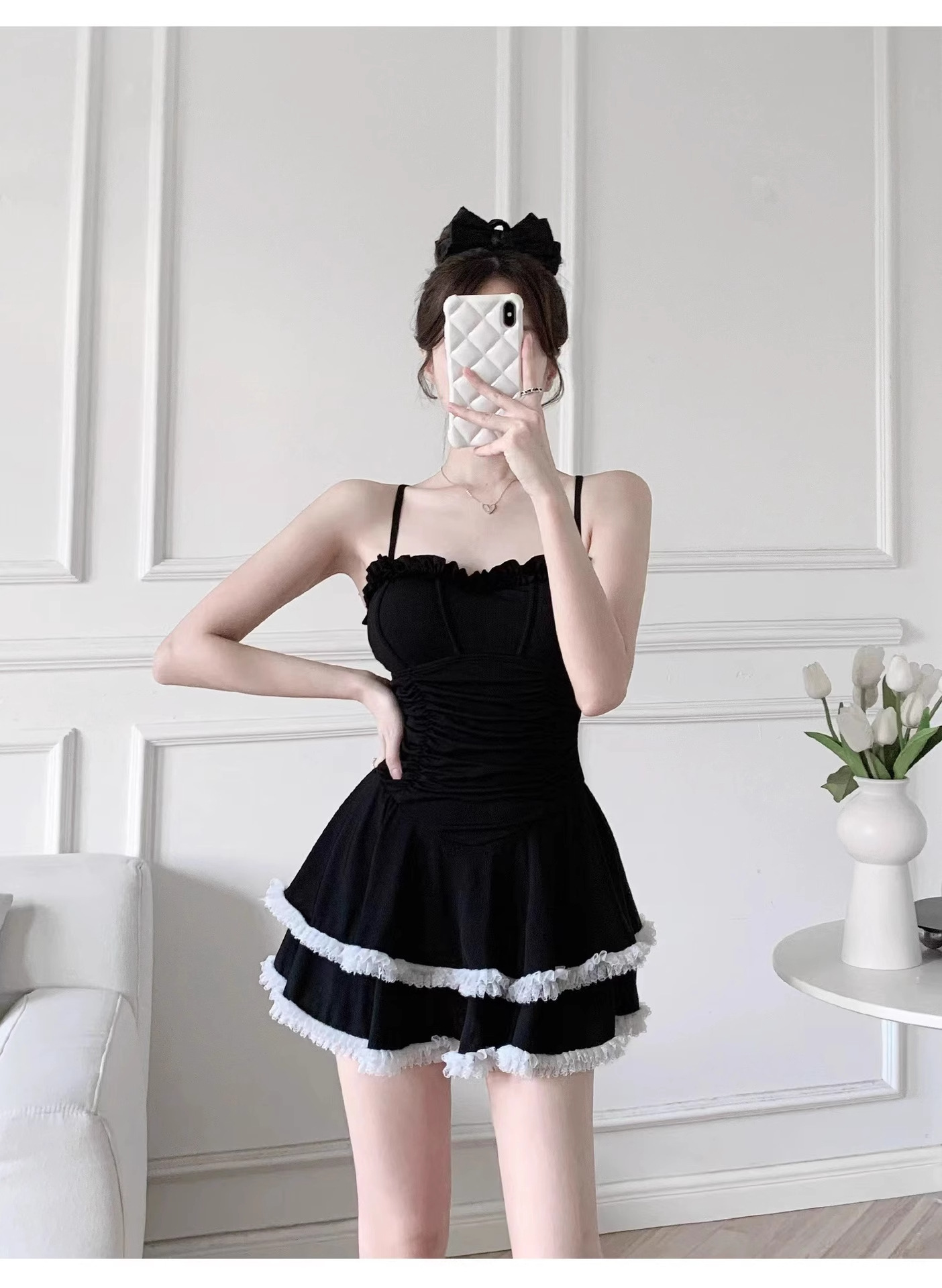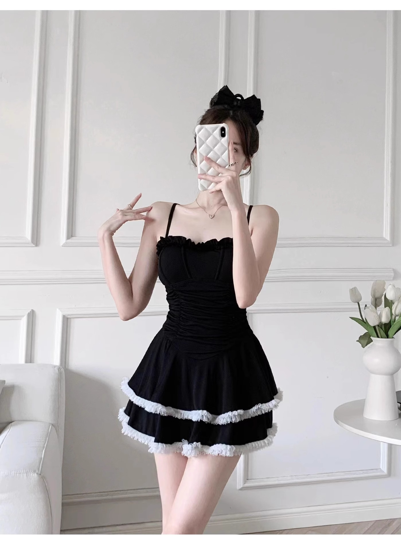결합 된 수영복 여성 2025 새로운 폭발 보수적 인 고급 순수 욕망 바람 슬리밍 블랙 섹시 슬링스토어 가기