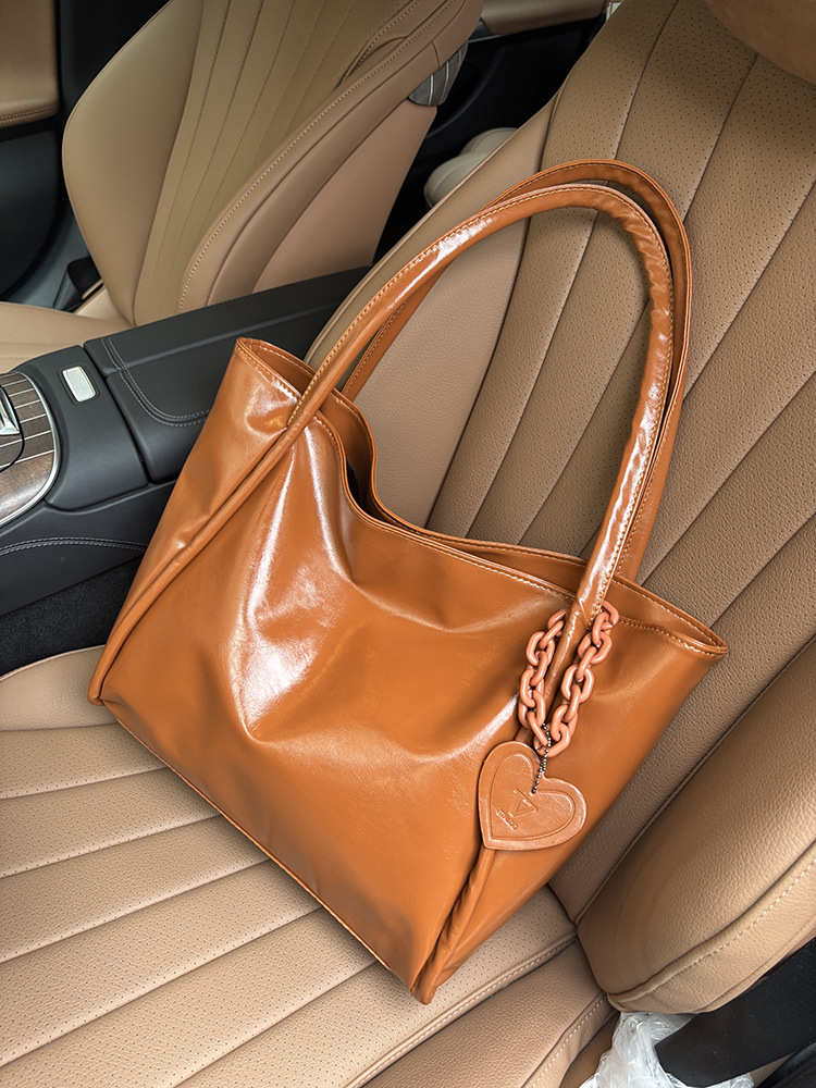 틈새 사랑 디자인 부드러운 가죽 대용량 토트 백 2025 새로운 한국 스타일 유행 다크 핸드 숄더 백