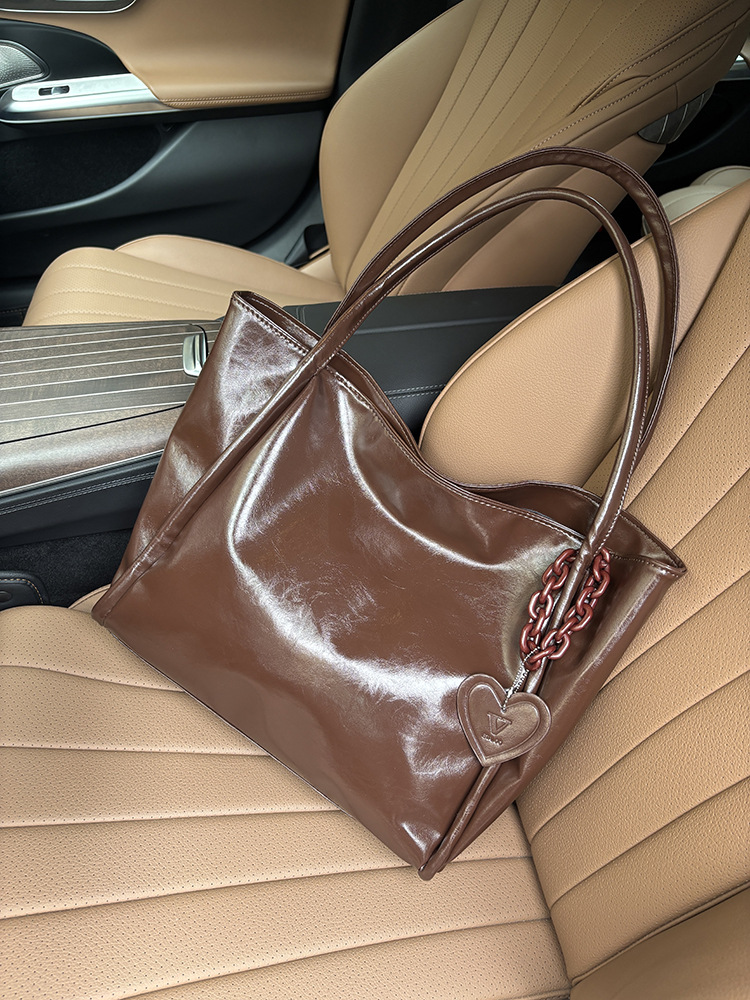 틈새 사랑 디자인 부드러운 가죽 대용량 토트 백 2025 새로운 한국 스타일 유행 다크 핸드 숄더 백스토어 가기
