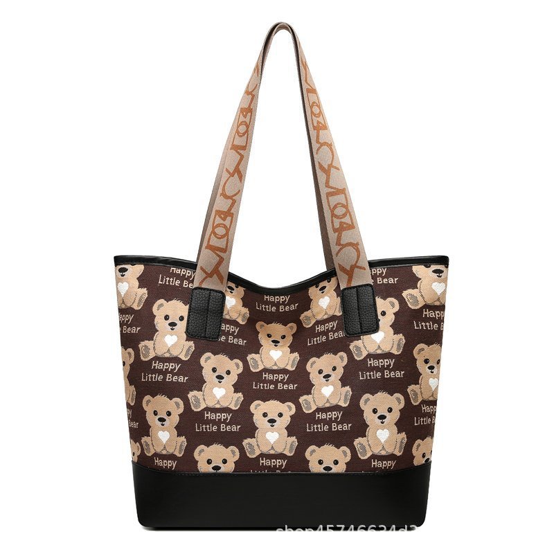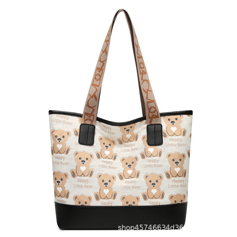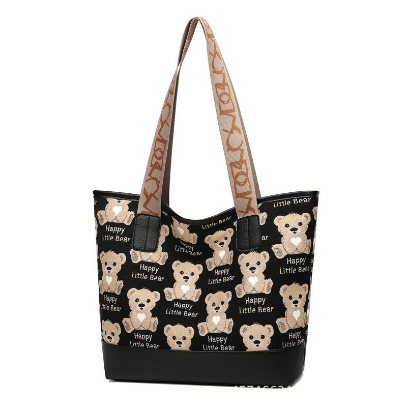 캐주얼 여성 가방 2025 새로운 대용량 캔버스 가방 귀여운 만화 곰 패션 휴대용 어깨 가방스토어 가기