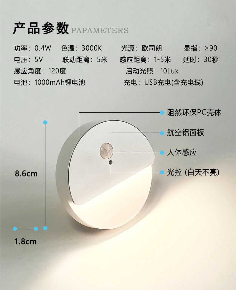 연계 유도 충전 야간 조명 벽 램프 침대 옆 복도 침실 계단 계단 크로스 국경 발 라이트 야간 조명
