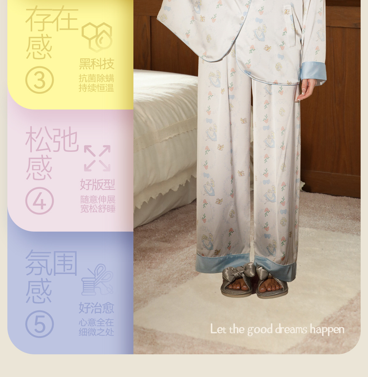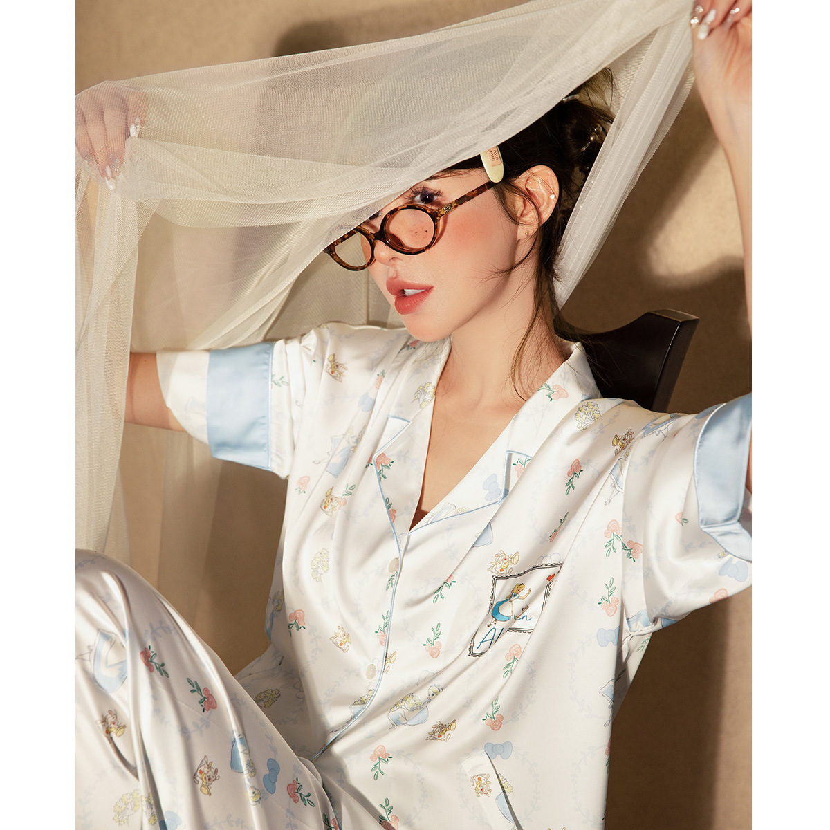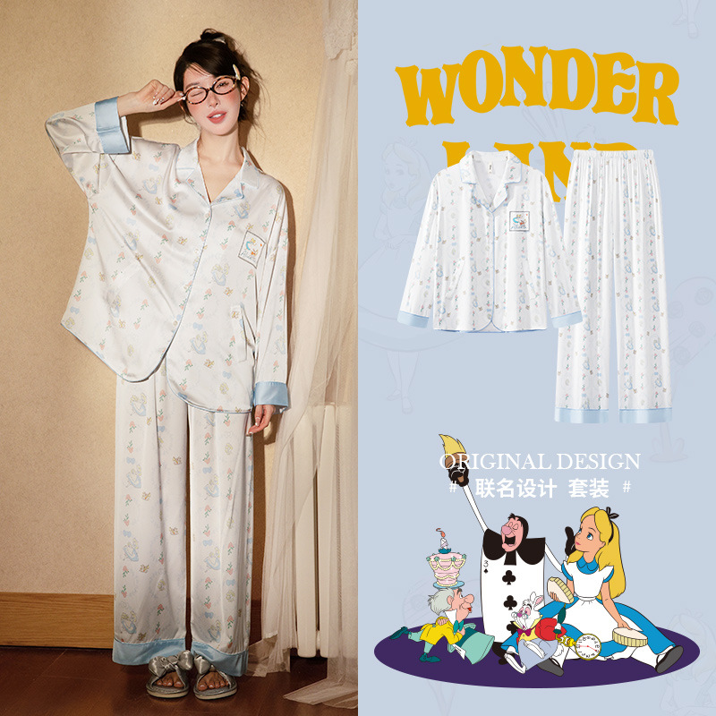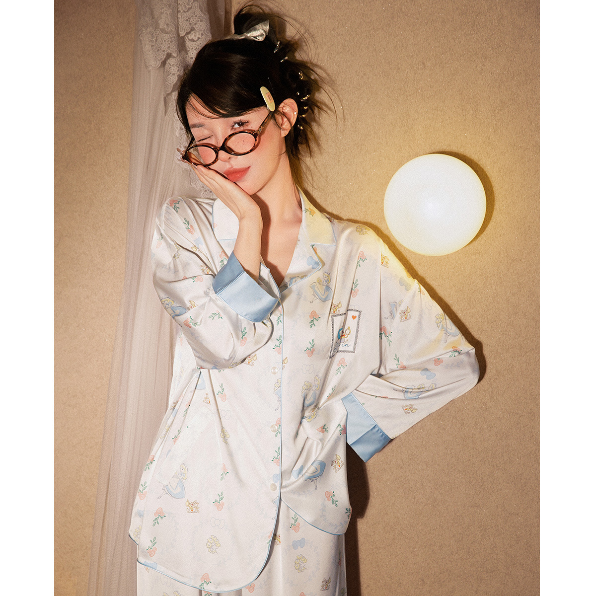 룬마 정품 합동 앨리스 봄과 여름 잠옷 여성용 긴 소매 소프트 아이스 실크 홈 의류 카디건 세트스토어 가기