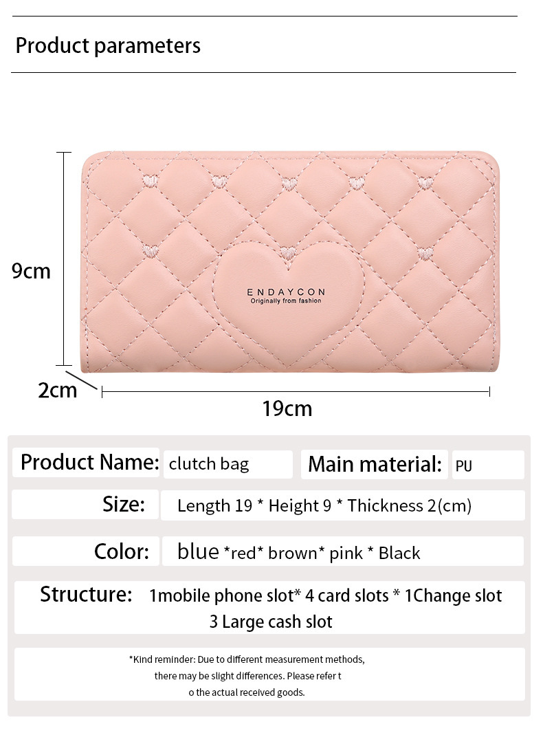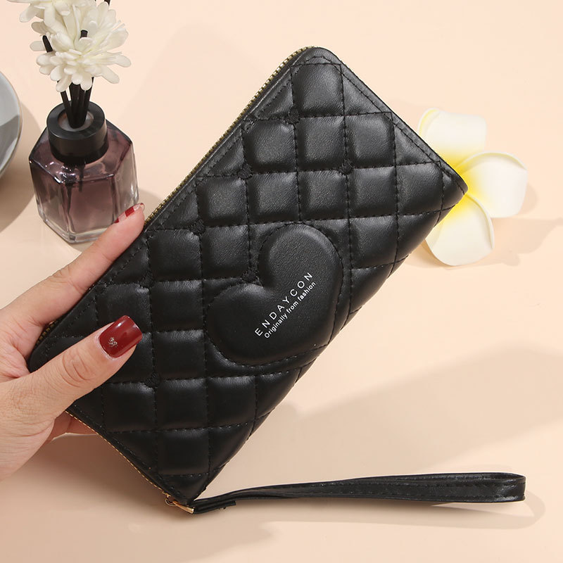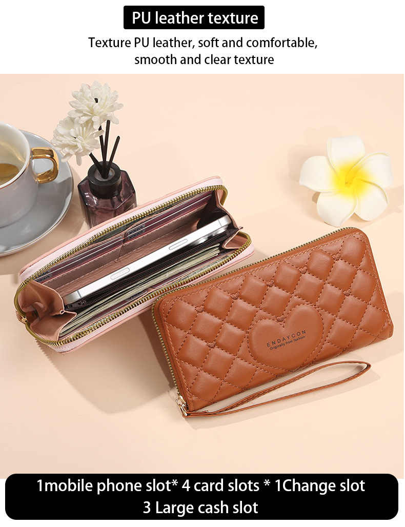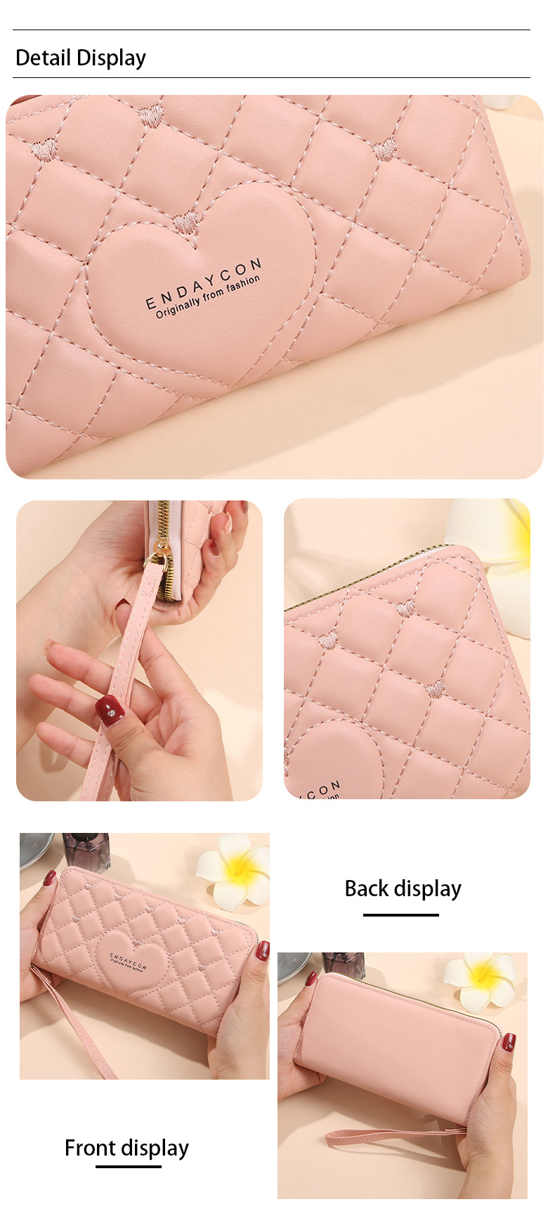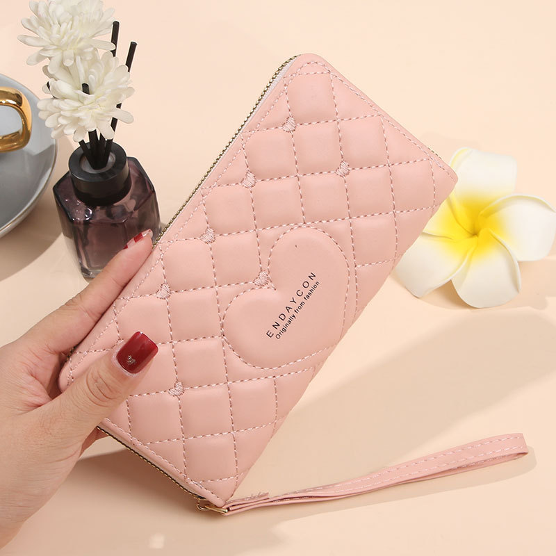 Xiaoxiang 스타일 사랑 지갑 한국 스타일 귀여운 PU 긴 동전 지갑 대용량 여성용 멀티 카드 지퍼 핸드백