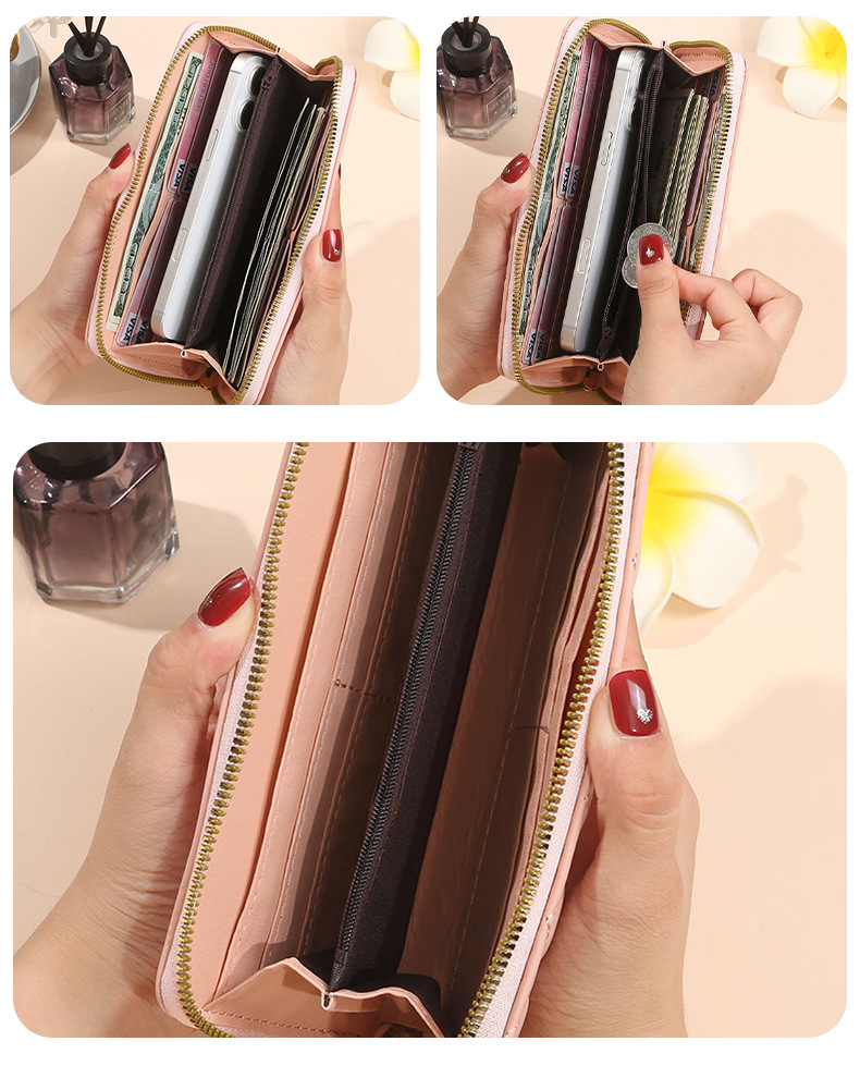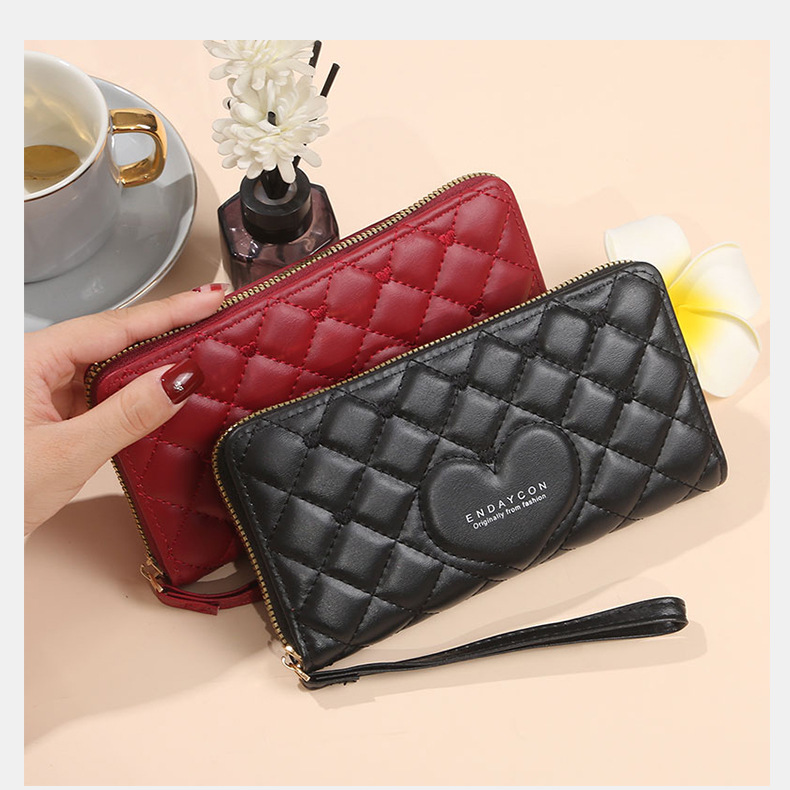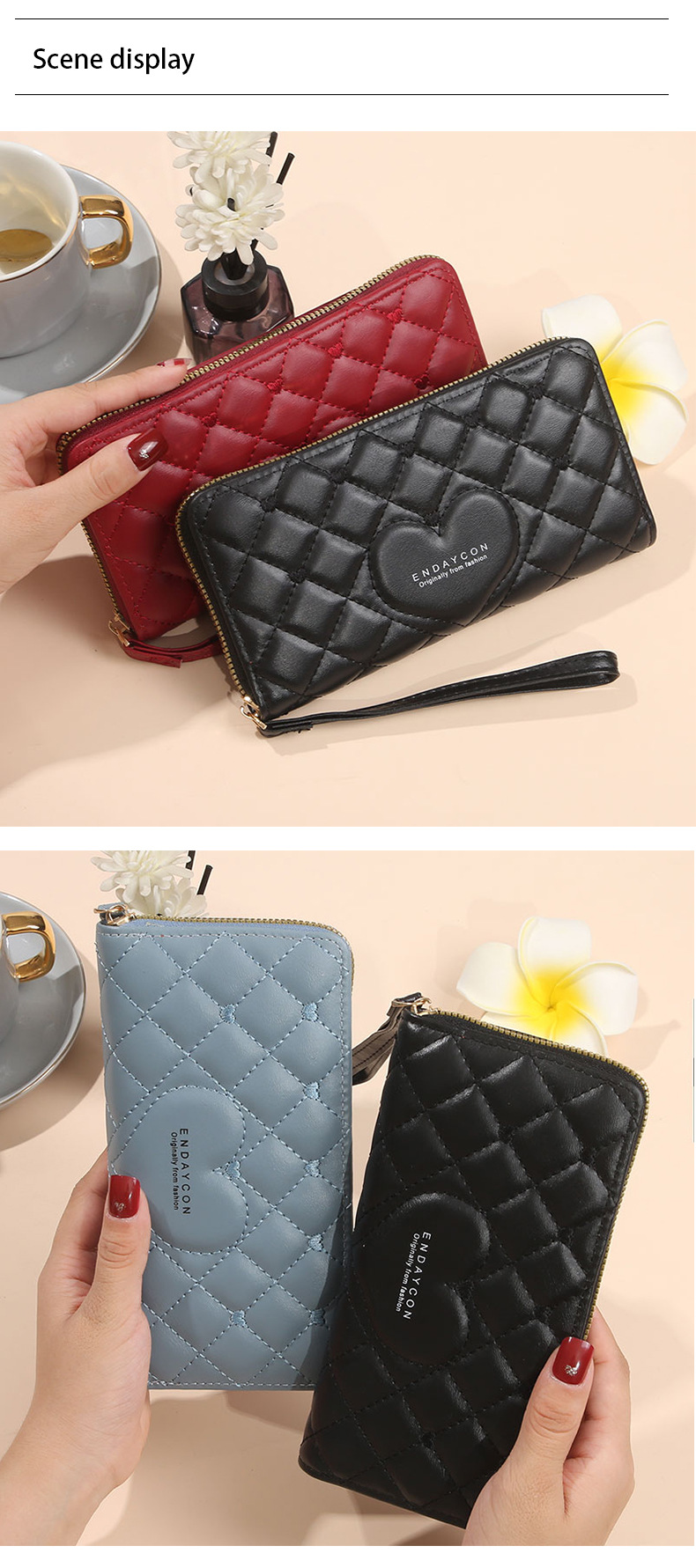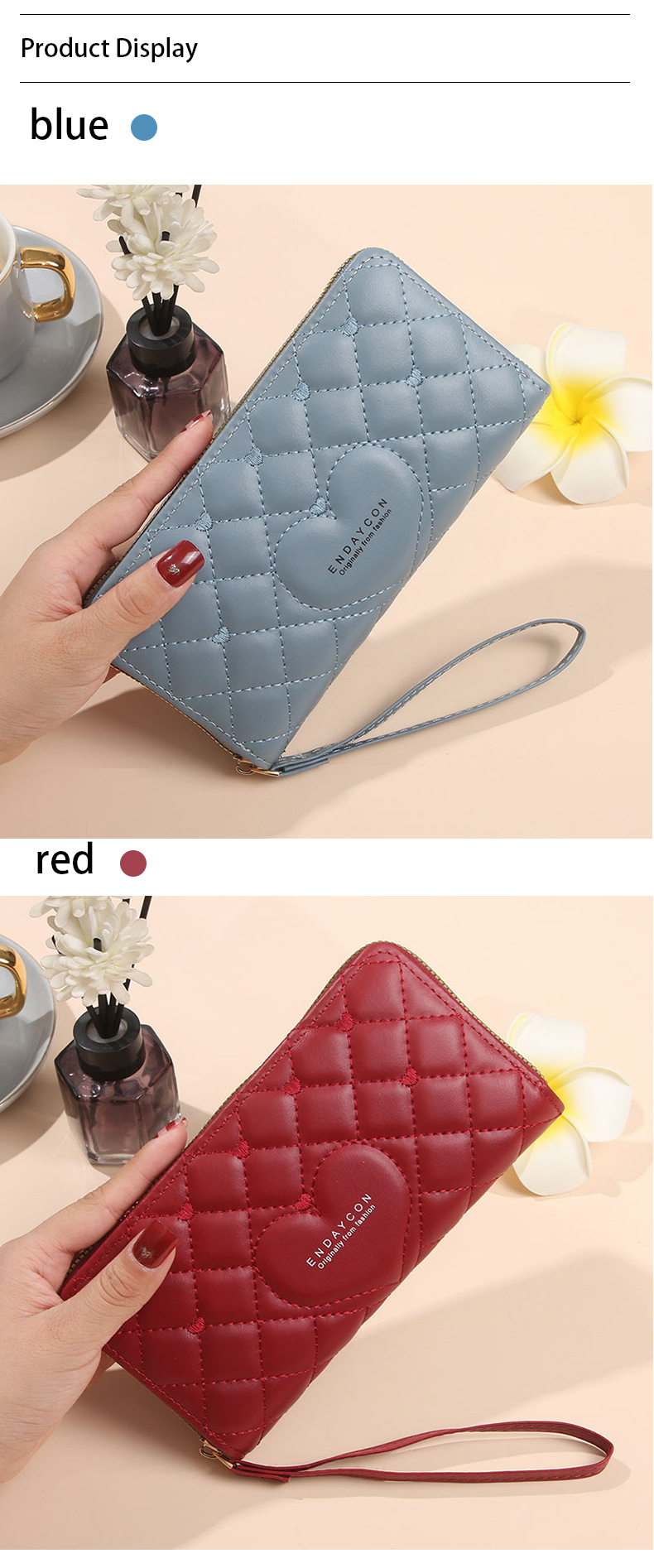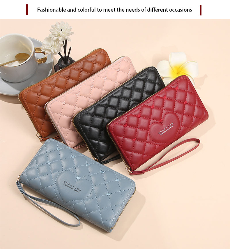 Xiaoxiang 스타일 사랑 지갑 한국 스타일 귀여운 PU 긴 동전 지갑 대용량 여성용 멀티 카드 지퍼 핸드백