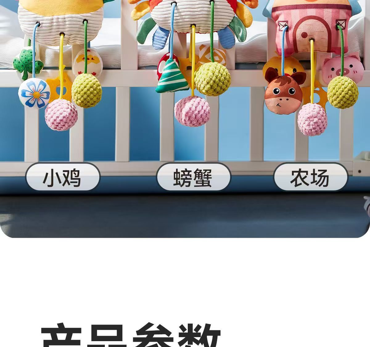 엄선된 유모차 딸랑이 장난감, 신생아 손잡이 진정 침대벨, 아기용 봉제 게 장난감