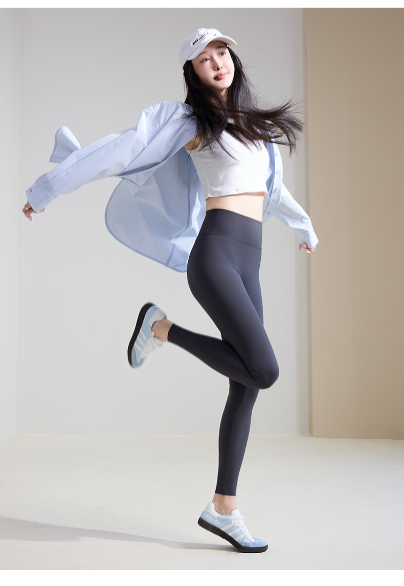 89082 # Shark Pants 여성 아우터웨어 2025 봄 새로운 높은 허리 배꼽 차기 레깅스 얇은 9 점 슬리밍 바비스토어 가기