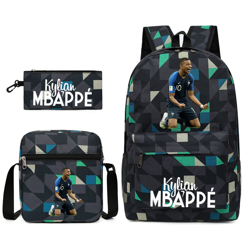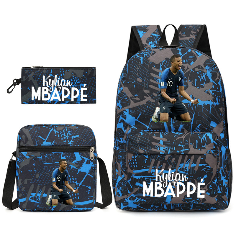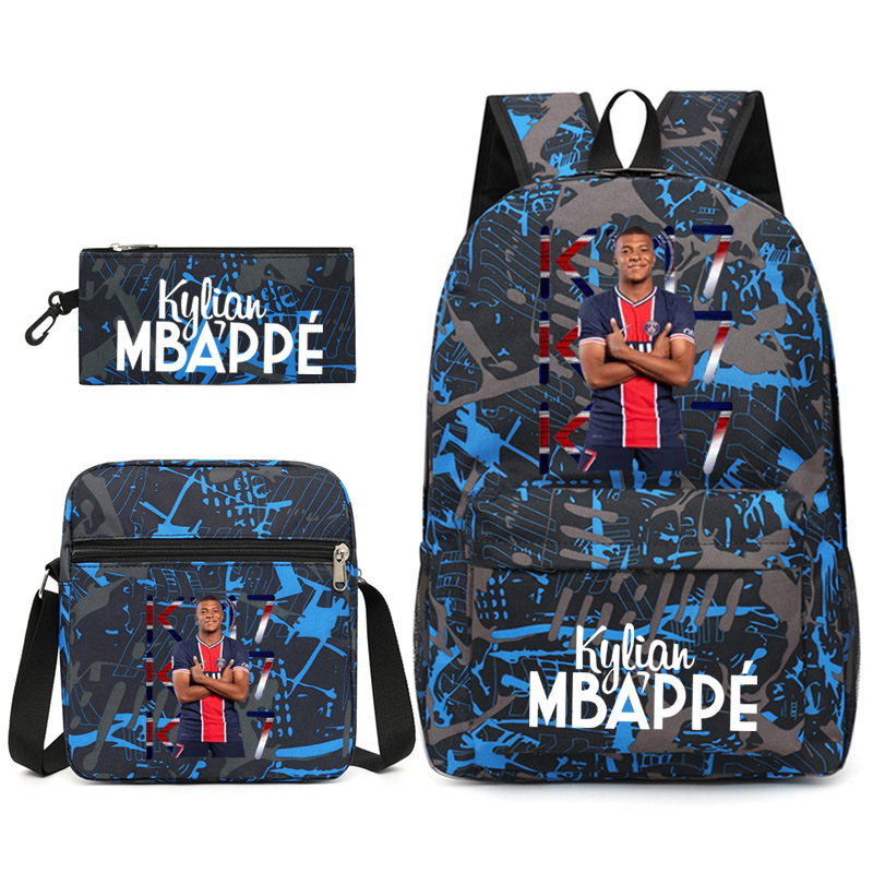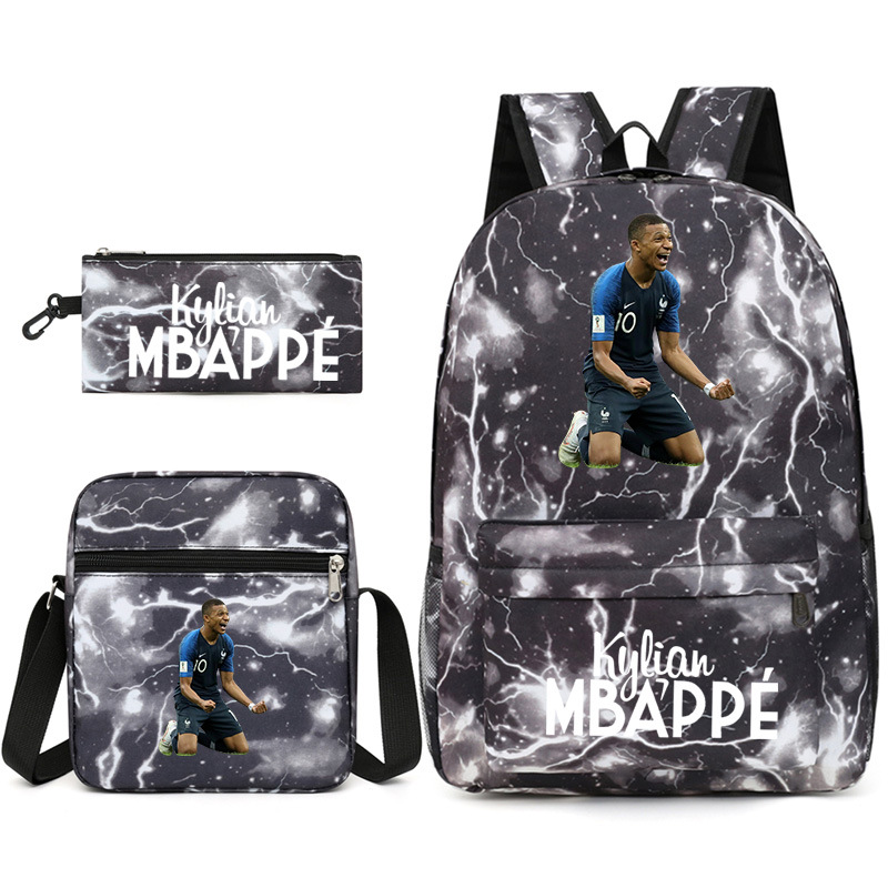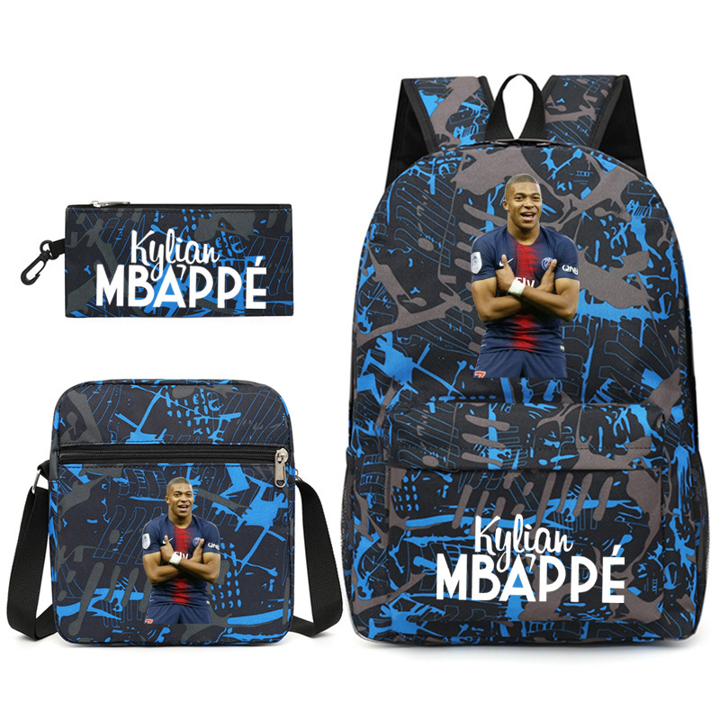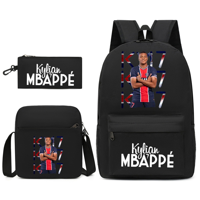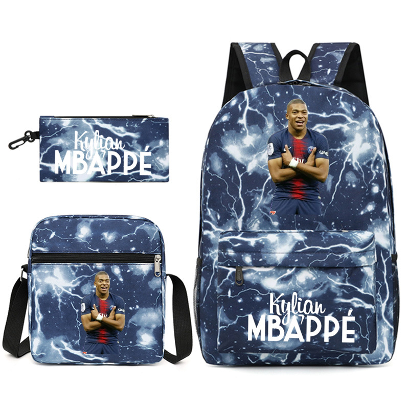 Mbappe Chao 브랜드 축구 선수 백팩 Satchel Pencil 케이스 3 조각 세트 초등학교 및 중등 학교 학생 어린이 배낭스토어 가기