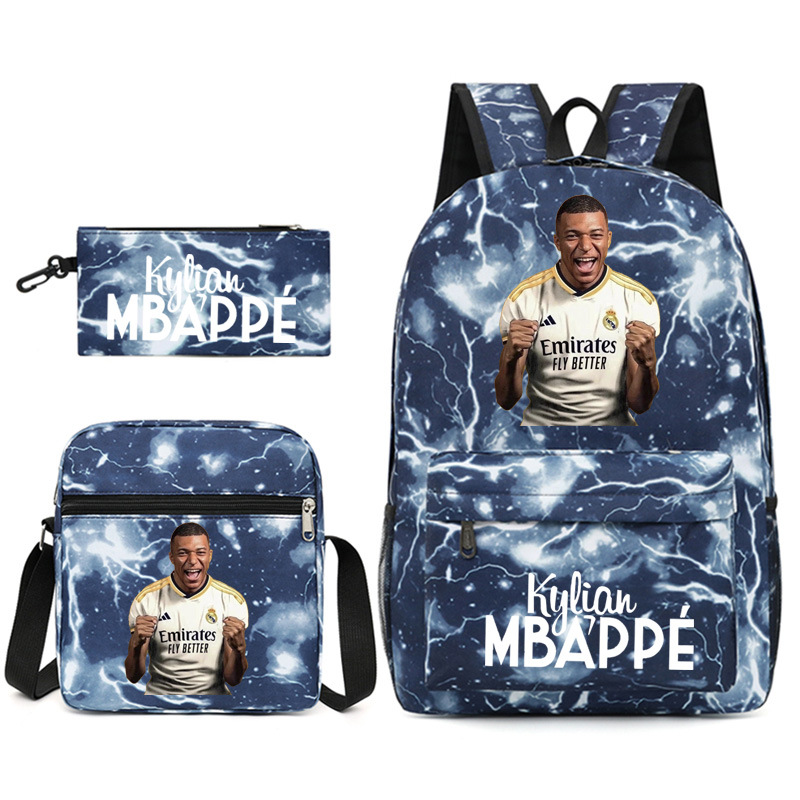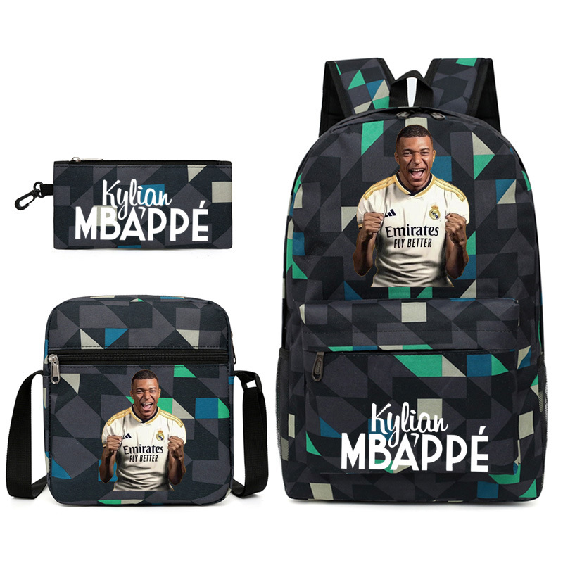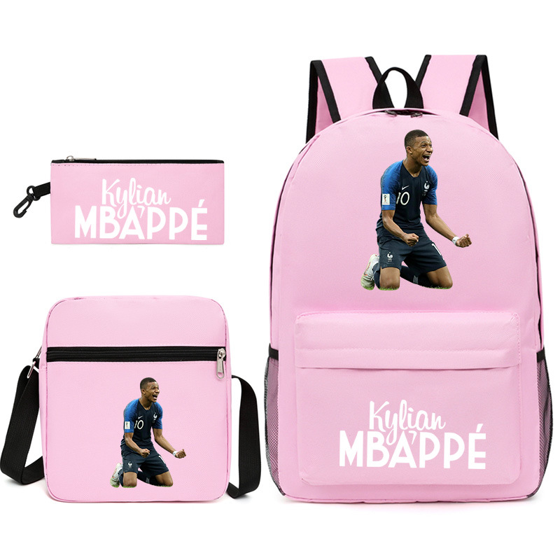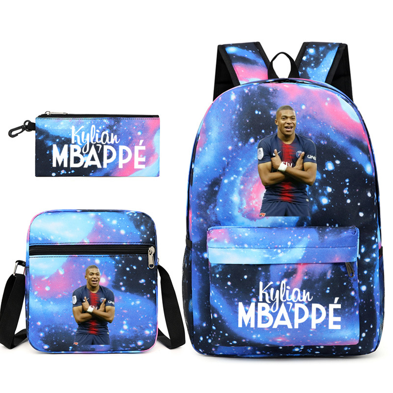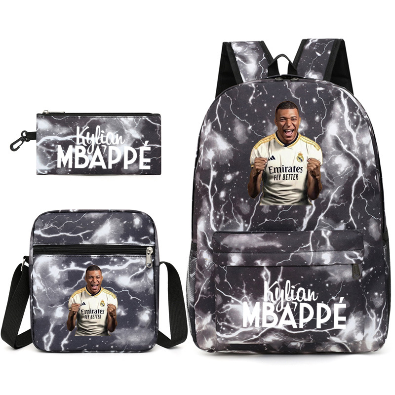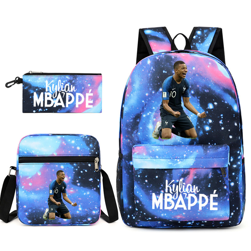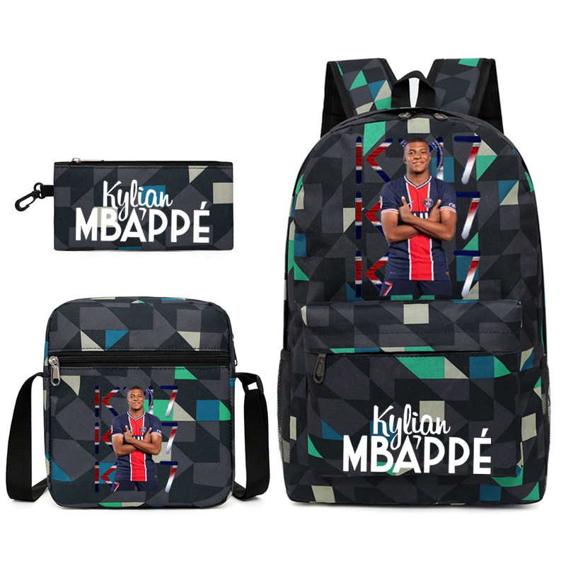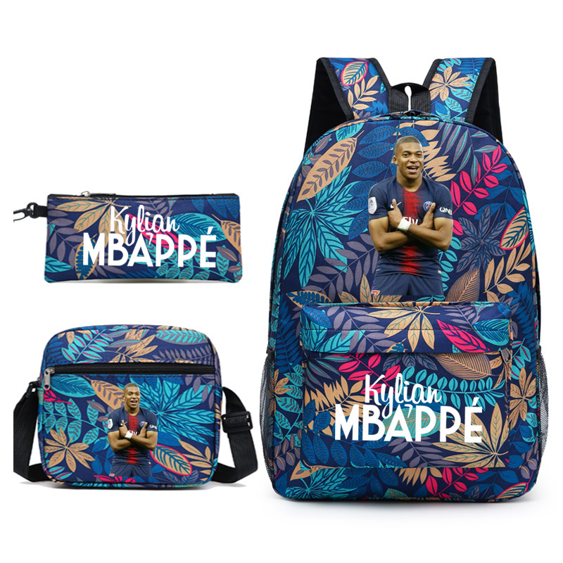 Mbappe Chao 브랜드 축구 선수 백팩 Satchel Pencil 케이스 3 조각 세트 초등학교 및 중등 학교 학생 어린이 배낭스토어 가기