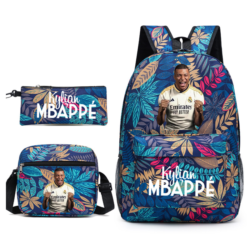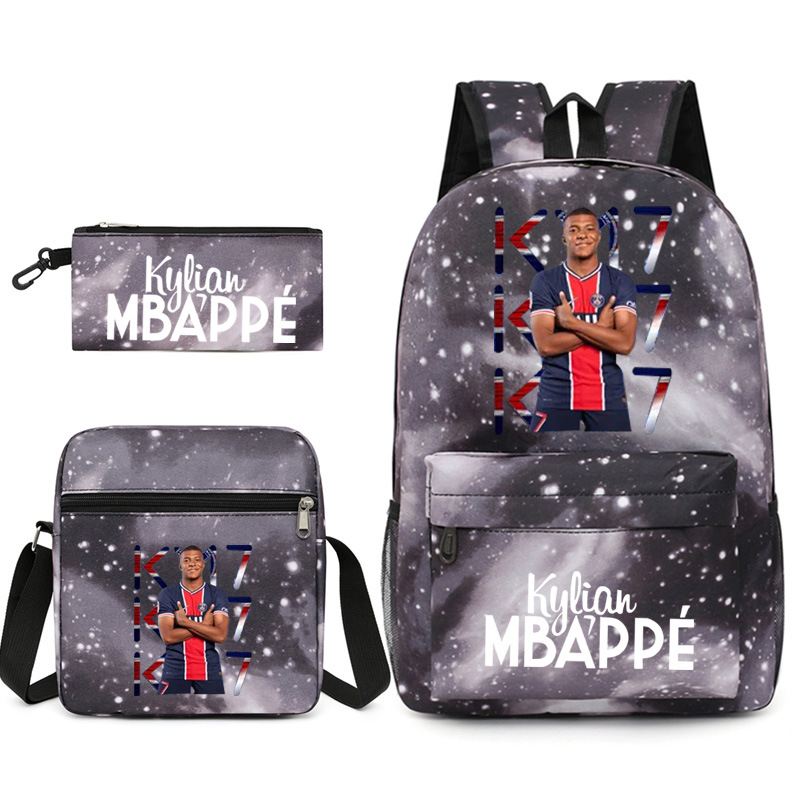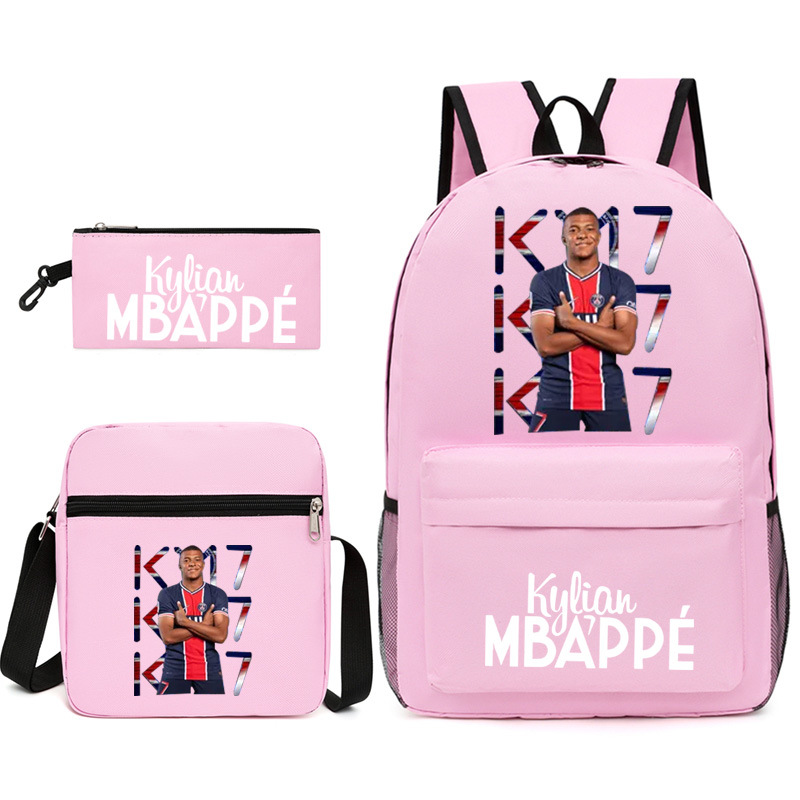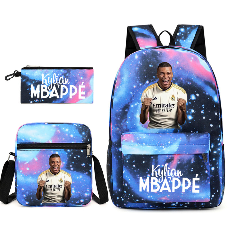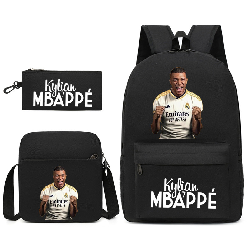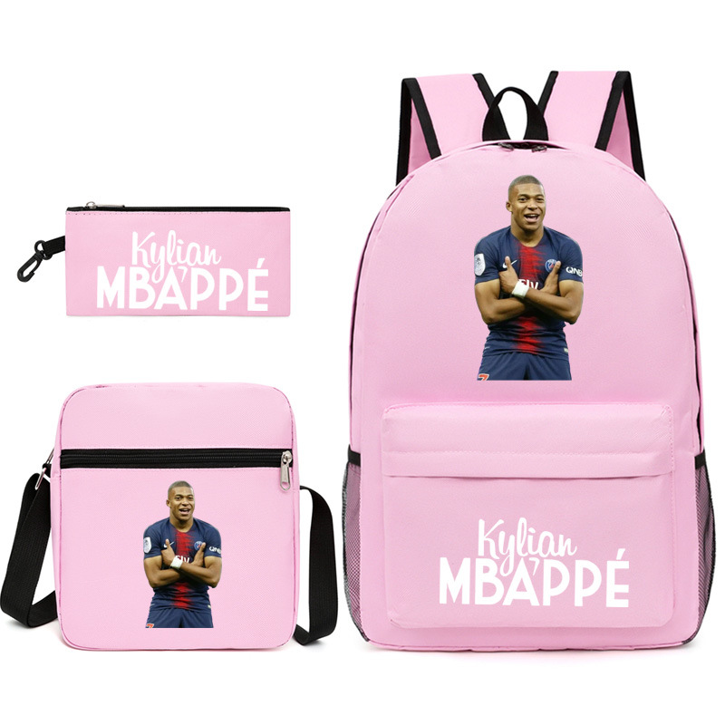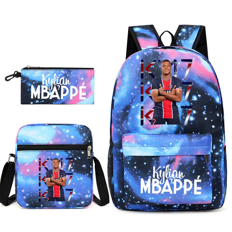 Mbappe Chao 브랜드 축구 선수 백팩 Satchel Pencil 케이스 3 조각 세트 초등학교 및 중등 학교 학생 어린이 배낭스토어 가기