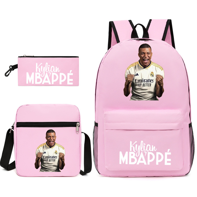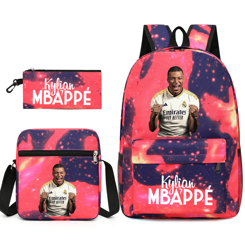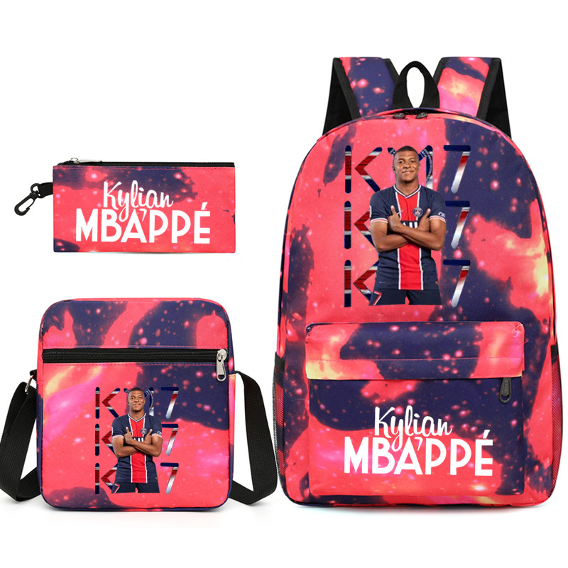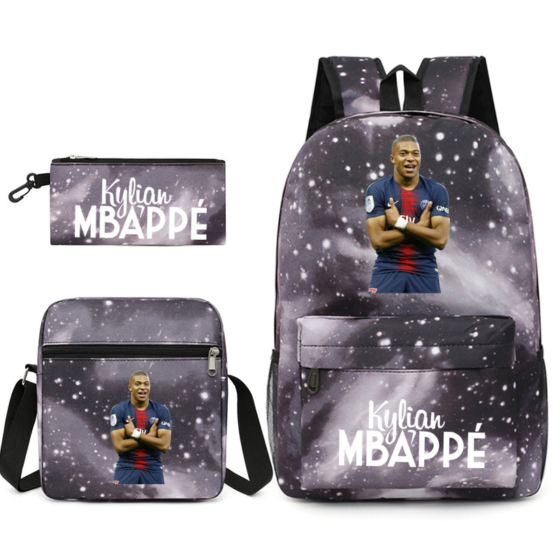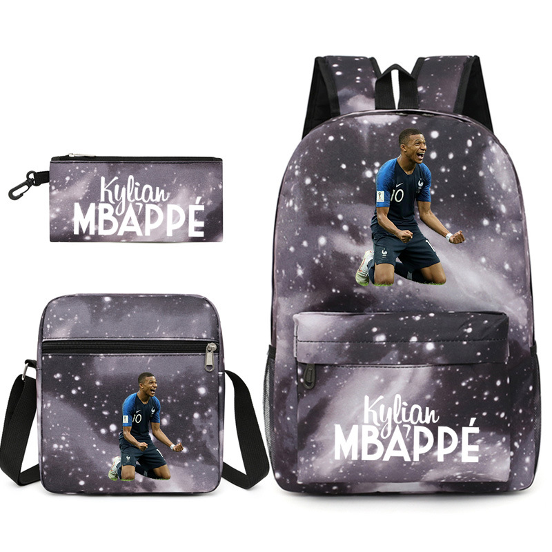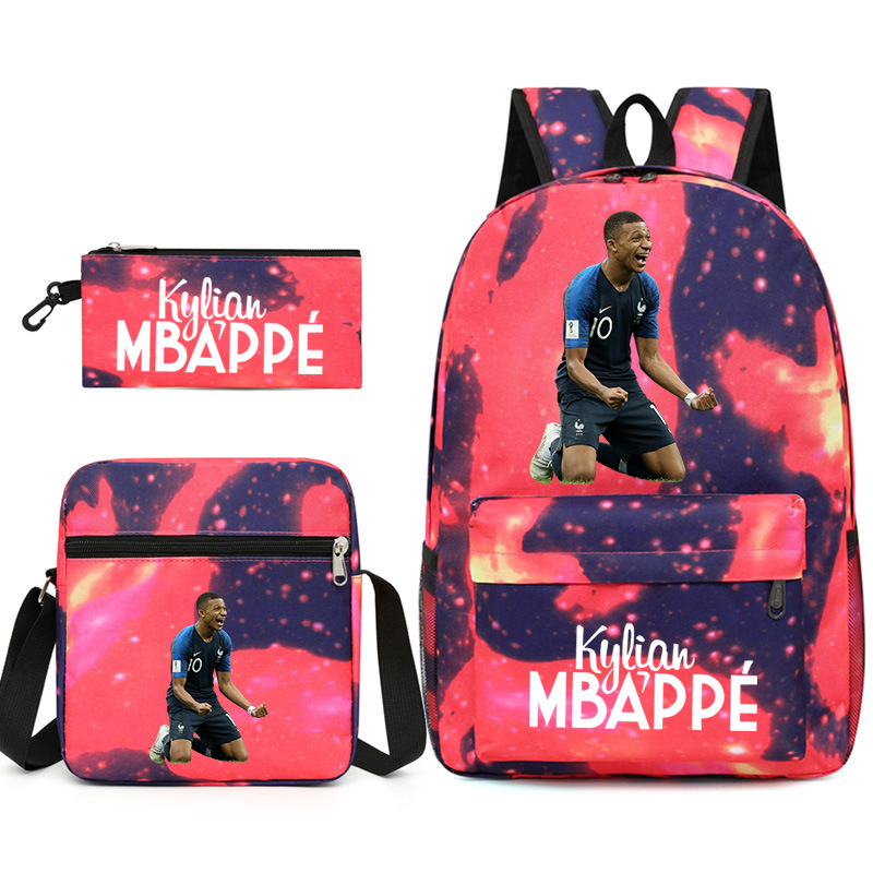 Mbappe Chao 브랜드 축구 선수 백팩 Satchel Pencil 케이스 3 조각 세트 초등학교 및 중등 학교 학생 어린이 배낭