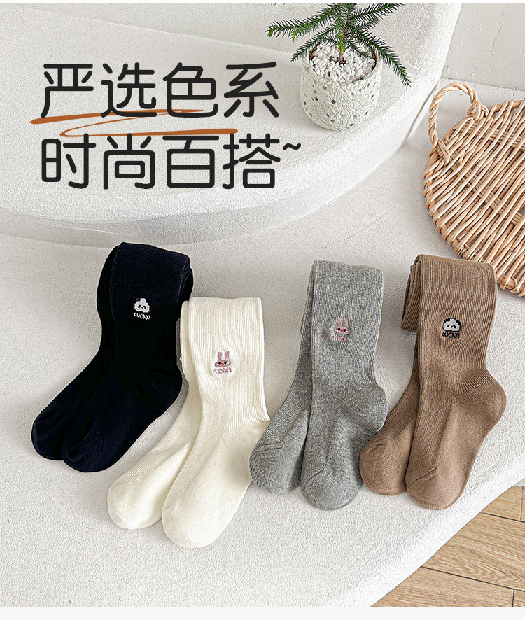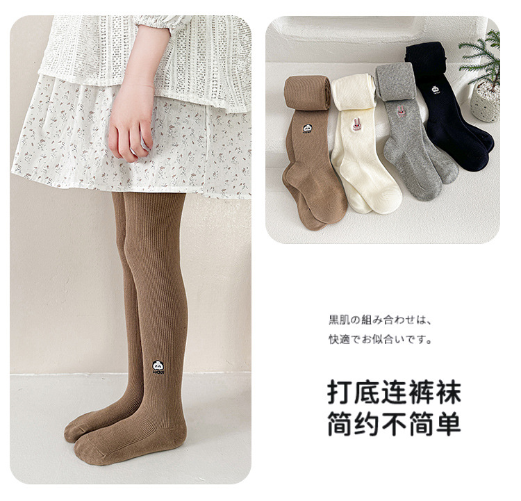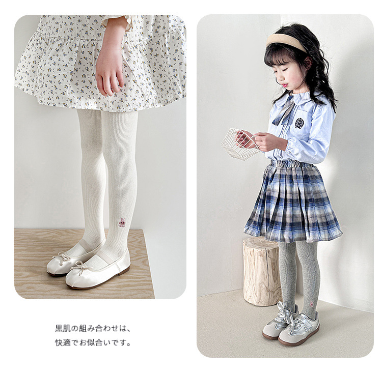 어린이 팬티 스타킹 도매 2025 봄과 가을 소녀 수 놓은 흰색 팬티 스타킹 중간 두꺼운 귀여운 토끼 코튼 레깅스스토어 가기