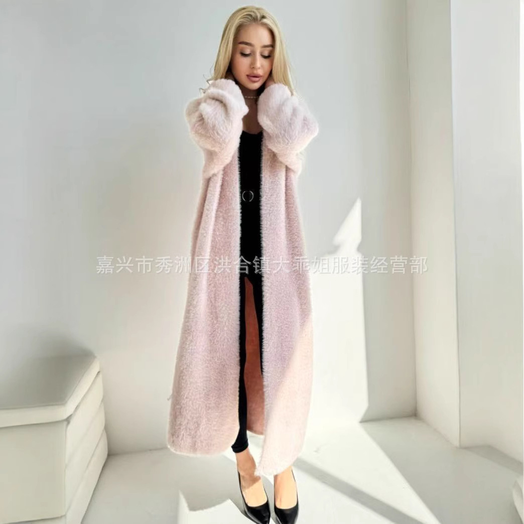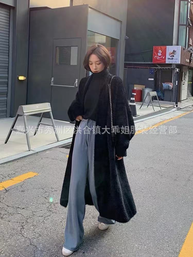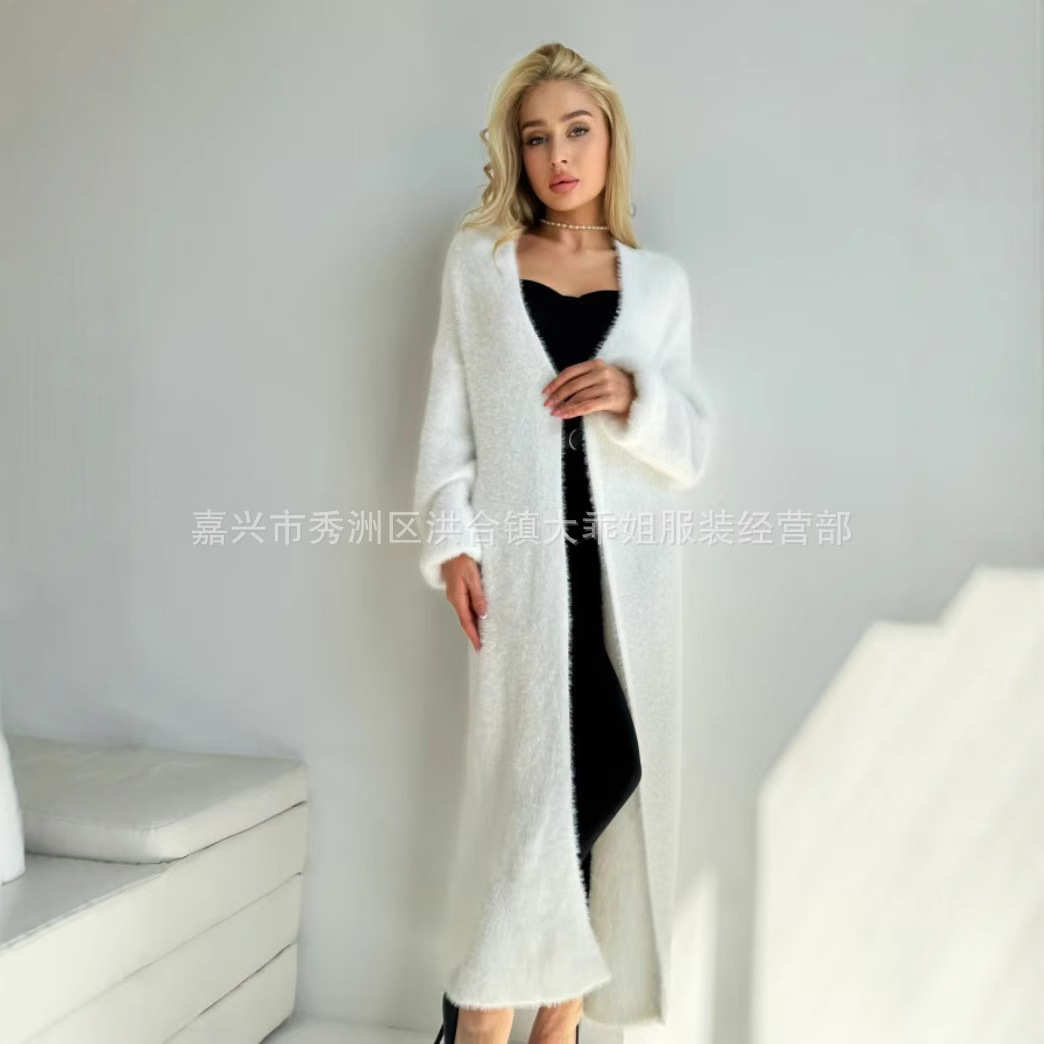 화이트 밍크 벨벳 카디건 스웨터 긴 느슨한 게으른 스타일 스웨터 코트 여성 봄, 가을 솔리드 컬러 외부 코트스토어 가기