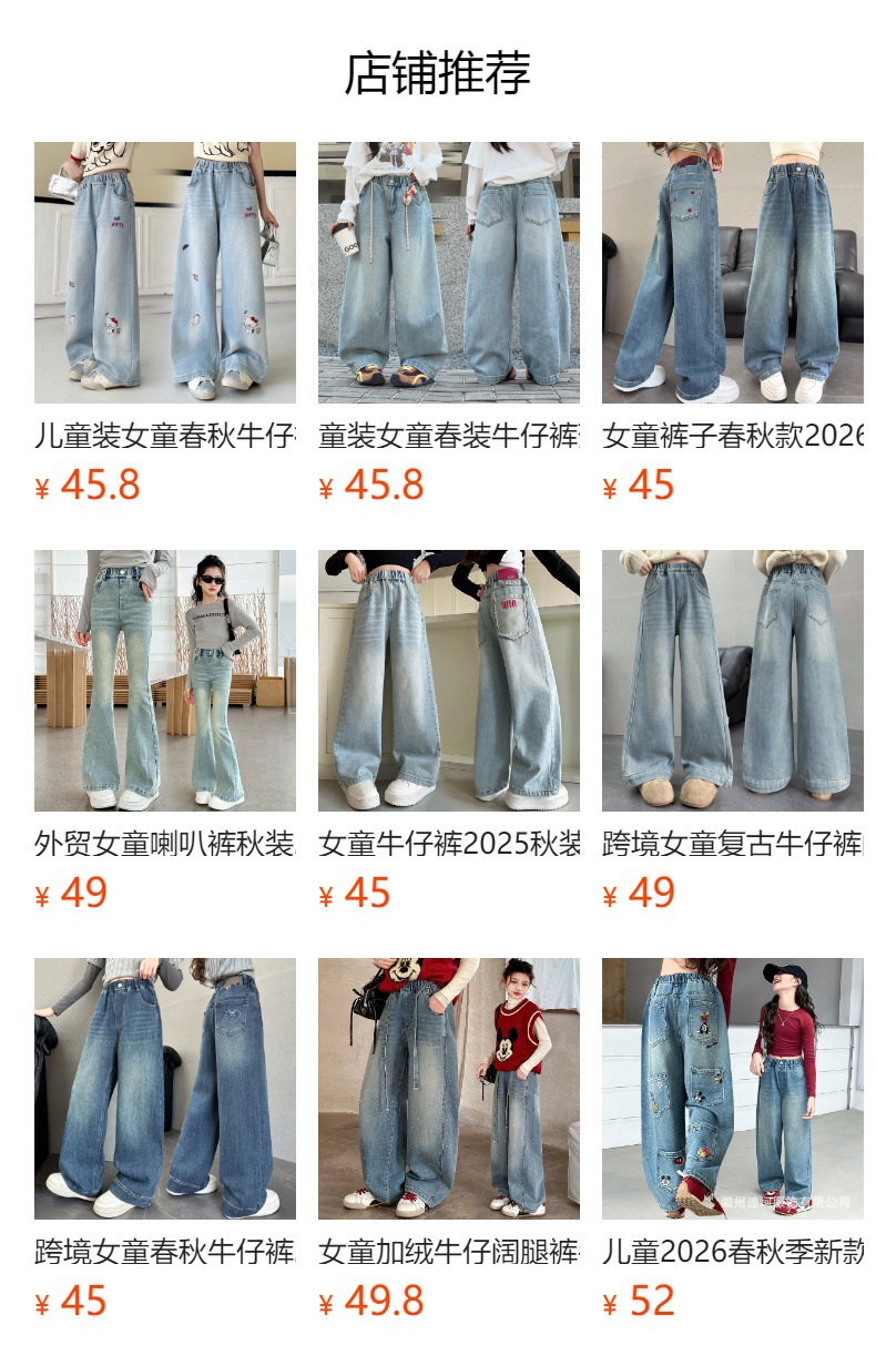 여아 바지 봄 가을 2026 신상품 여아용 밝은색 자수 와이드 팬츠 아동용 한국 스타일 루즈핏 청바지스토어 가기