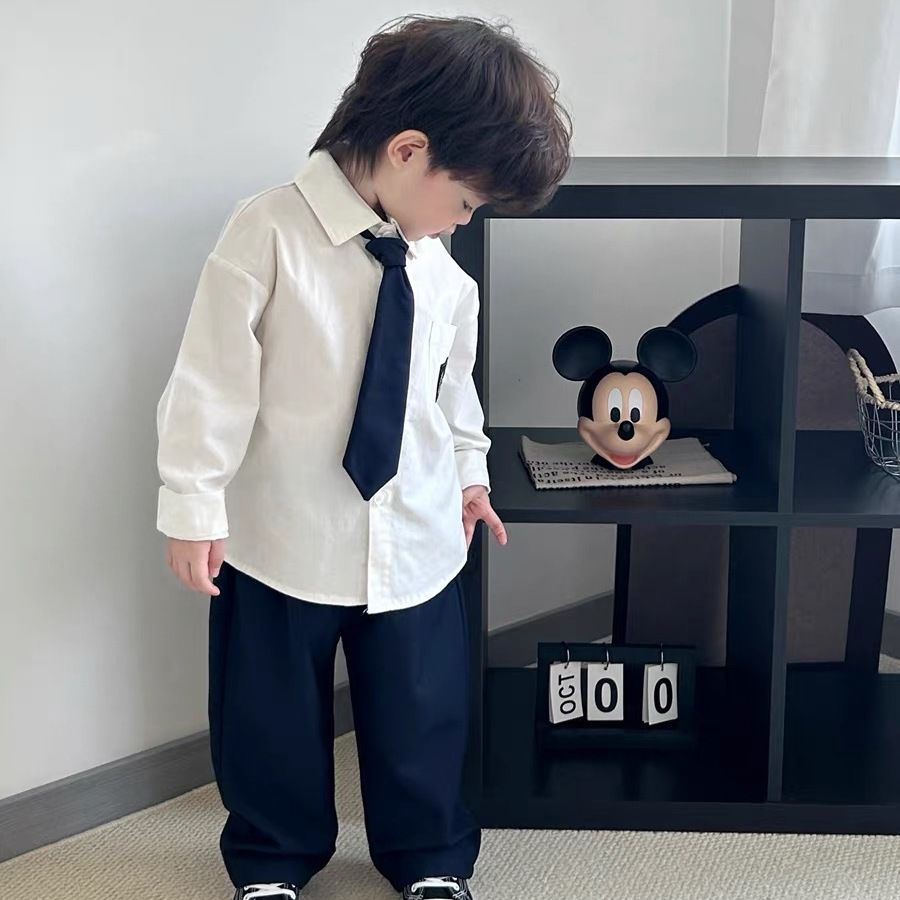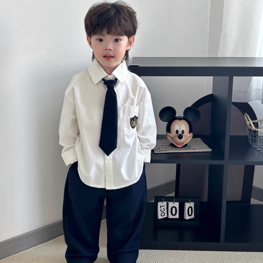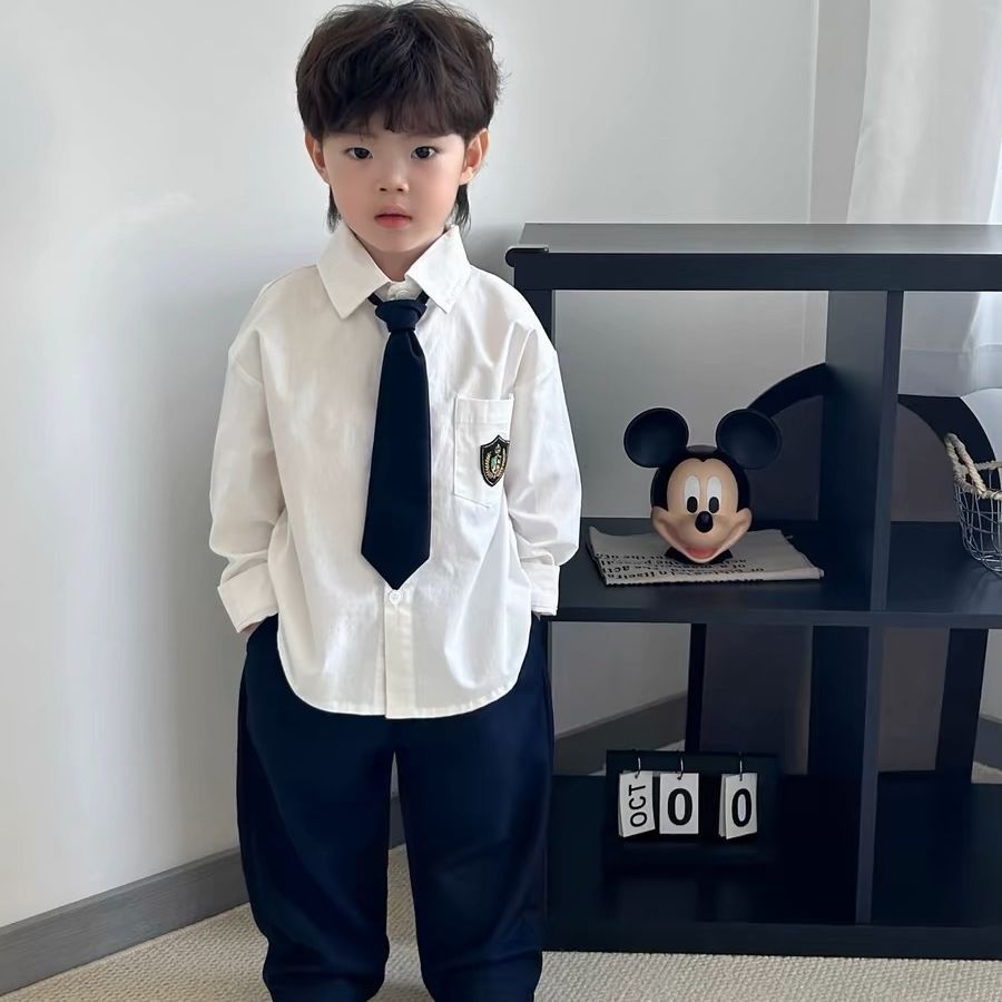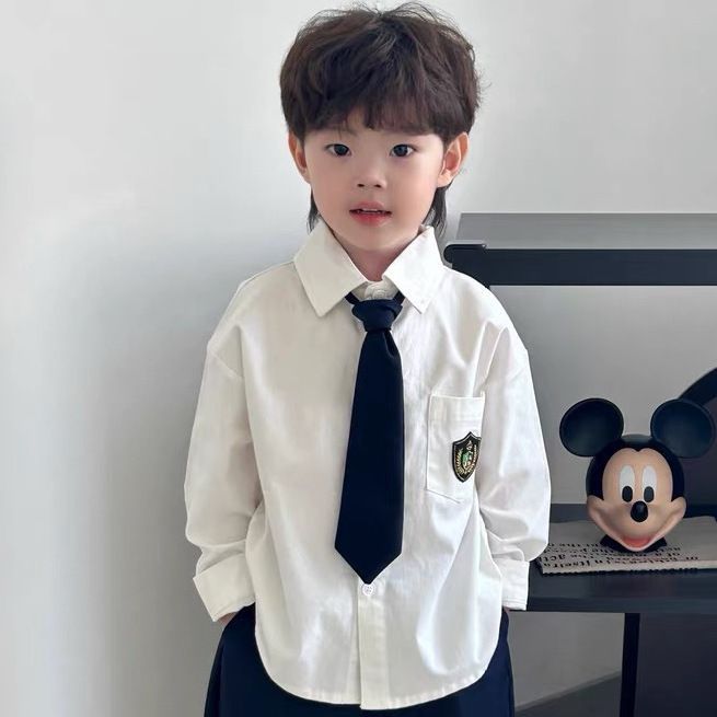 남아용 멋진 컬리지 스타일 흰색 긴팔 셔츠, 베이비 2026년 신상 중대형 아동용 트렌디하고 다용도로 활용 가능한 루즈핏 셔츠스토어 가기
