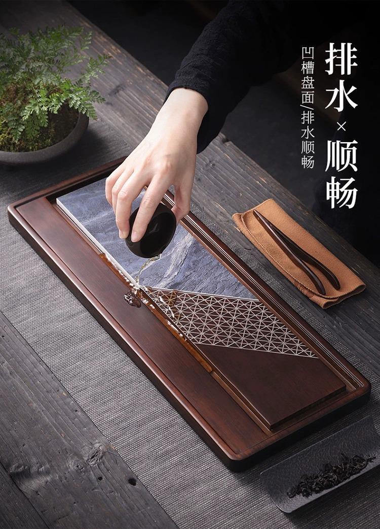 가정용 대나무 건조하고 젖은 차 트레이 간단한 배수 드라이 버블 트레이 하이 엔드 차 테이블 차 차 바다 단단한 나무 쿵푸 차 트레이