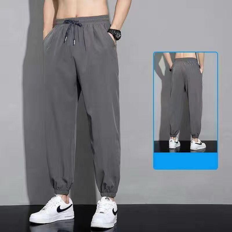2025 새로운 여름 아이스 실크 스트레치 바지 남자의 얇은 유행 유행 브랜드 다리 발가락 느슨한 스포츠 캐주얼 바지스토어 가기