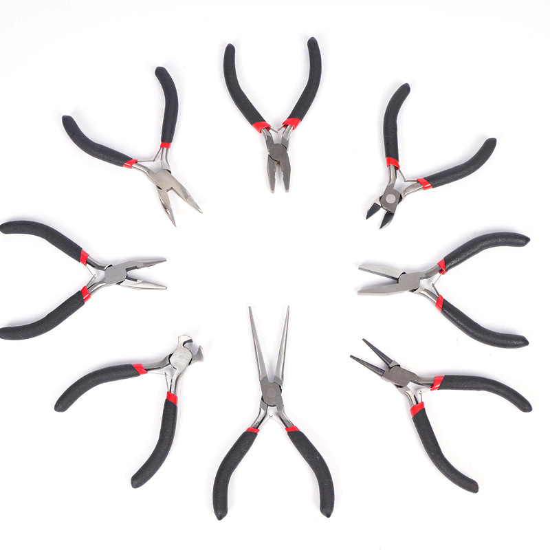 보석용 펜치 레드&블랙 8종 세트, 바늘코, 곡선코, 스틸 와이어, 플랫코, 뾰족코 펜치, 탄소강 소재, DIY 수공예 펜치, 장신구 펜치