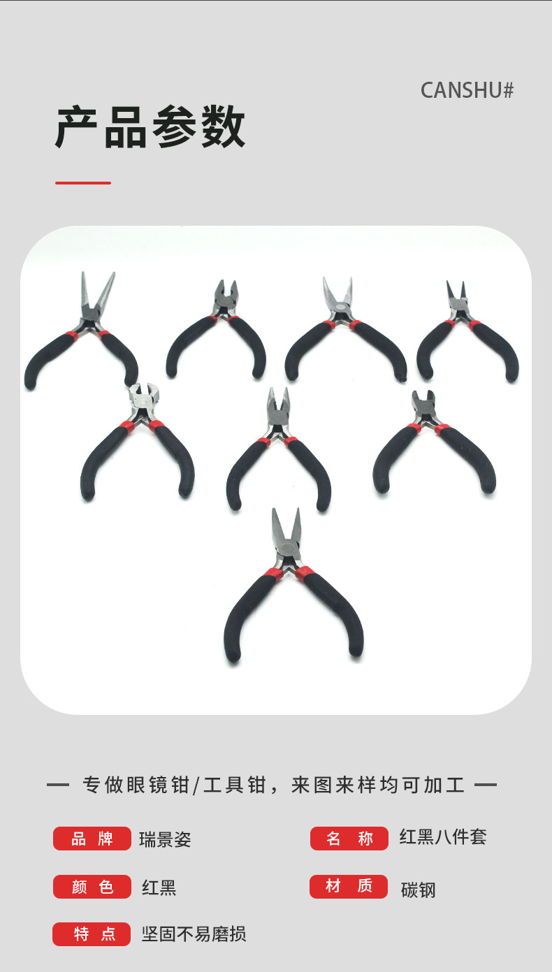 보석용 펜치 레드&블랙 8종 세트, 바늘코, 곡선코, 스틸 와이어, 플랫코, 뾰족코 펜치, 탄소강 소재, DIY 수공예 펜치, 장신구 펜치스토어 가기