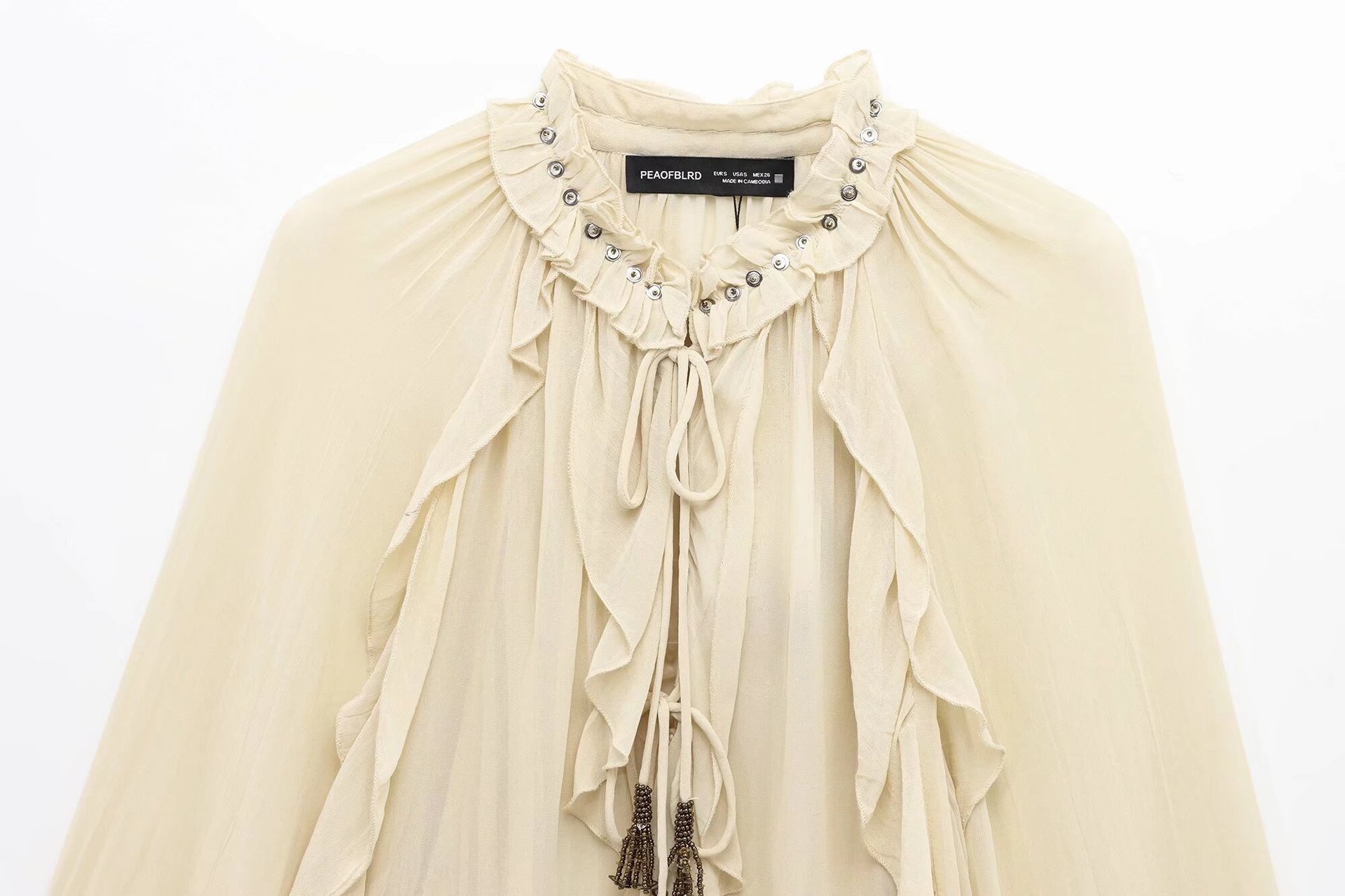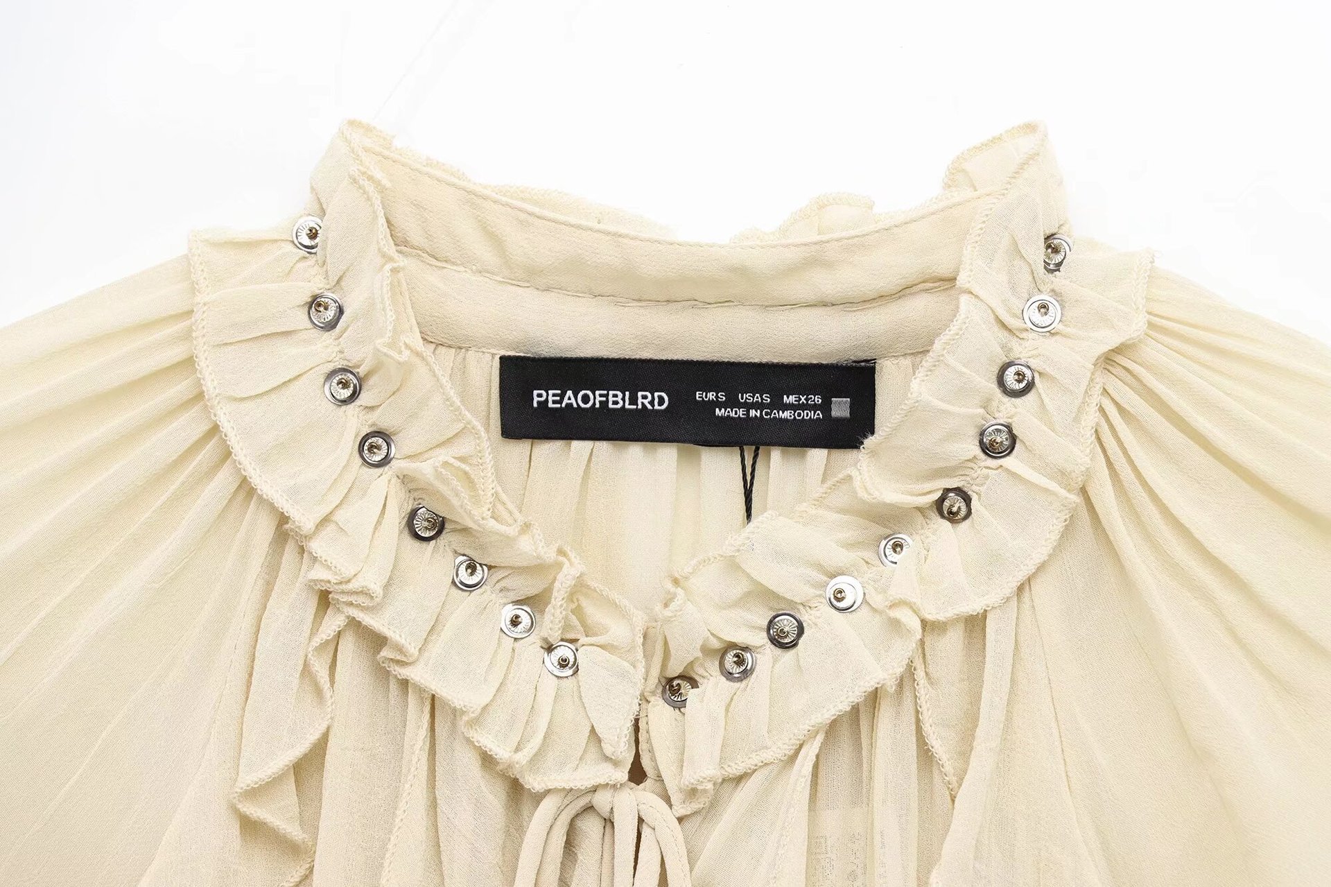 대외 무역 도매 2025 봄 새로운 패션 나비 넥타이 적층 장식 프랑스 랜턴 소매 셔츠