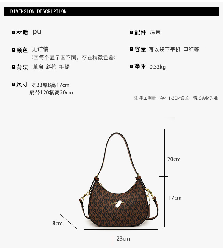 하이 엔드 초승달 가방 여성 2025 새로운 패션 프린트 어깨 언더암 가방 유행 니치 휴대용 크로스 바디 백