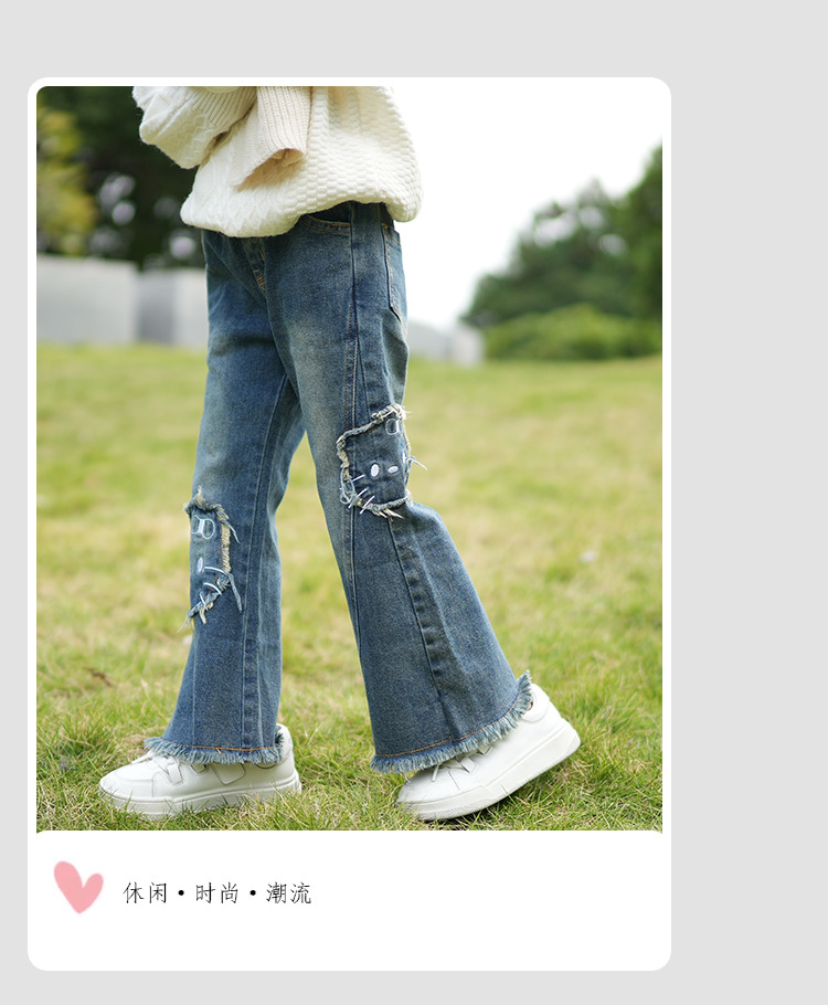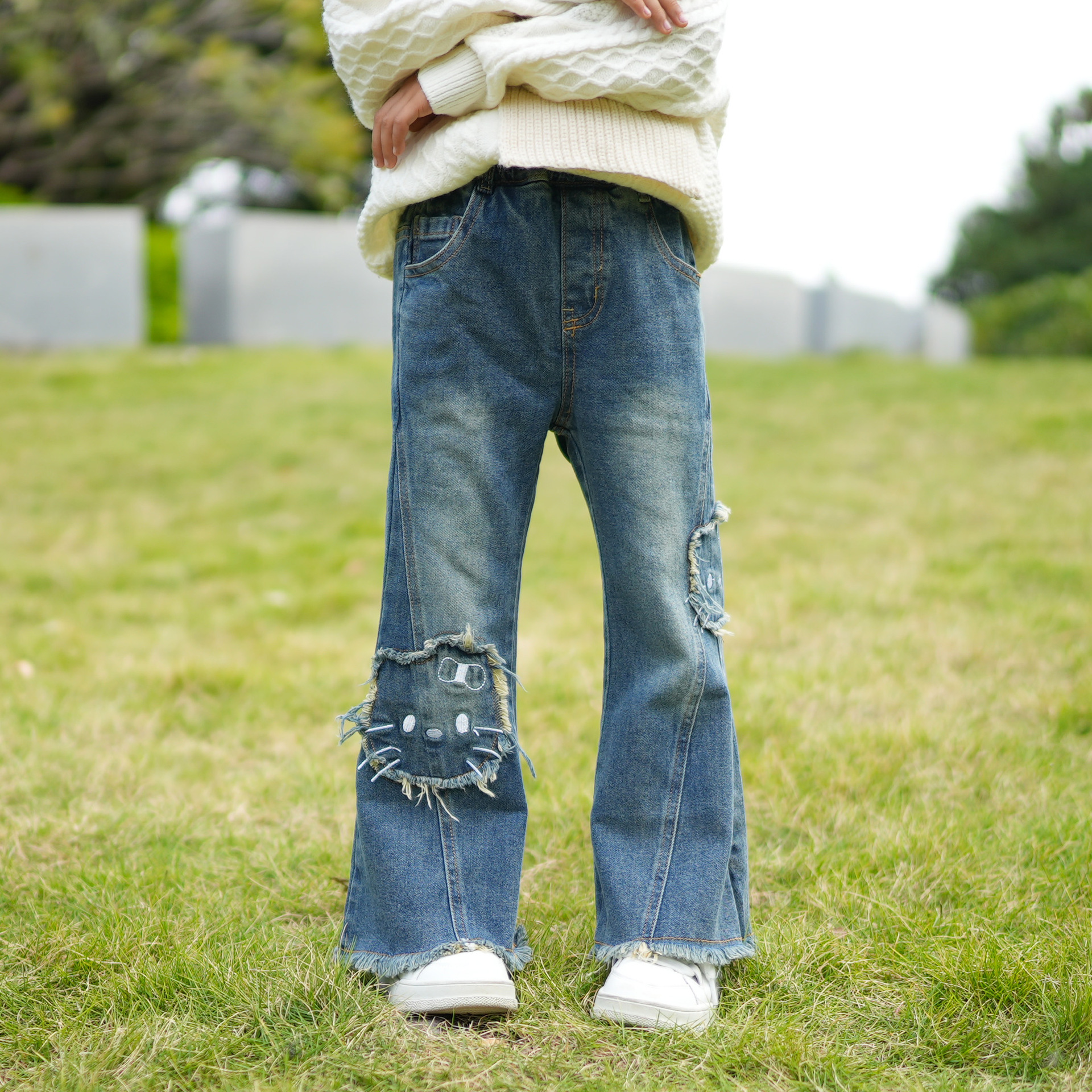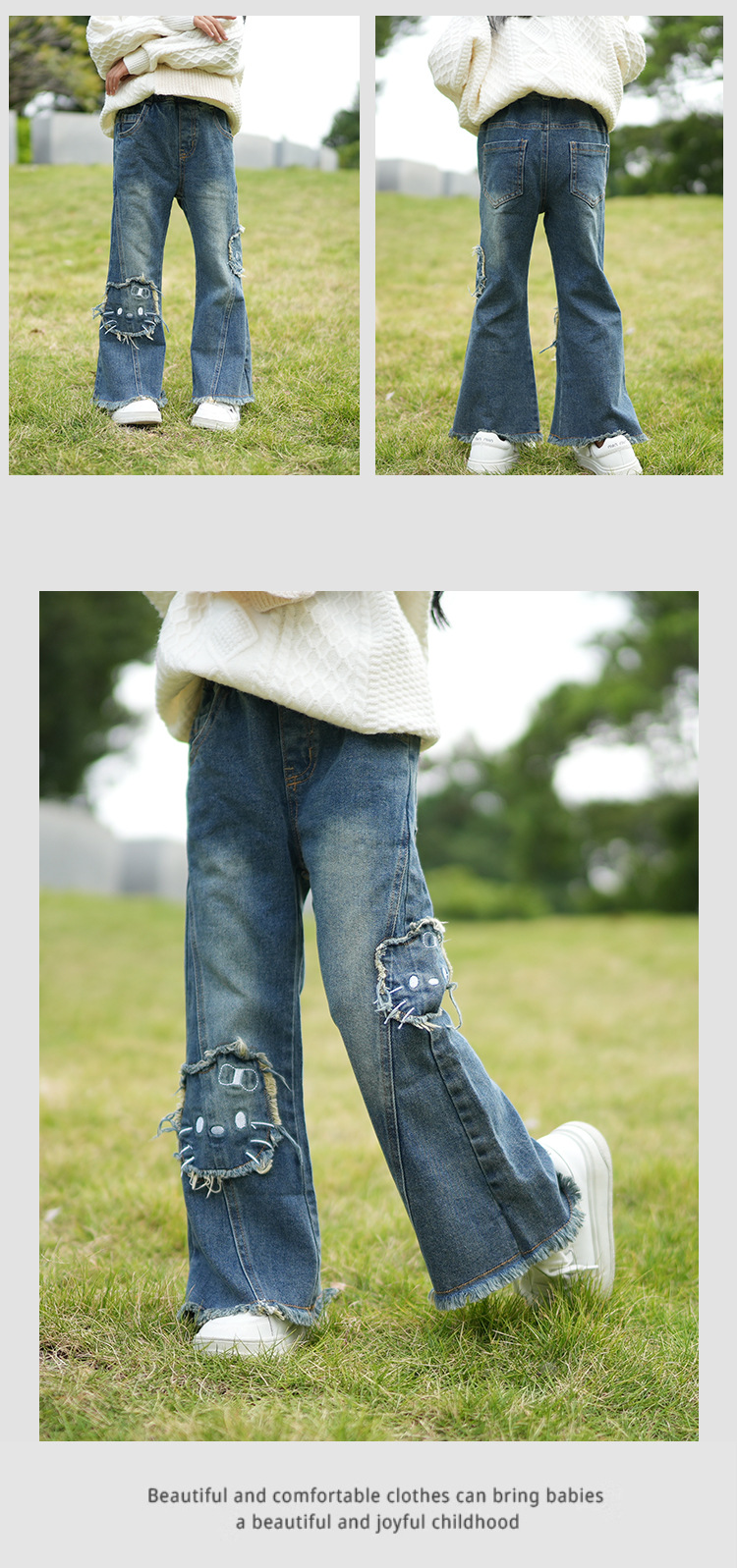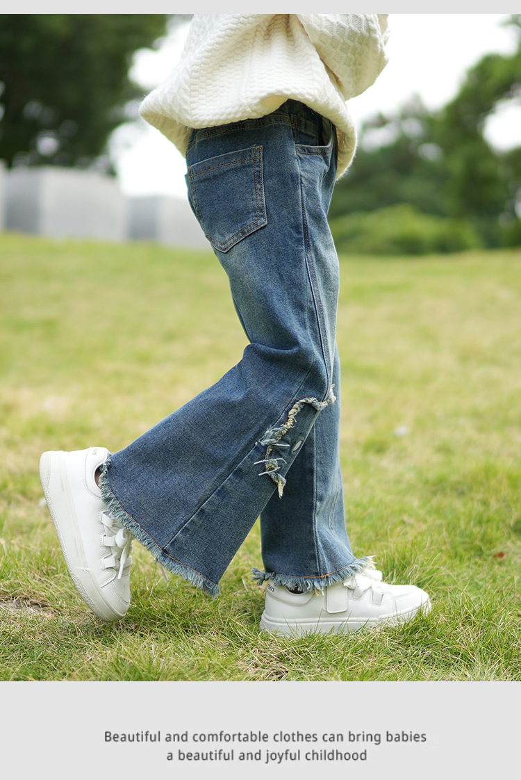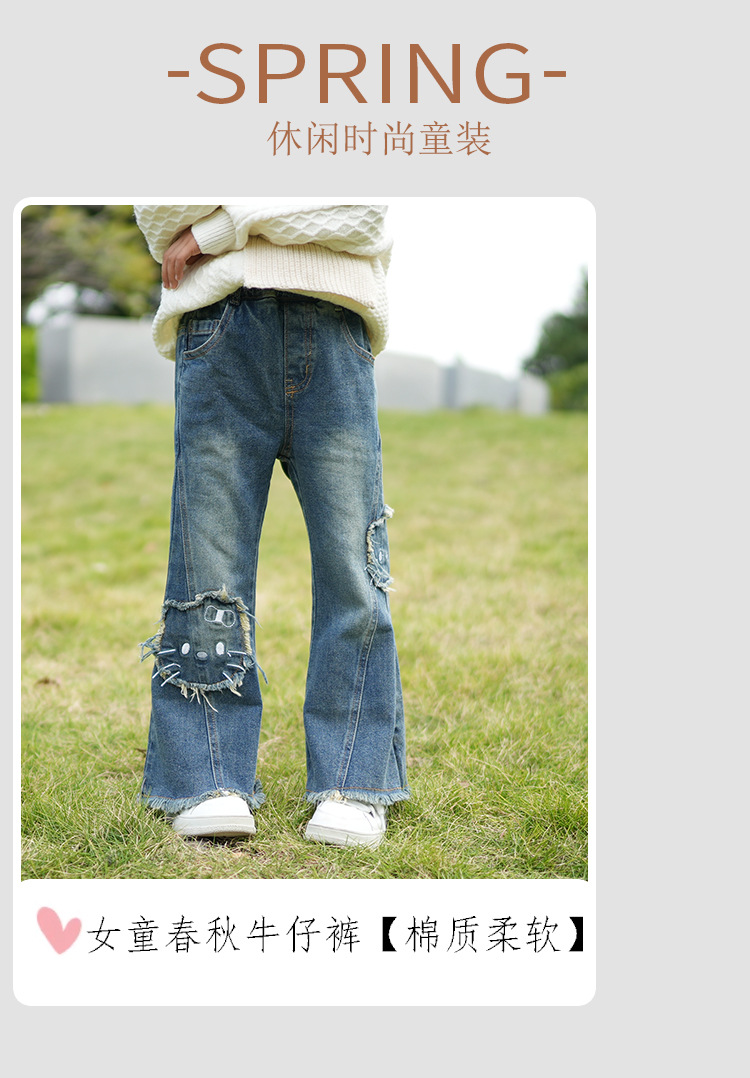 여아 바지 봄 가을 스타일 2026 신상 아동 가을 청바지 여아 패셔너블한 가을 캐주얼 나팔바지스토어 가기