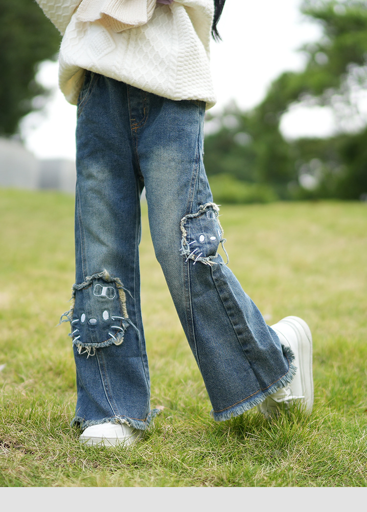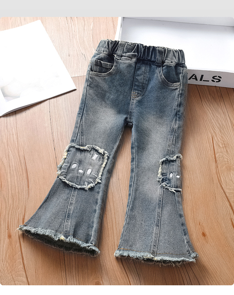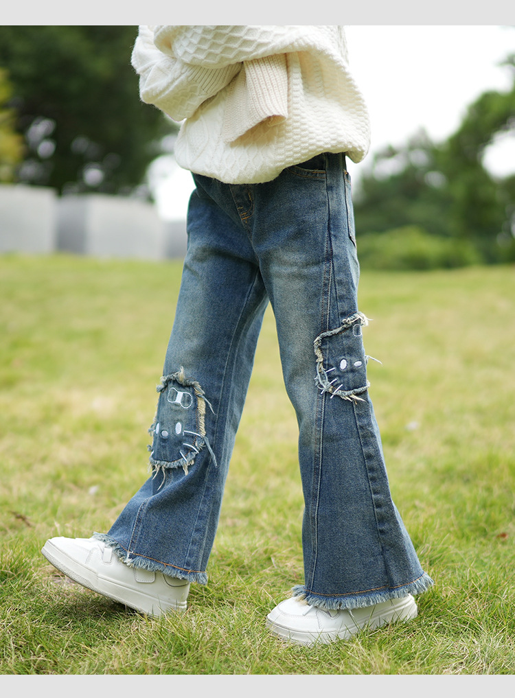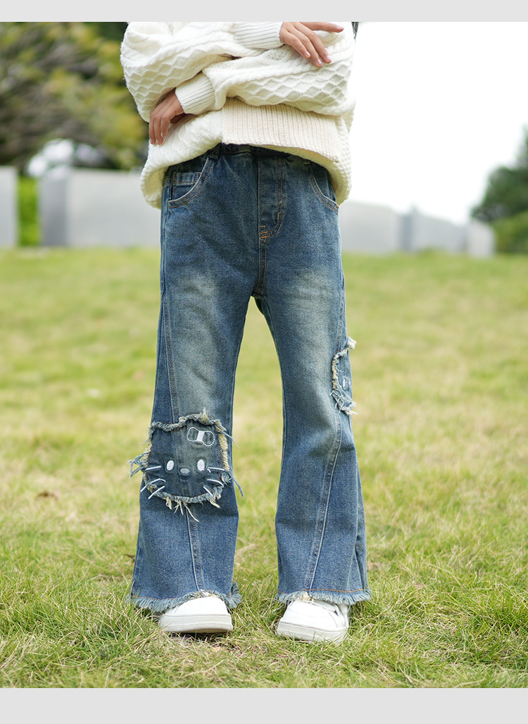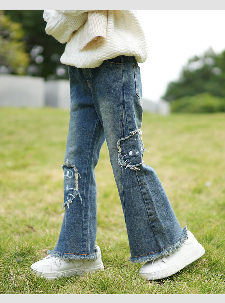 여아 바지 봄 가을 스타일 2026 신상 아동 가을 청바지 여아 패셔너블한 가을 캐주얼 나팔바지