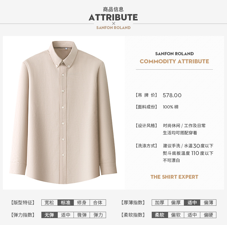 [포시즌 옥스퍼드 스피닝] 남성면 캐주얼 셔츠 봄 뉴 솔리드 컬러 옥스포드 스피닝 롱 슬리브 셔츠스토어 가기