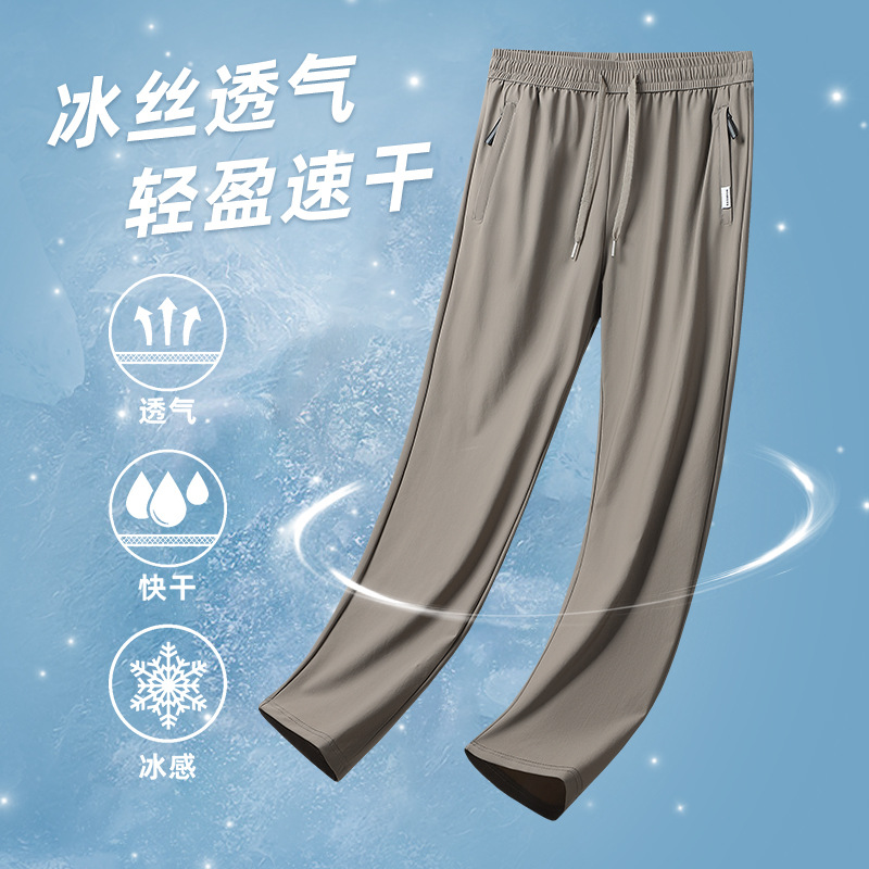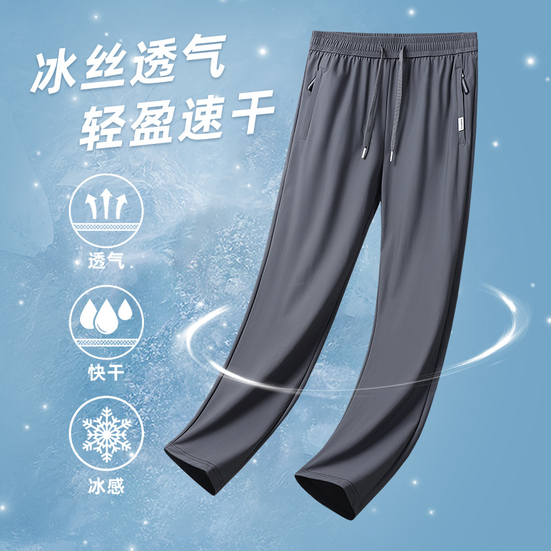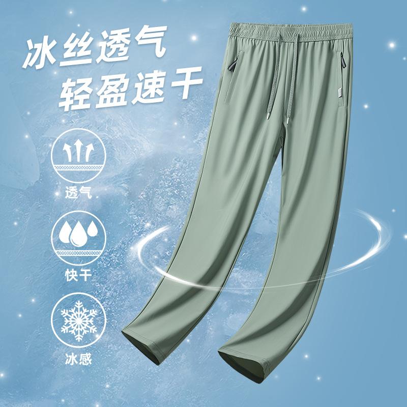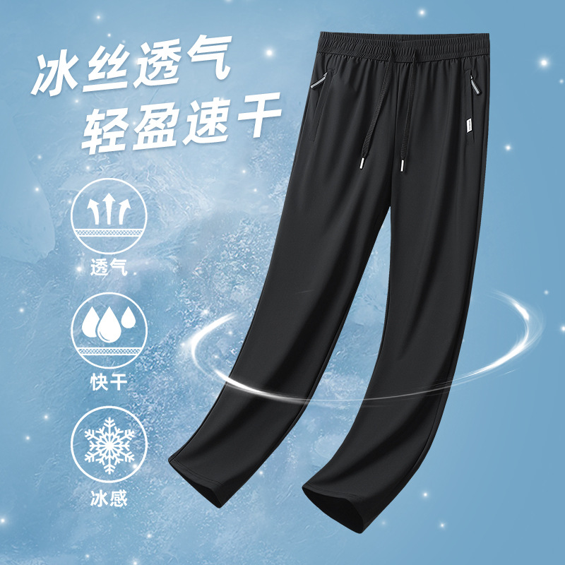 Upf50 바지 남자 여름 얇은 아이스 실크 바지 느슨한 스트레이트 유행 브랜드 빠른 건조 에어컨 바지 스포츠 레저스토어 가기