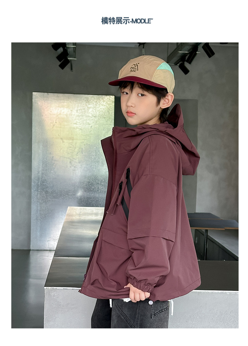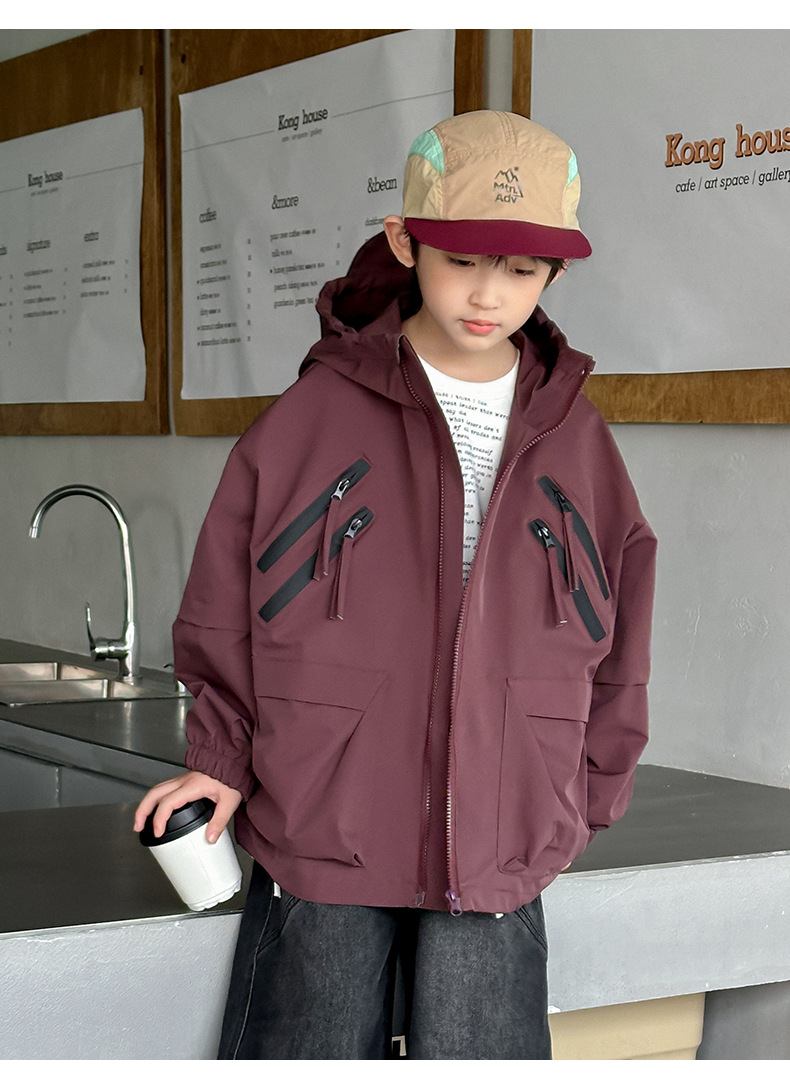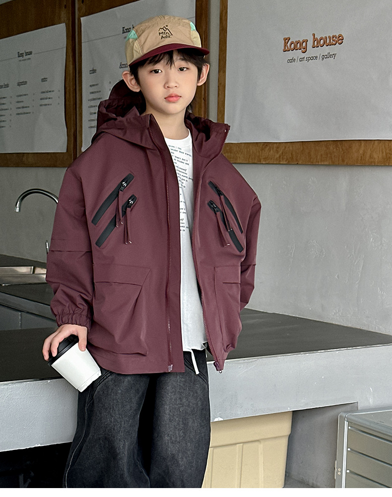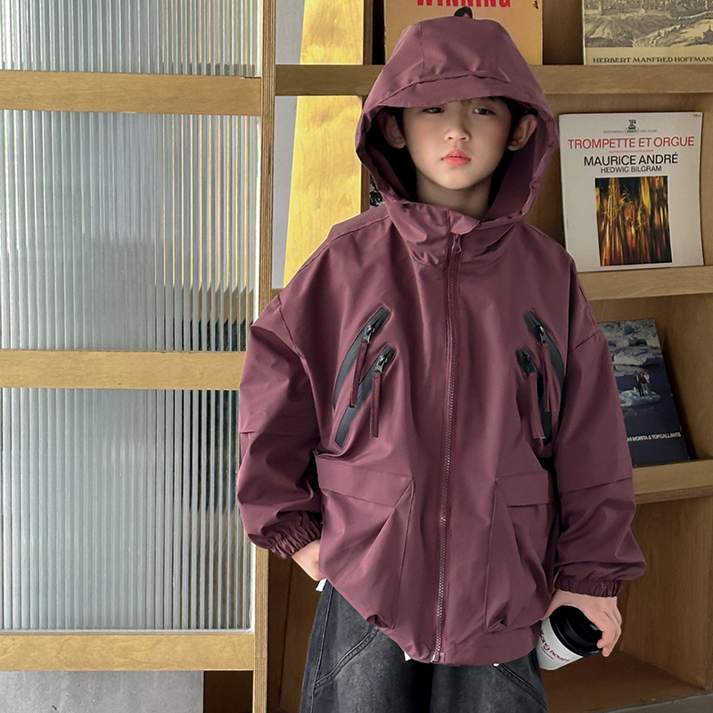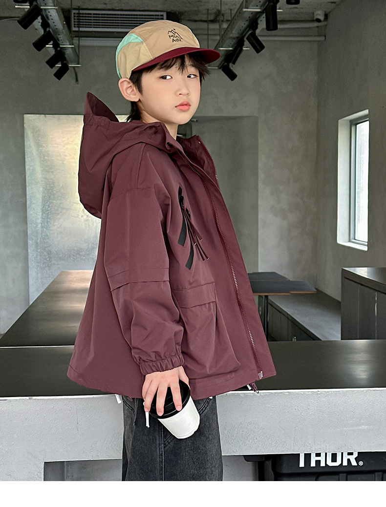 소년 코트 봄과 가을 2025 새로운 어린이 봄 옷 후드 러쉬 옷 큰 소년의 봄 툴링 탑 트렌디스토어 가기