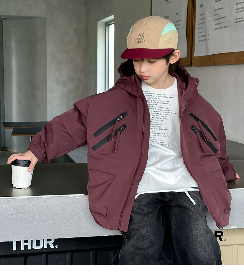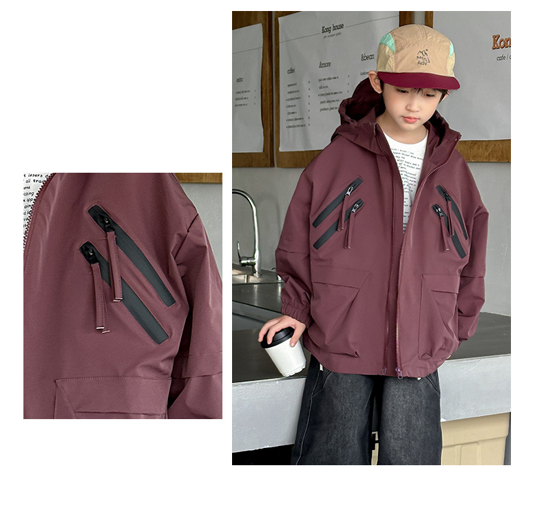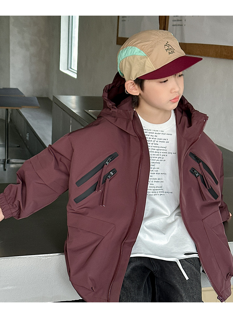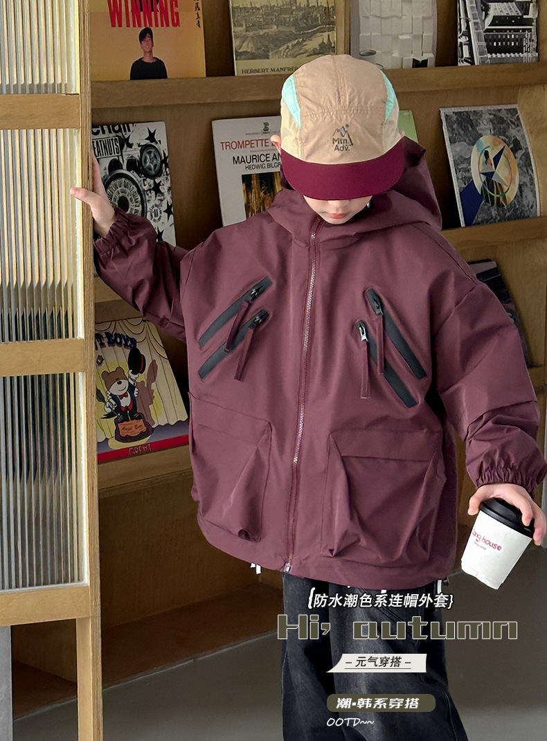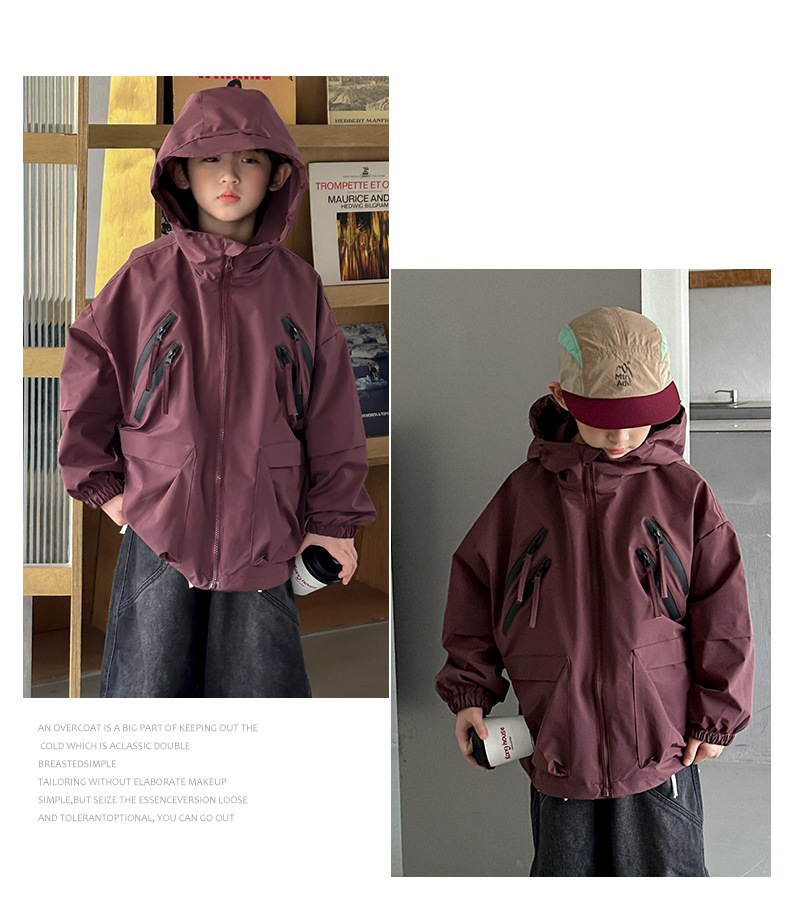 소년 코트 봄과 가을 2025 새로운 어린이 봄 옷 후드 러쉬 옷 큰 소년의 봄 툴링 탑 트렌디스토어 가기