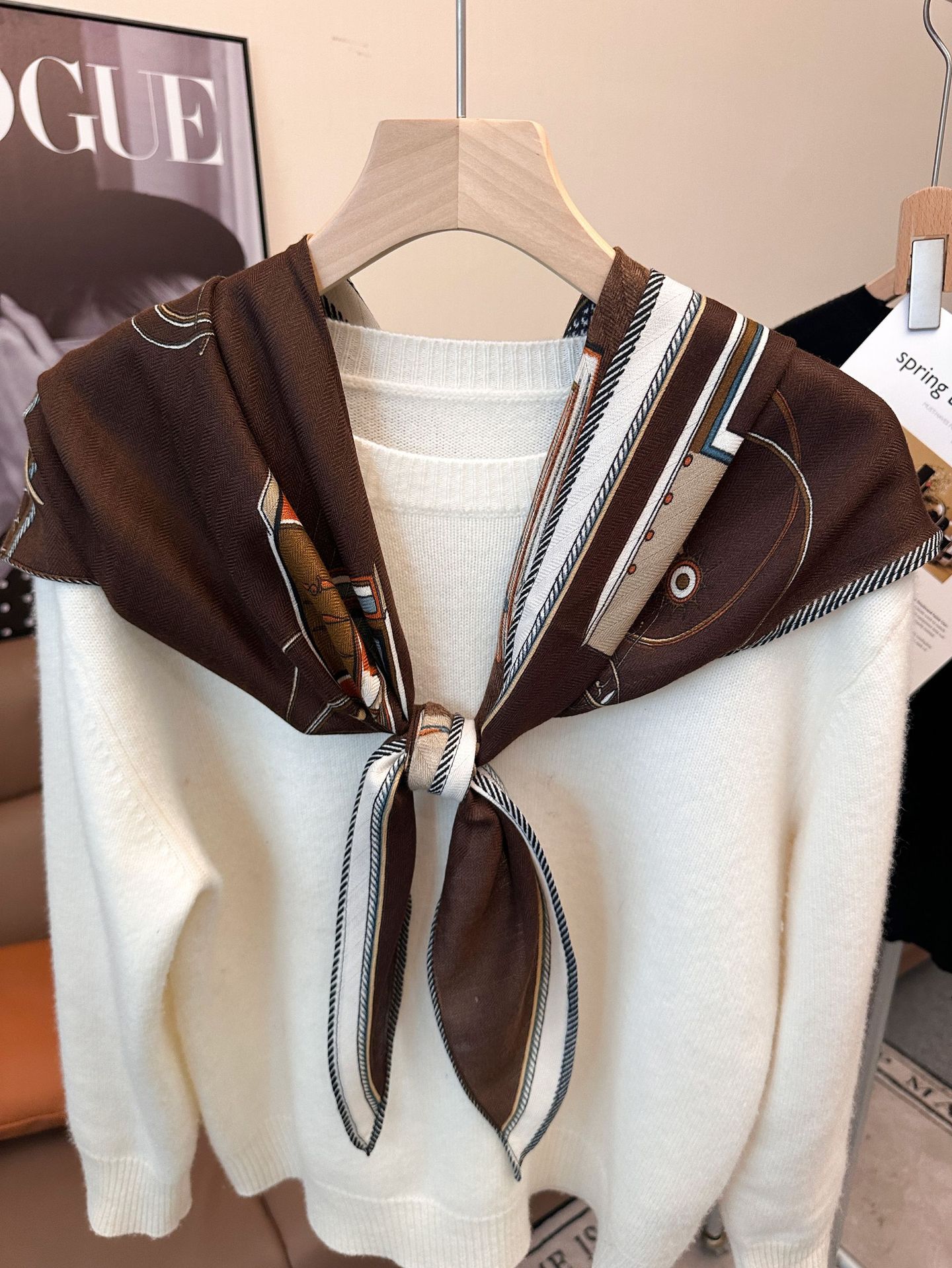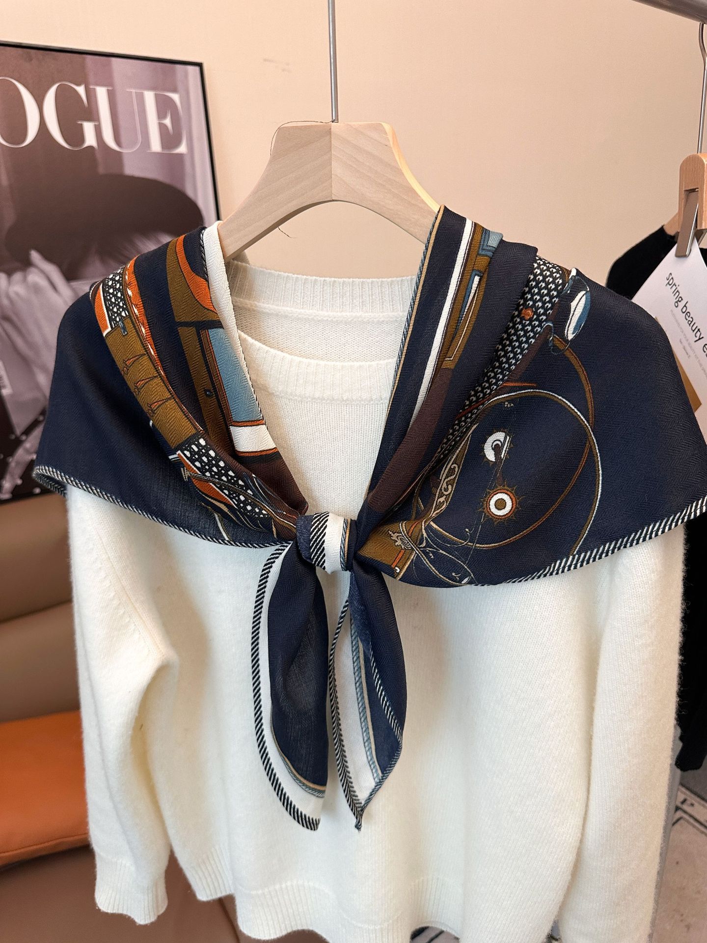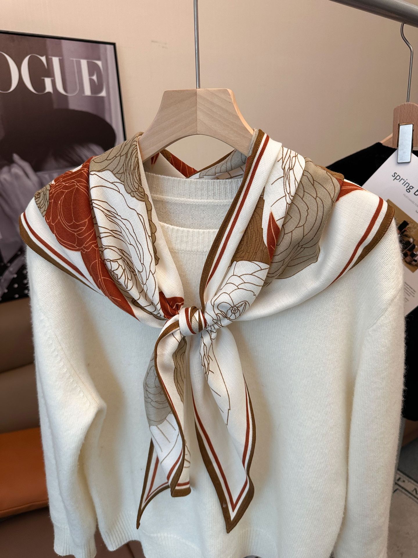 봄과 여름 삼각형 스카프 비 페이딩 프랑스 스카프 그물 인기있는 외국 스타일 어깨 패드 가을 봄과 가을 스카프 한국어 버전스토어 가기