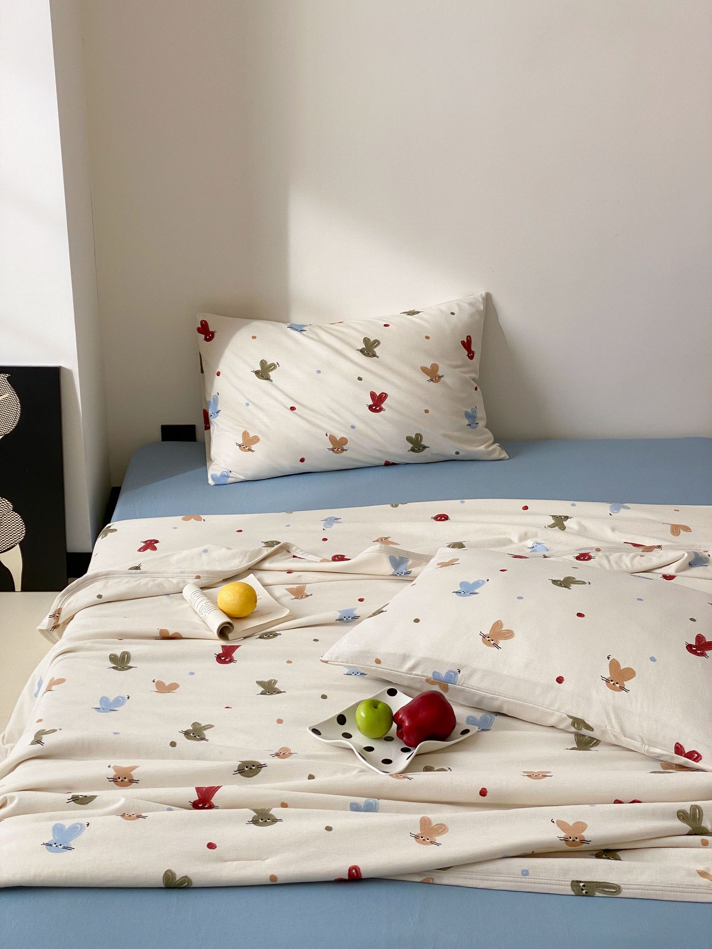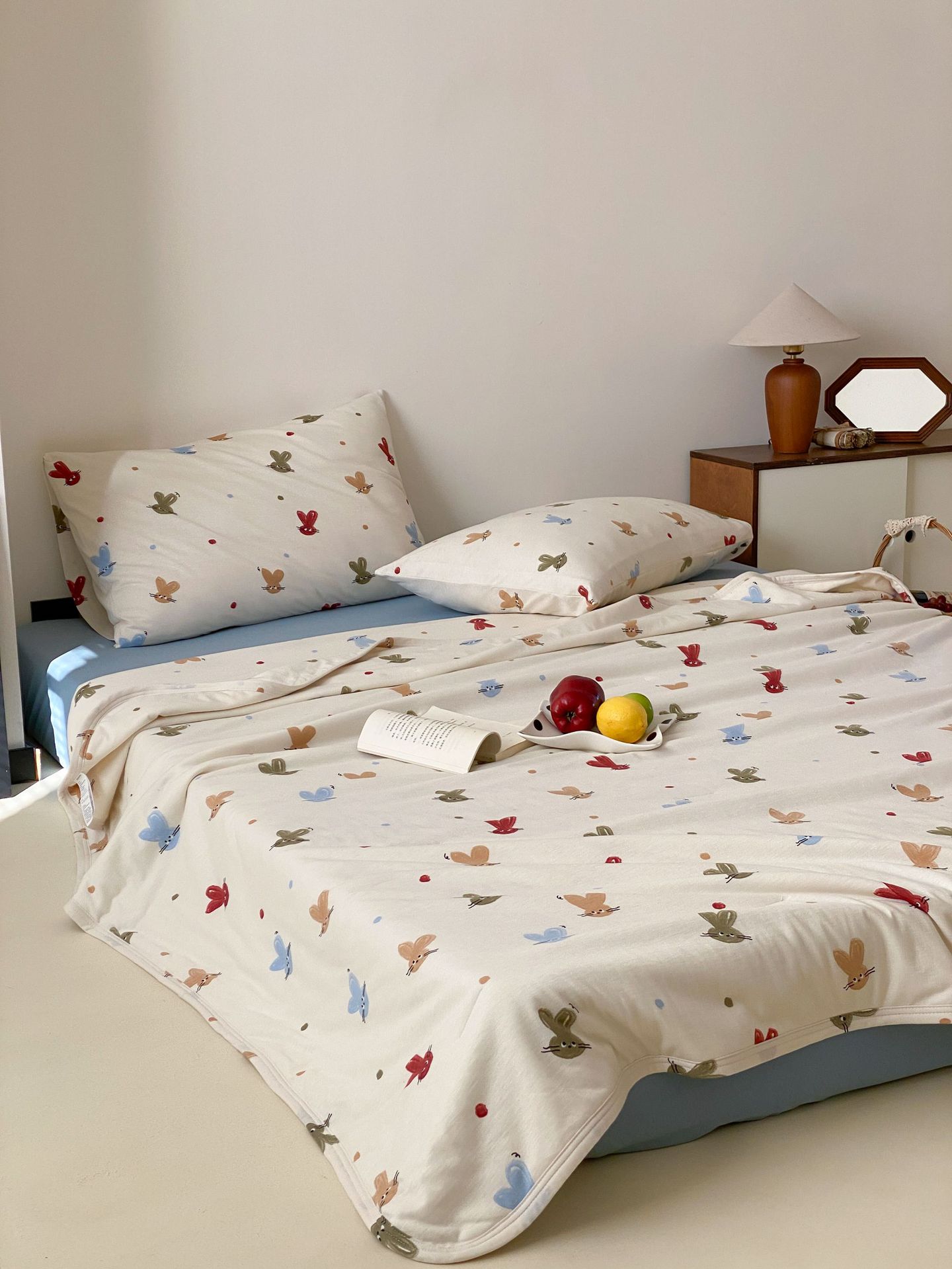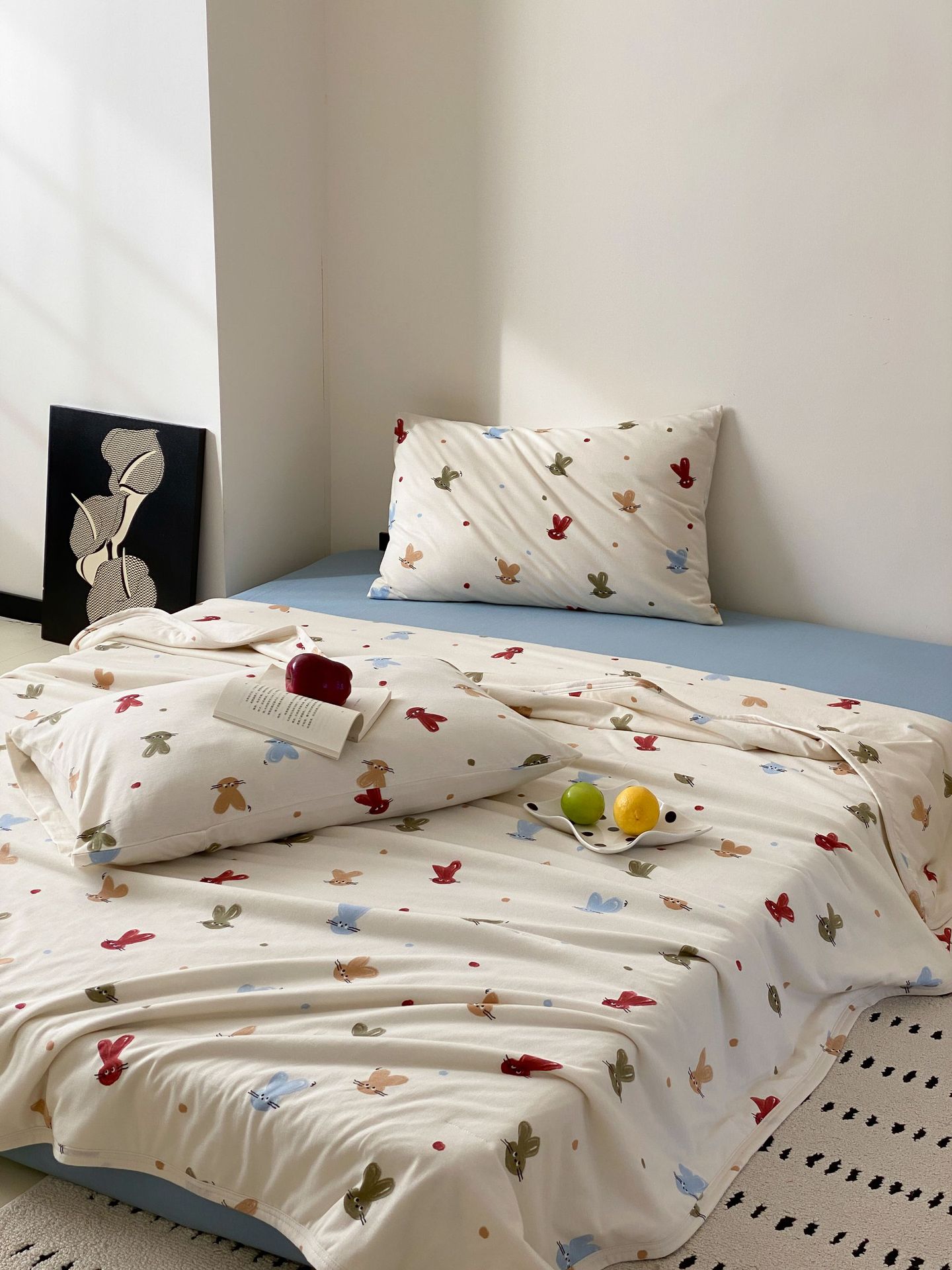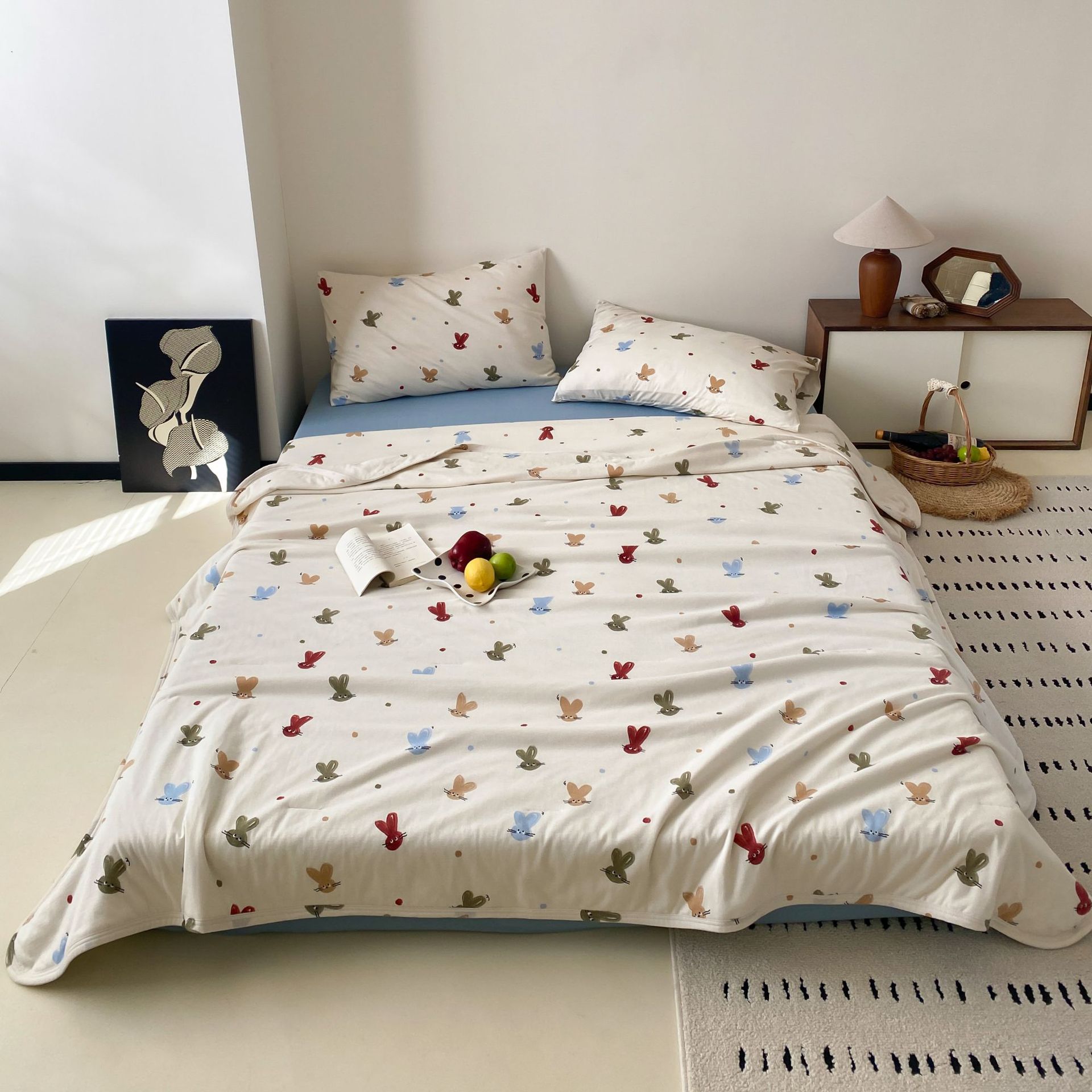 2025 봄과 여름 새로운 슈퍼 소프트 클래스 A 어린이 코튼 니트 여름 이불 피부 친화적 통기성 침구 1.2 m 침대