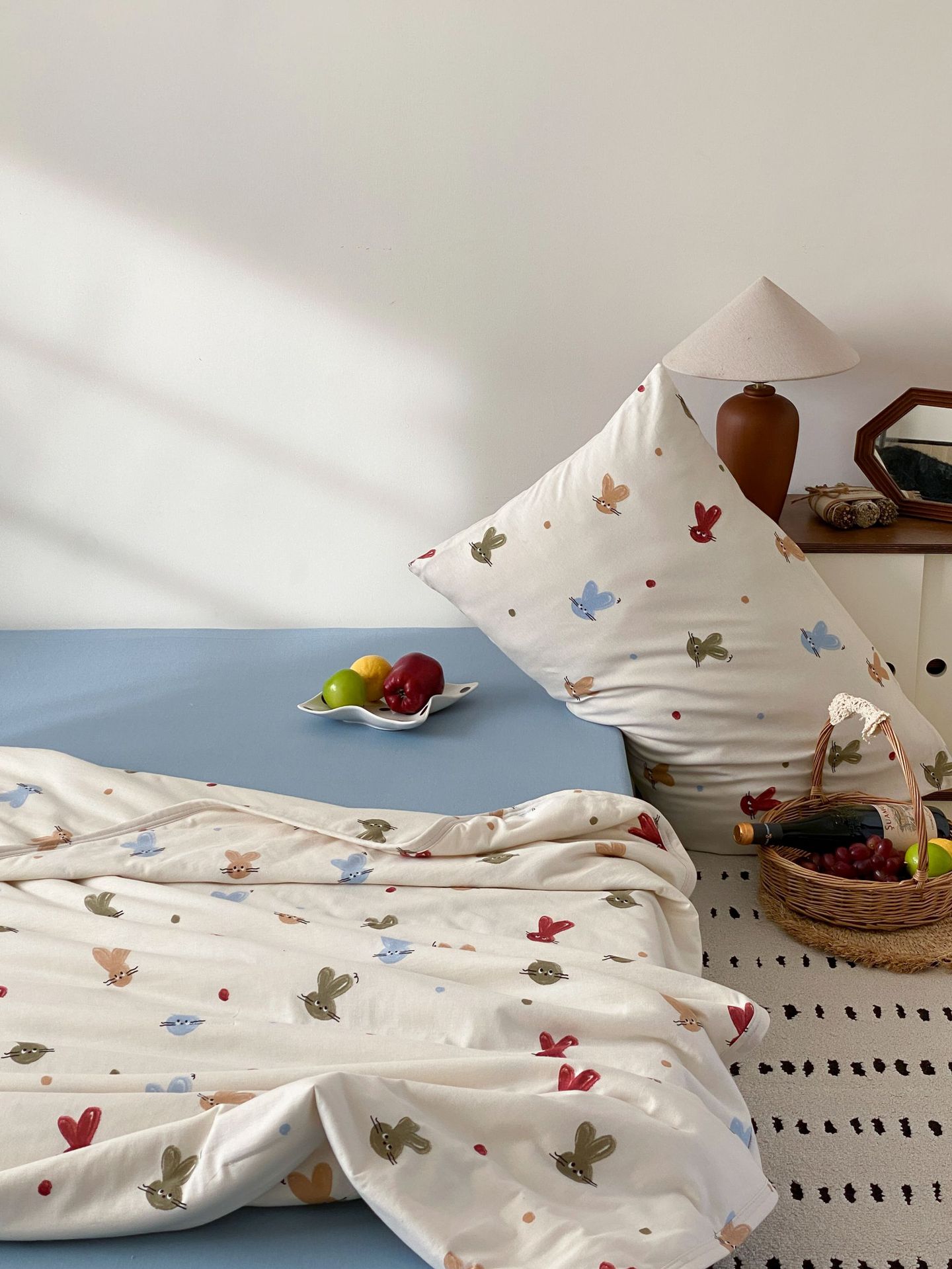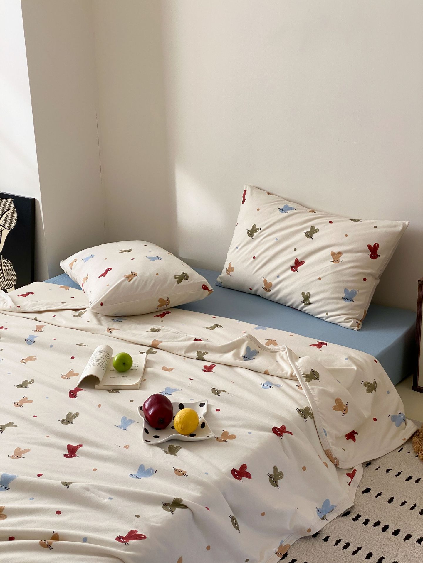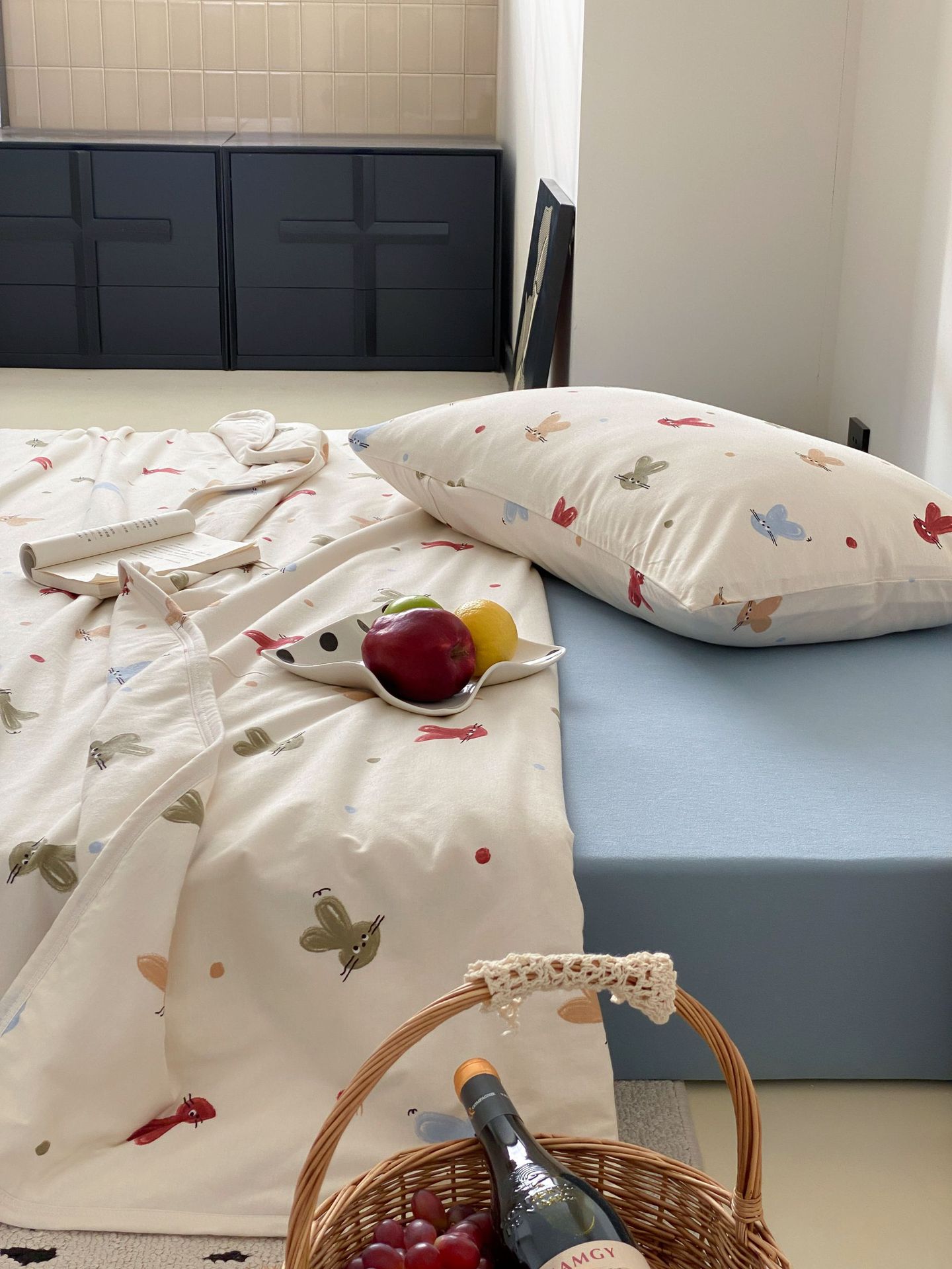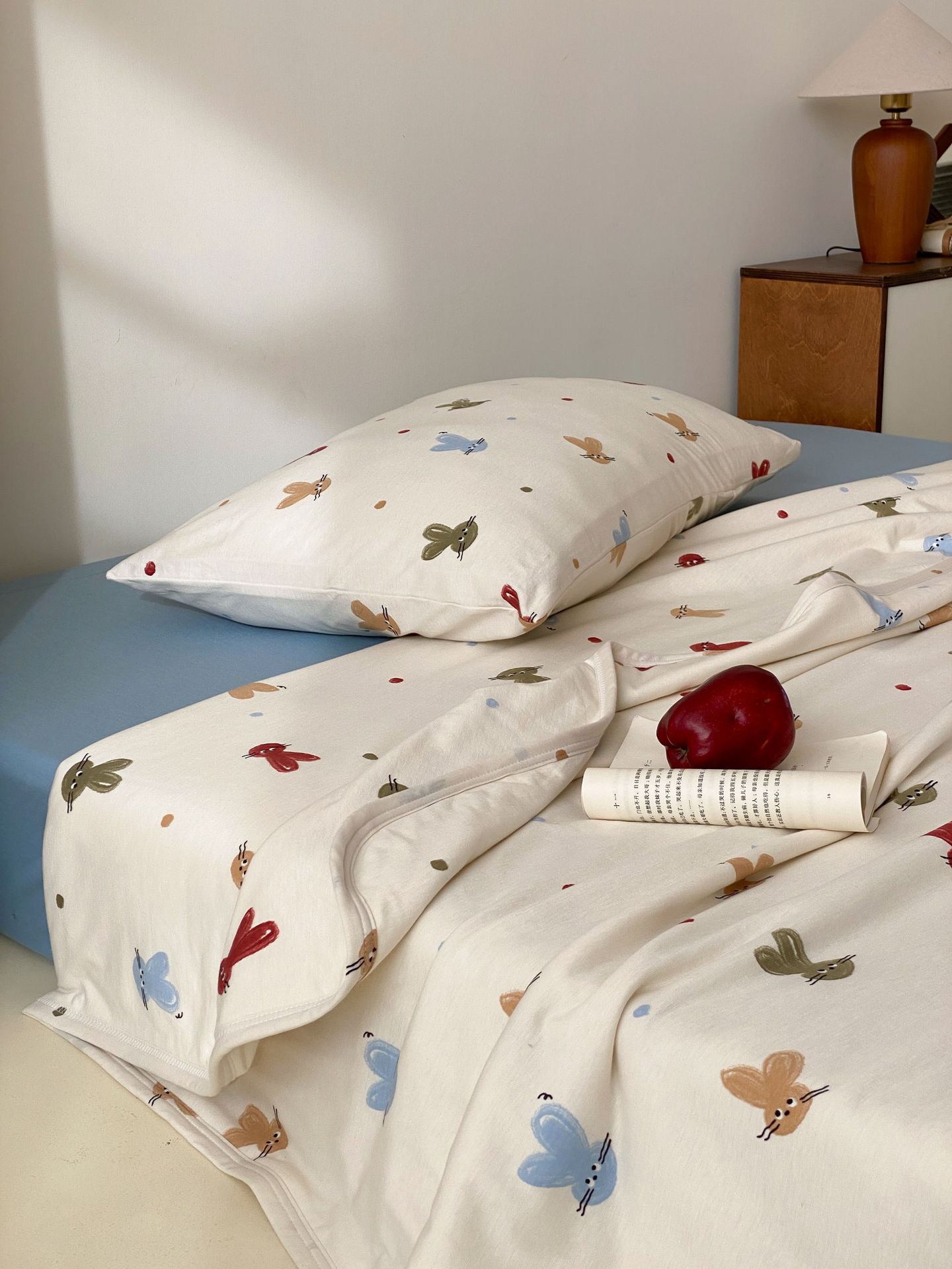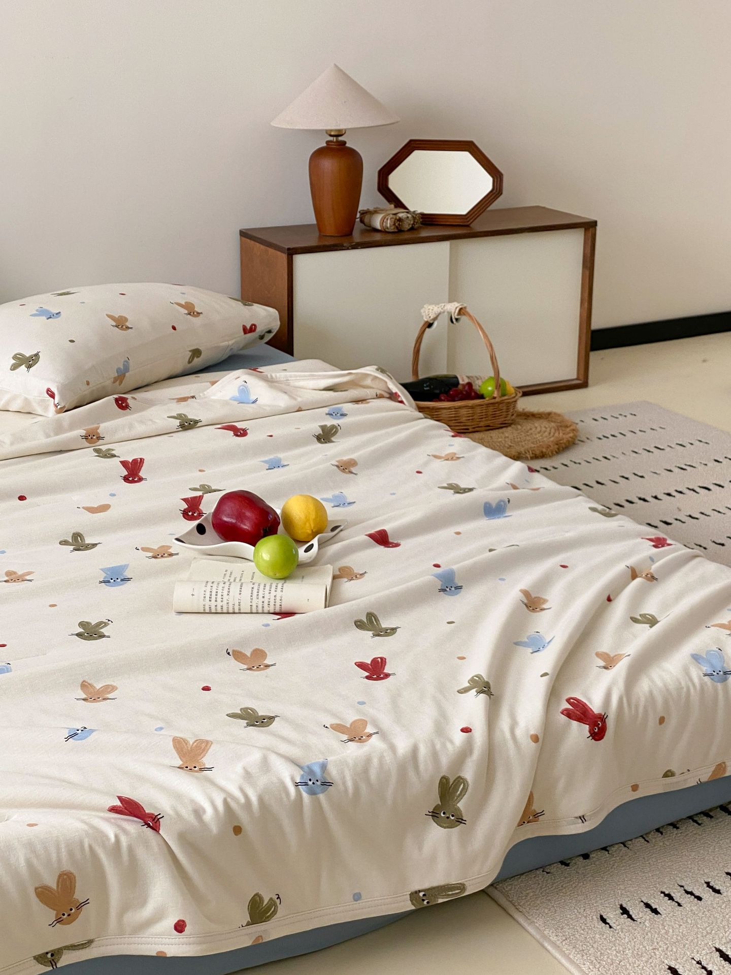 2025 봄과 여름 새로운 슈퍼 소프트 클래스 A 어린이 코튼 니트 여름 이불 피부 친화적 통기성 침구 1.2 m 침대