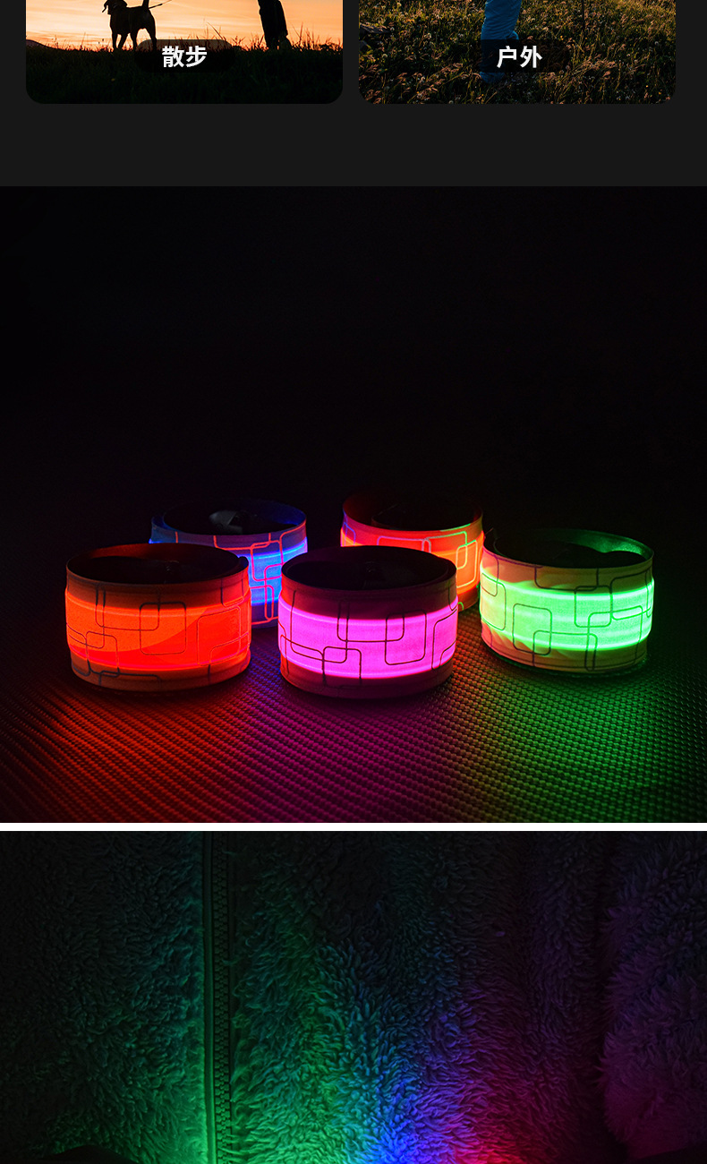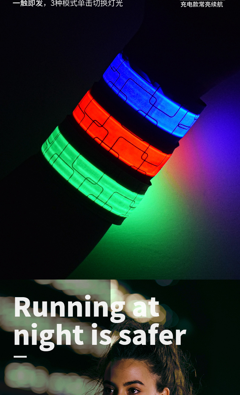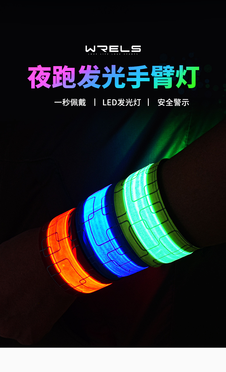 WRELS Luminous Pop Circle 야외 야간 실행 LED 안전 경고등 충전식 발광 팔찌 승마 벨트