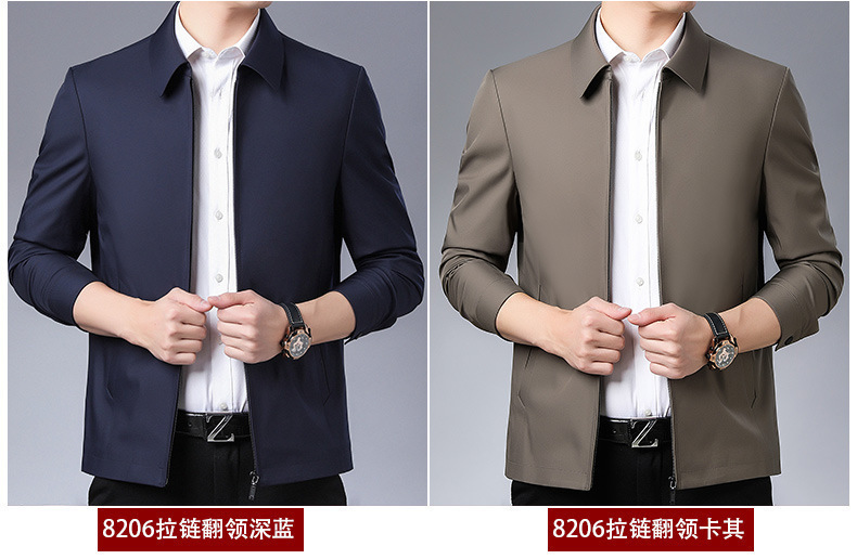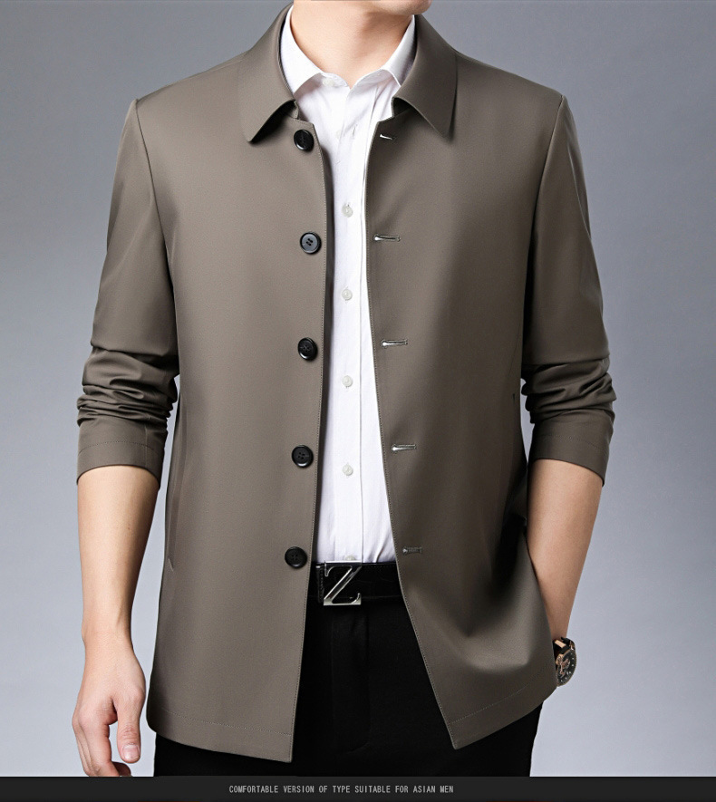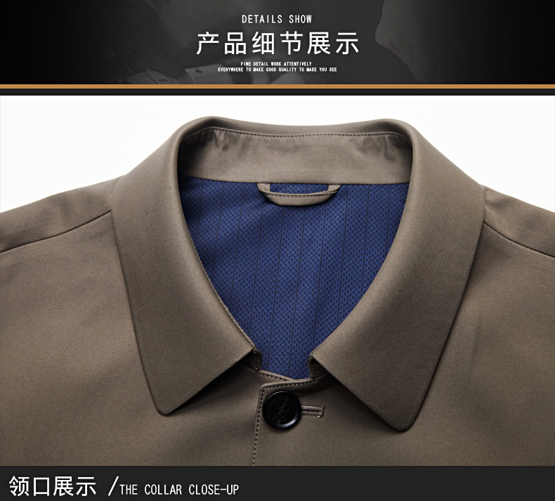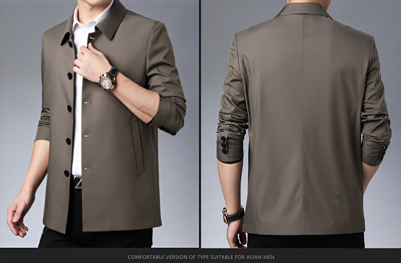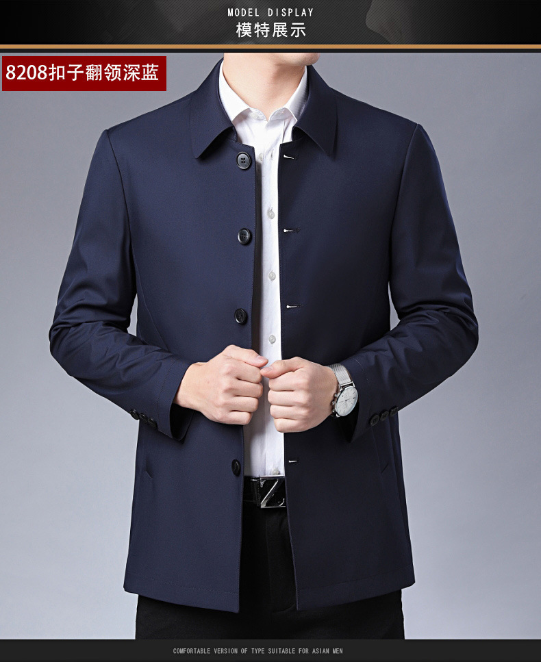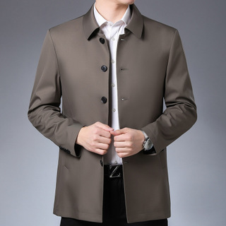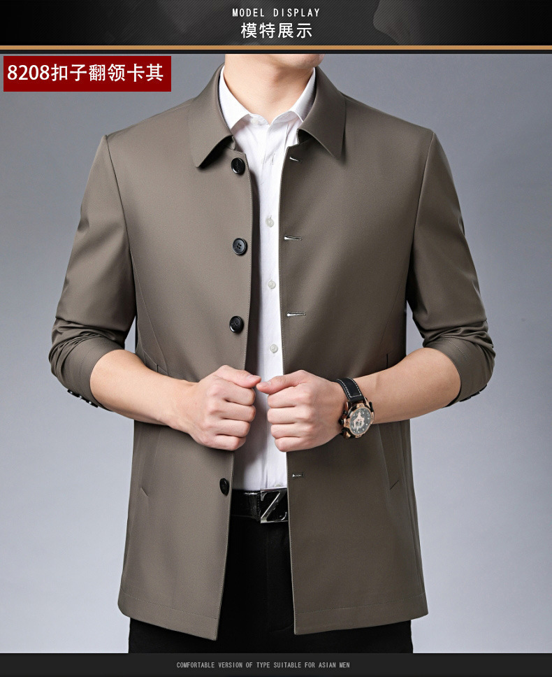 一件代发新款男士春秋商务外套中年夹克爸爸装中长扣风衣气质正装