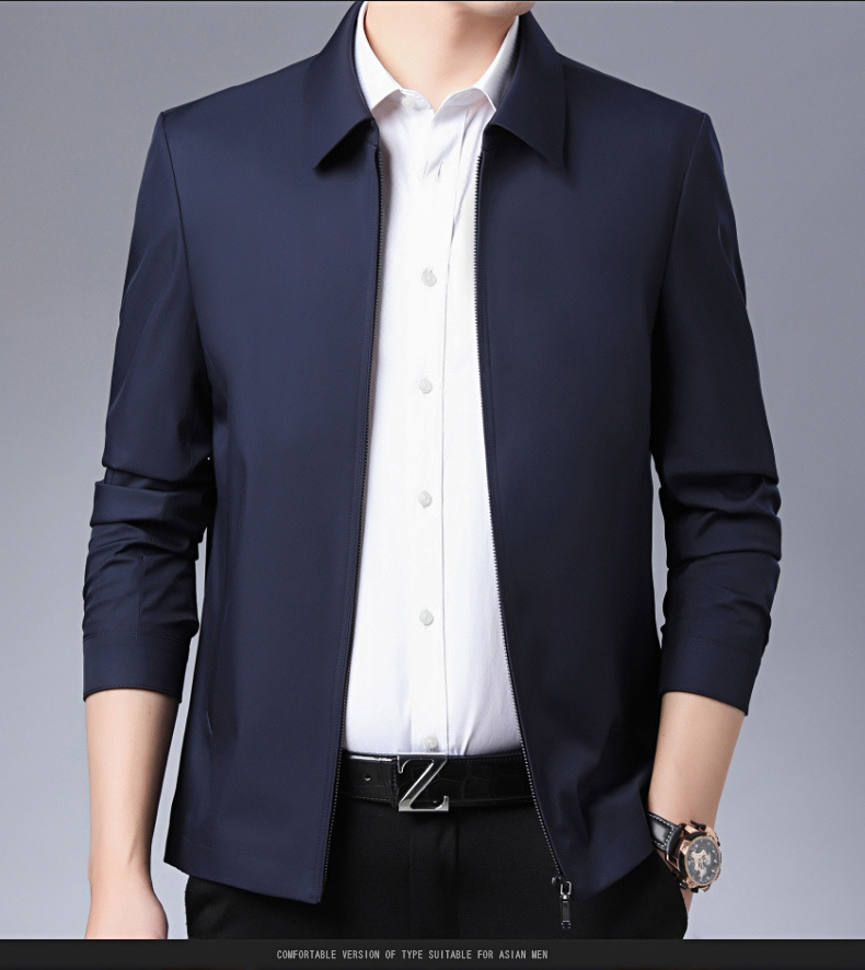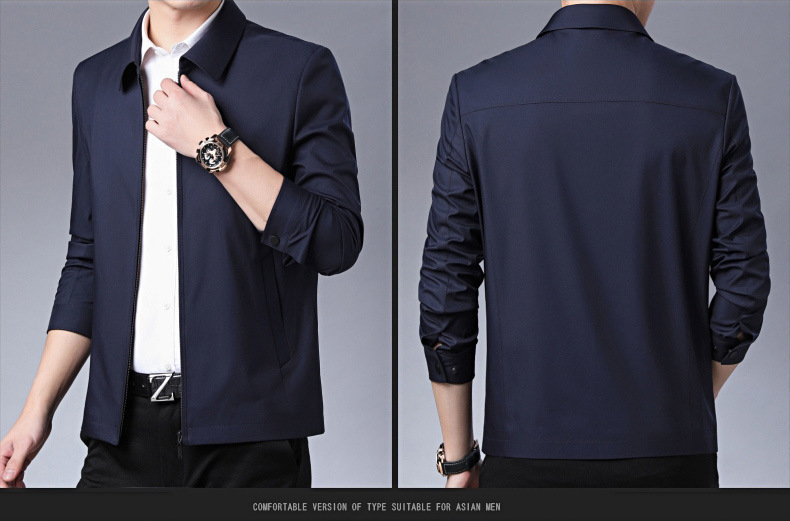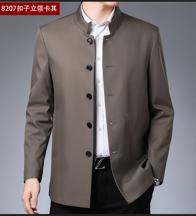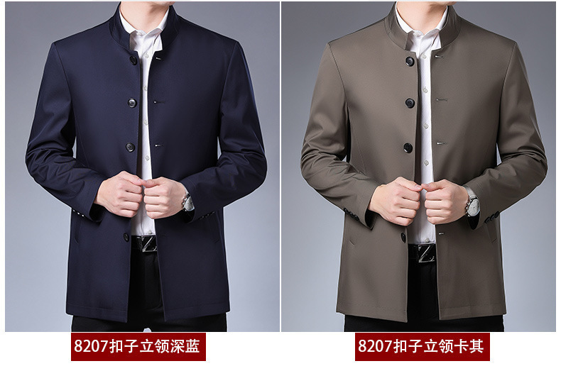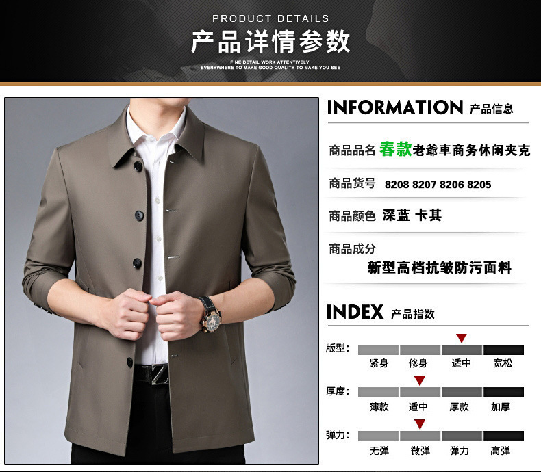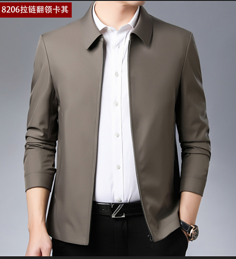 一件代发新款男士春秋商务外套中年夹克爸爸装中长扣风衣气质正装