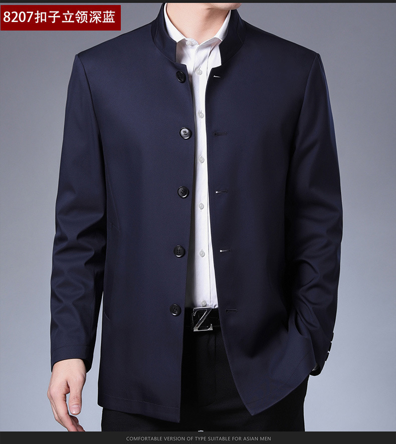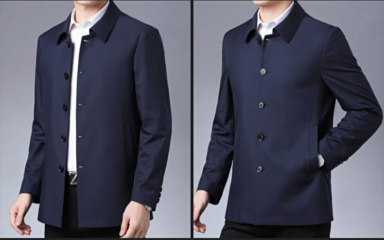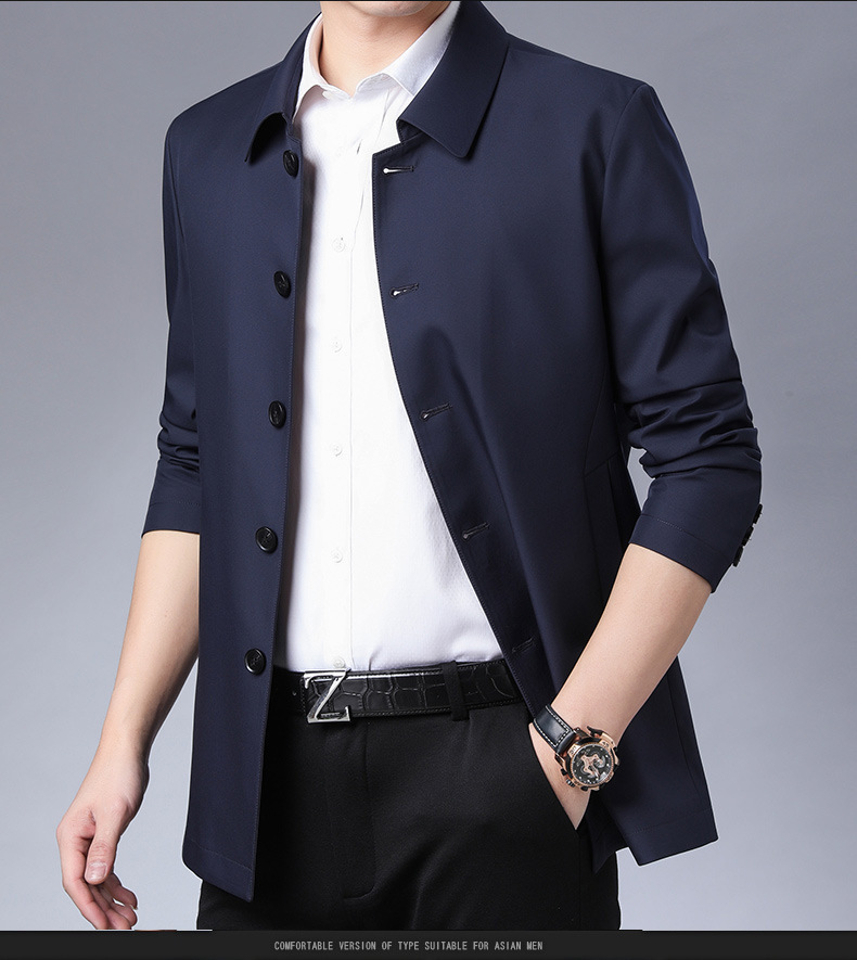 새로운 남성 봄과 가을 비즈니스 코트 중년 재킷 아빠 긴 버클 윈드 브레이커 기질 공식 세트스토어 가기
