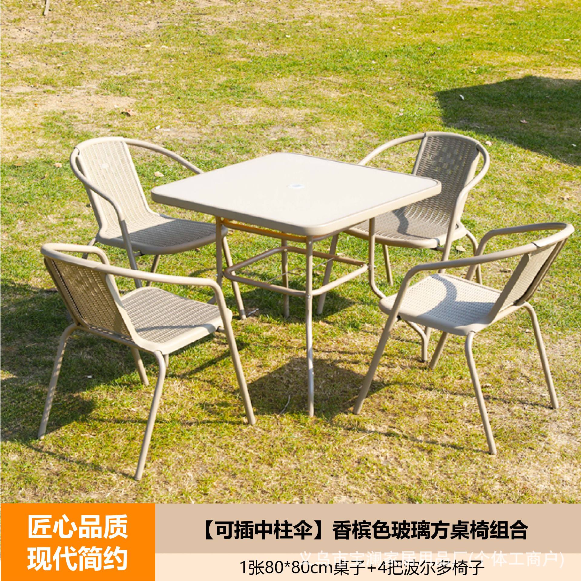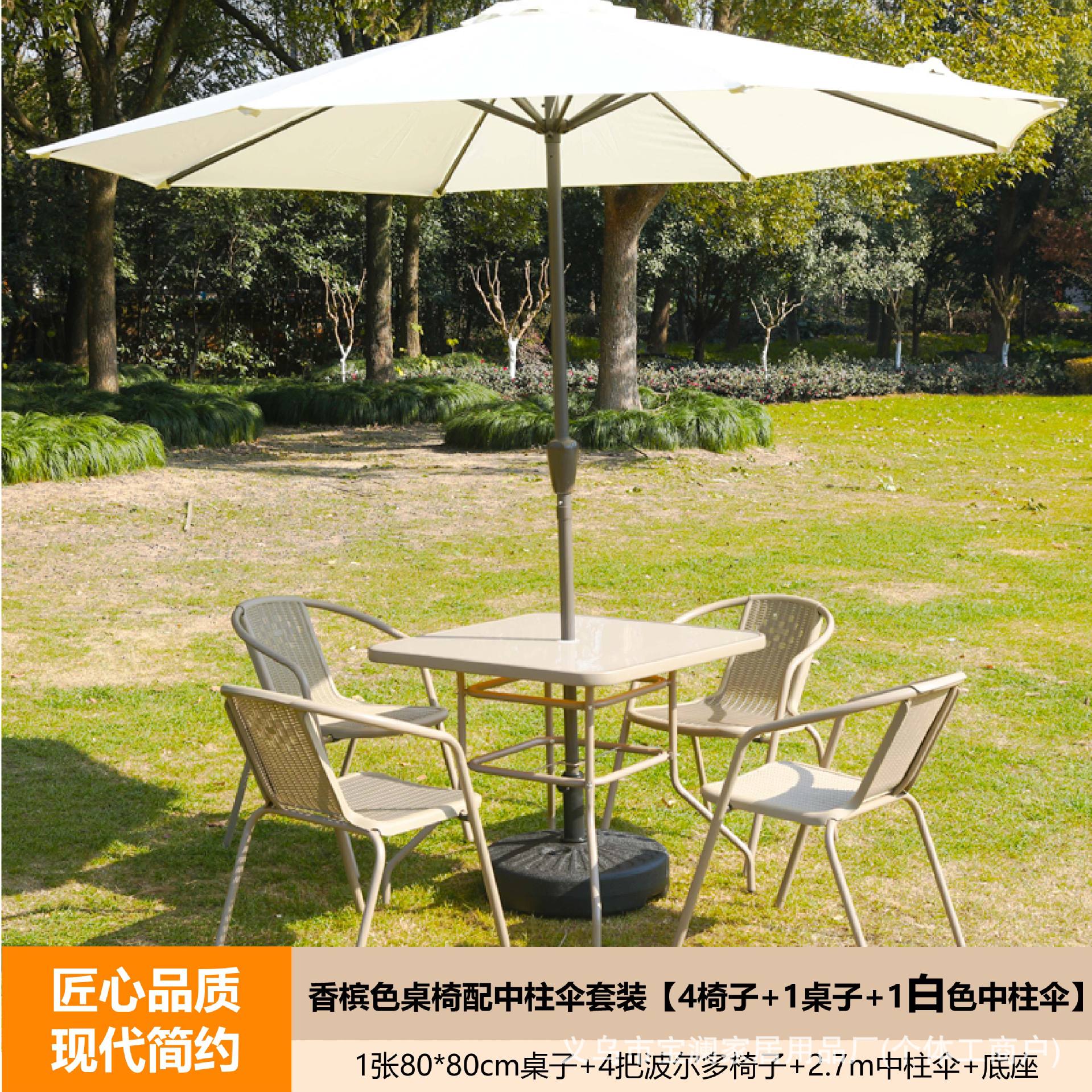 야외 테이블과 의자 중간 기둥 우산 조합 코트야드 정원 테이블 및 의자 세트 가정용 야외 레저 식탁 및 의자 커버스토어 가기