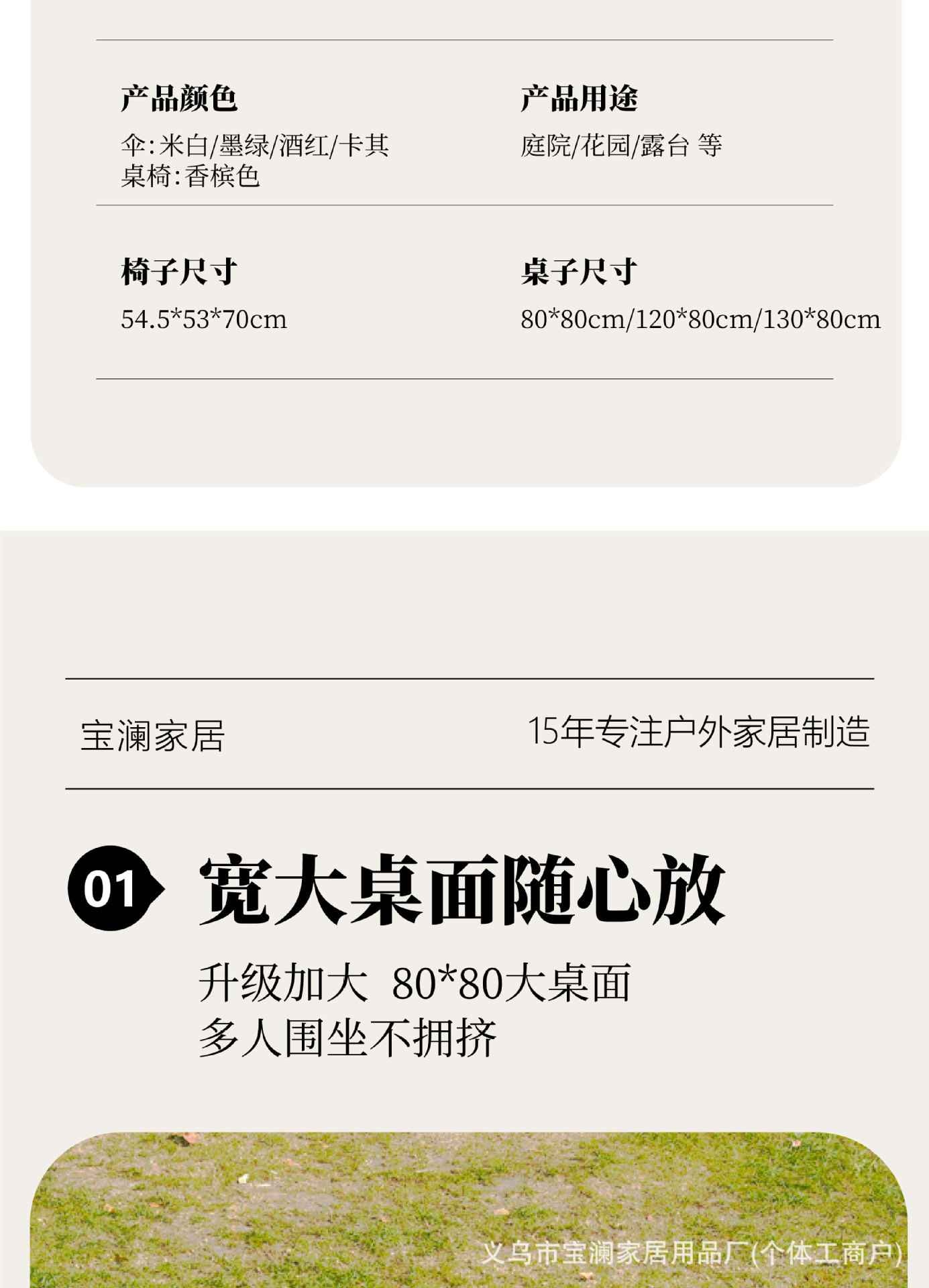 • 카키색 중기우산 + 보르도 테이블과 의자 조합