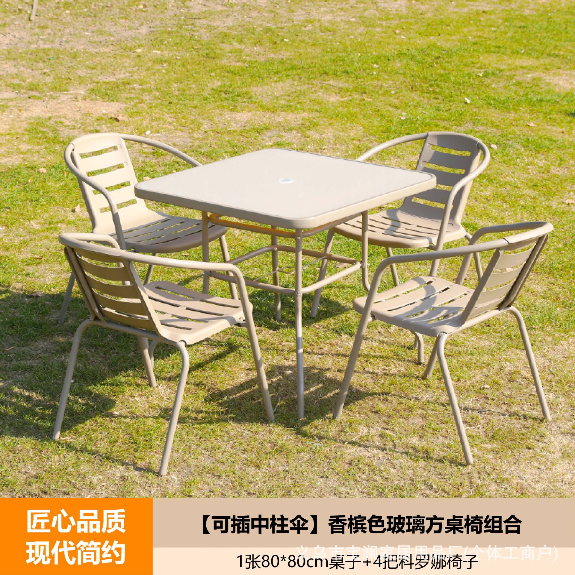 야외 테이블과 의자 중간 기둥 우산 조합 코트야드 정원 테이블 및 의자 세트 가정용 야외 레저 식탁 및 의자 커버